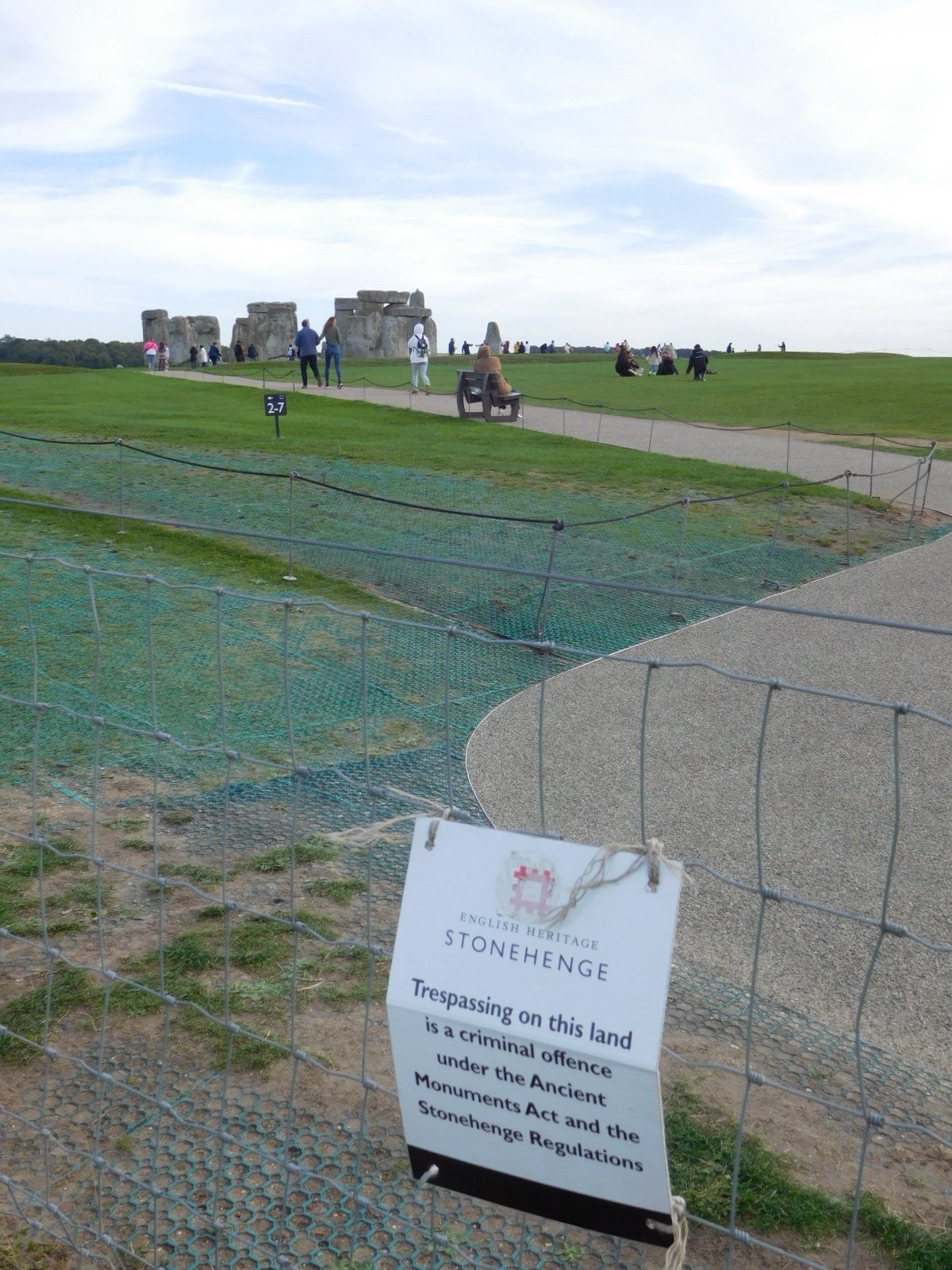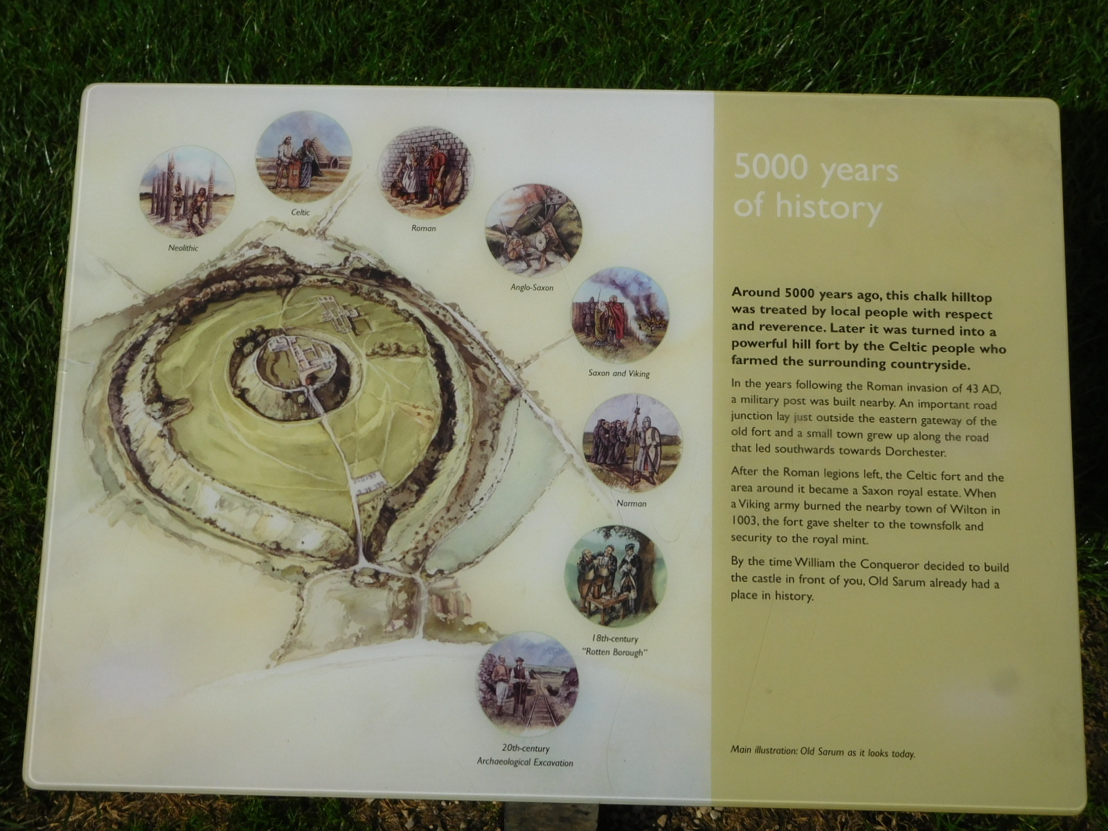 The four sites we had in mind began with Old Sarum. This is a hill that has had many uses in pre-history and history, most notably the original site of the Cathedral, and the site of a fort built by William I. Next up was Woodhenge, a place where there had been six concentric ovals of standing posts, and like Stonehenge aligning with the sun at equinox. Then nearby was the mysterious Cuckoo Stone, and finally Stonehenge itself, which we planned to "sneak" into.