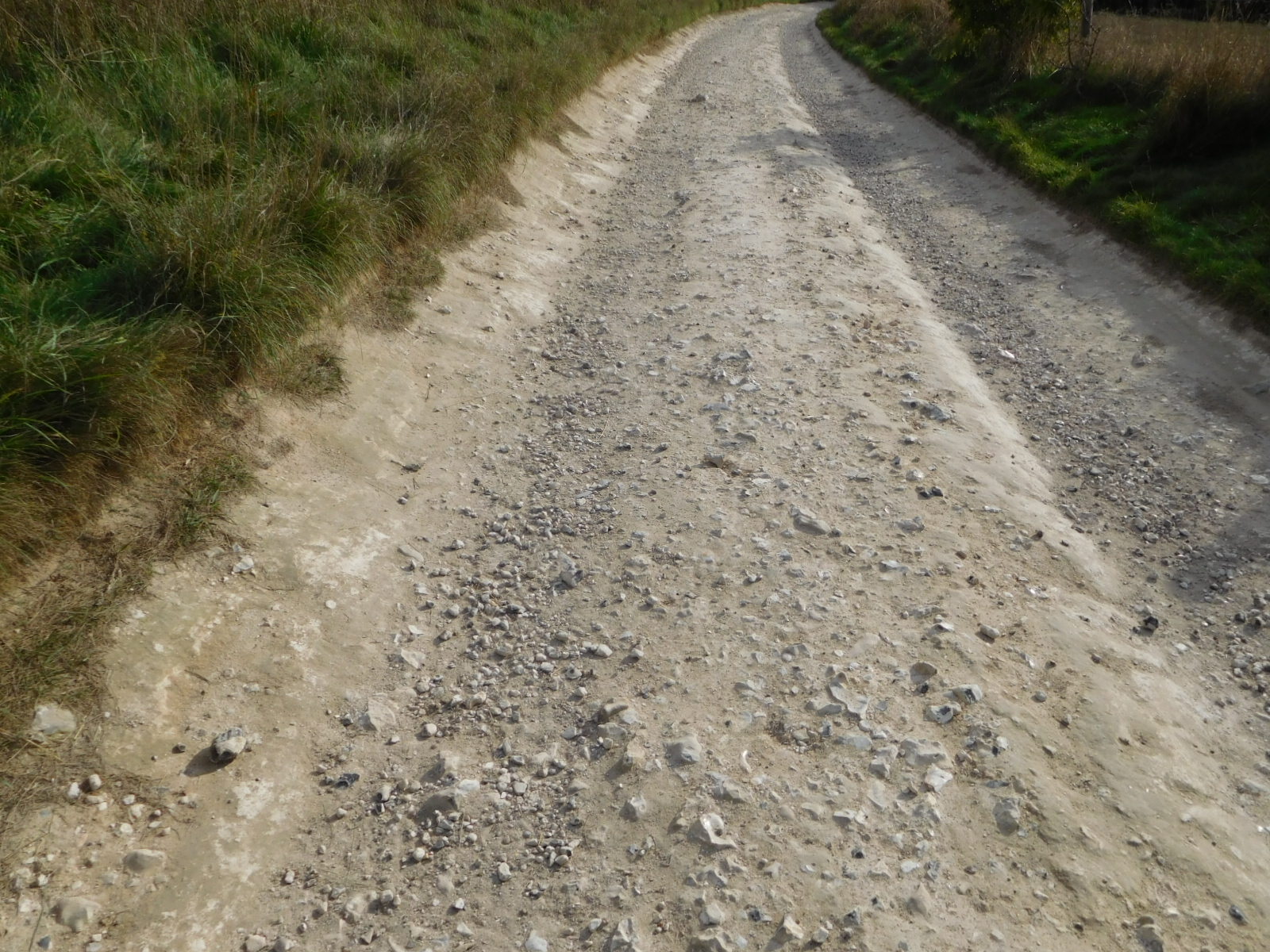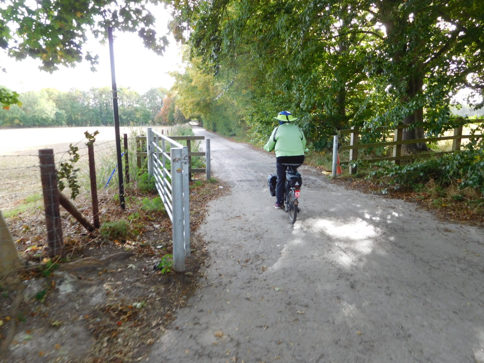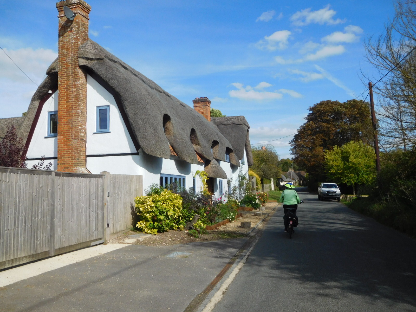 In an amazing feat of agility, Dodie exploited a gap and crossed A303, to a rideable if narrow path on the other side. I pushed along in the grass on my side until an island between the lanes in either direction gave me my chance. From there, we were home free, sailing gaily down the road to Salisbury, past all the great houses we had seen on the way up.