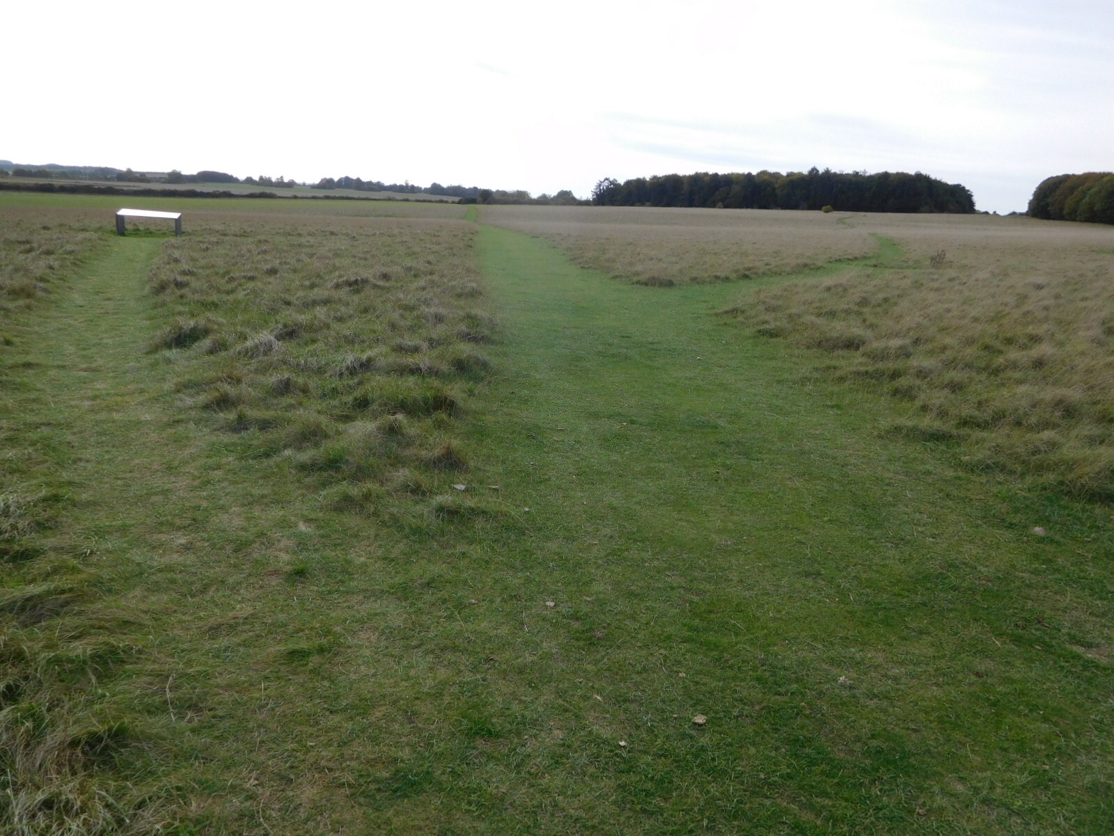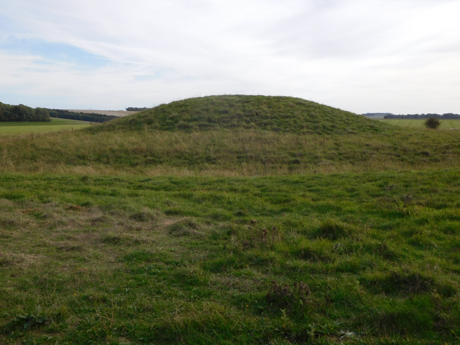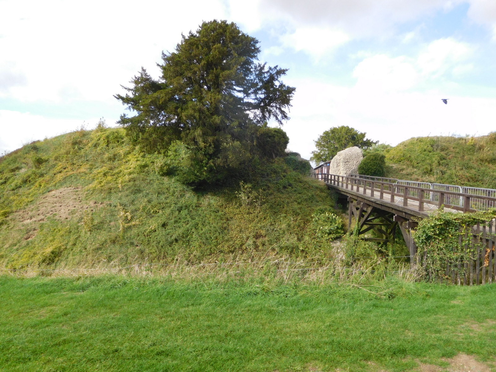 We cycled up, passing what you can see in the photo as the outer trench, and parked the bikes for the walk to the inner mound, which is protected by a very deep ditch (but not moat - water is scarce on this chalk soil).
