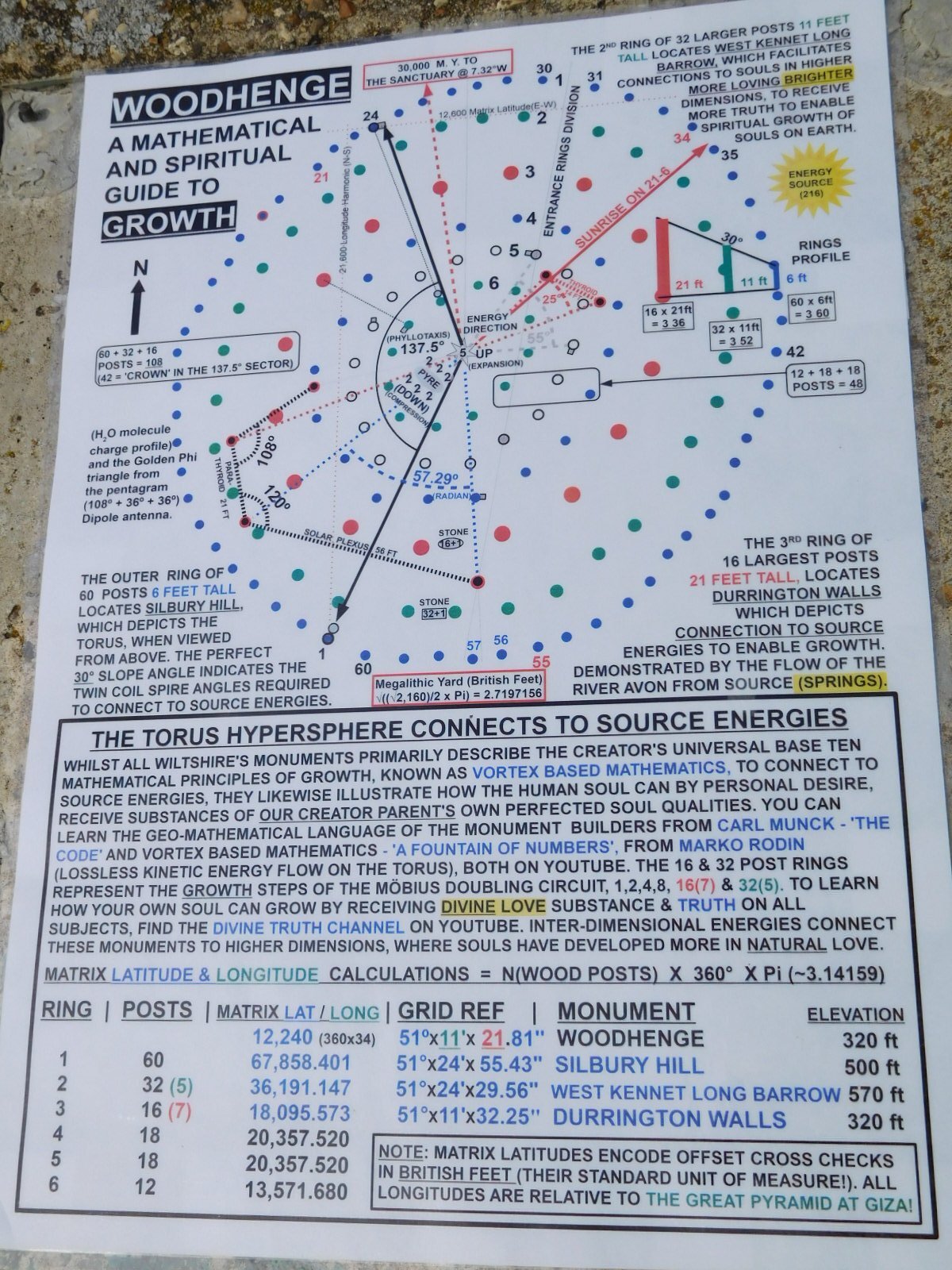 Here is the "say what?" sheet that was mounted in a prominent place at Woodhenge. I don't see anything that identifies the author, but maybe if someone wants to do some internet searching, it will become clear.