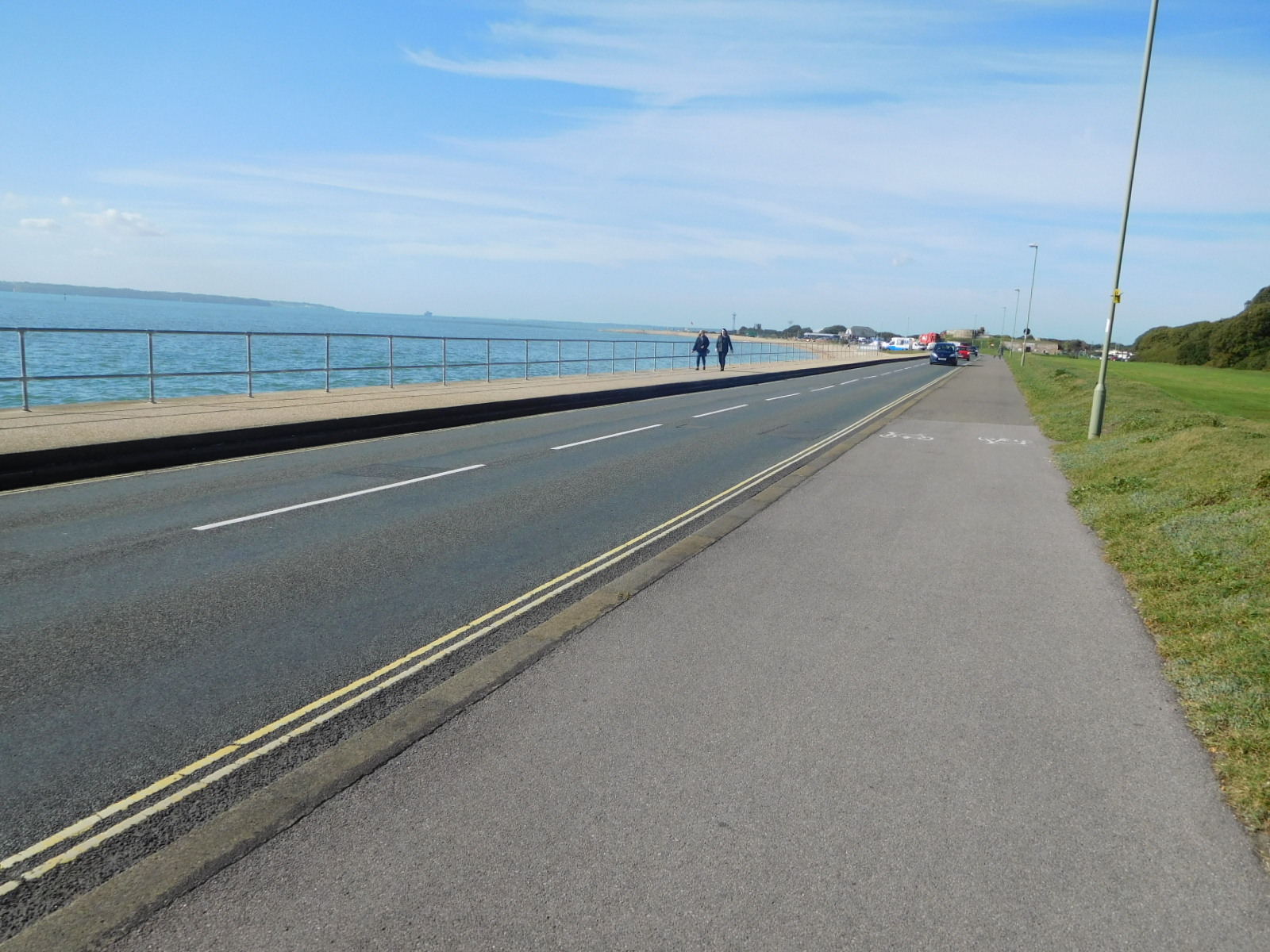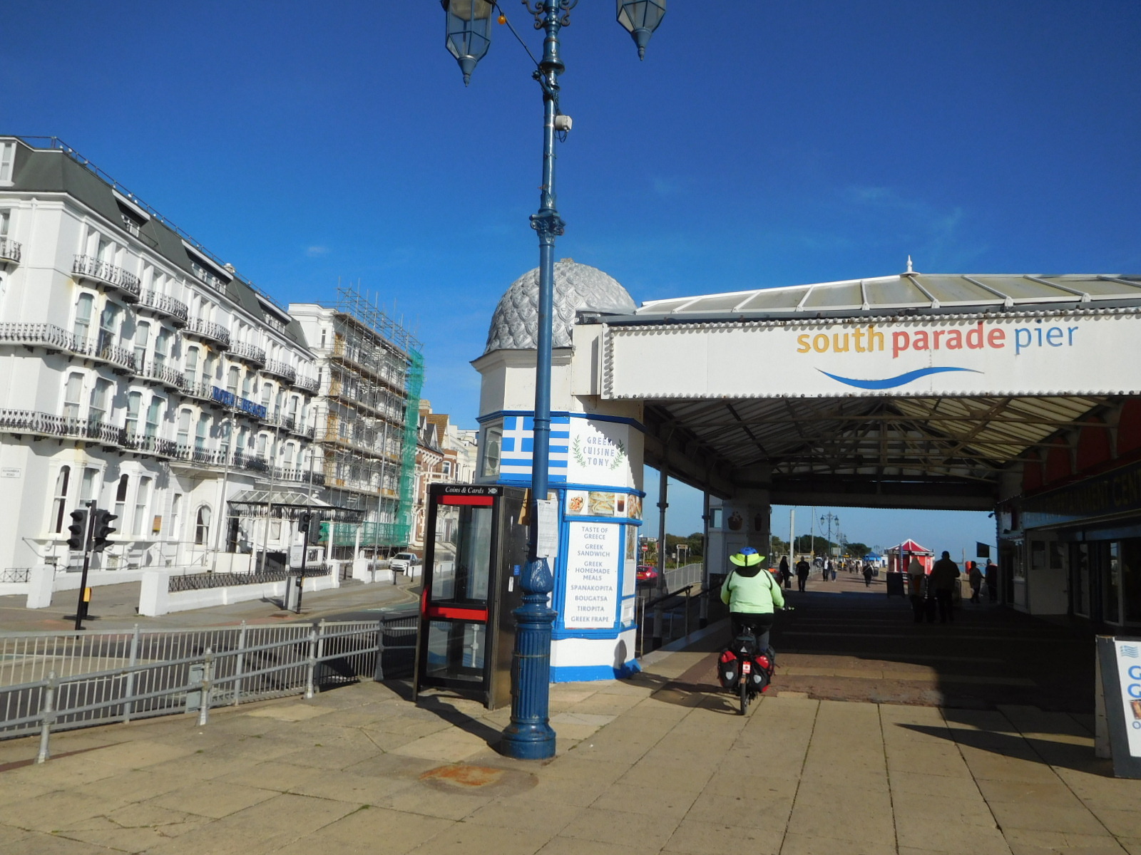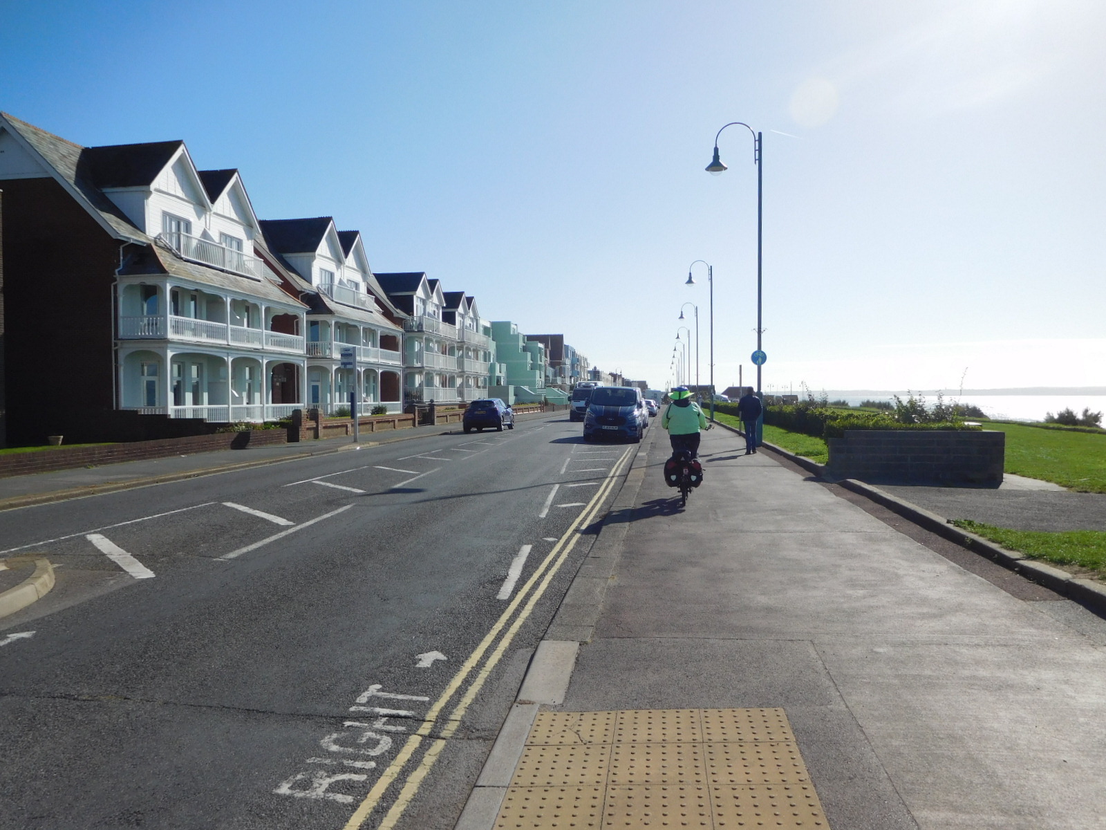 Now we headed along the south Esplanade of Portsmouth, which featured an amusement arcade pier, and importantly to us, a bike lane.