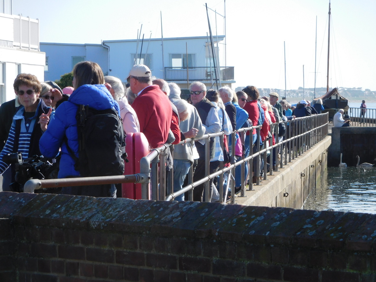 Before reaching the next ferry, which would be into Portsmouth from Gosport, we came across a little nature sanctuary, the Titchfield Haven. We have found the English are fanatical birdwatchers, so a place like this is bound to be popular. But we were surprised to find a large crowd gathered. We found that the local council was proposing to close the sanctuary visitor centre down, and this had brought the normally placid population of retirees out in force to protest.