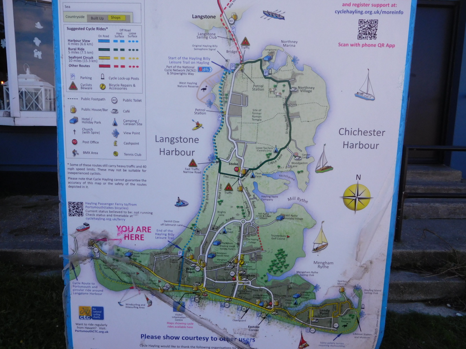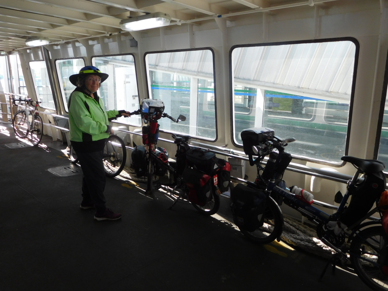 Our final ferry jumped us over to Hayling Island. This has only a few roads, plus a rail trail up the west side. Although the trail was gravel, it still allowed us cover distance quickly. This was again important as the day was getting on. We had booked no hotel, waiting to see how far we would get today. We thought about pushing on to Chichester, but when we reached Emsworth, we thought oh well, let's go for it. We jumped in to the Crown Pub/Hotel for 75 pounds. For one night, it's quite fine. Our bikes also got a spot in the dining room, which was not expected to be busy tonight. In fact there was no one, except us. We joined the bikes and it turned out to be just us and them in there for dinner!