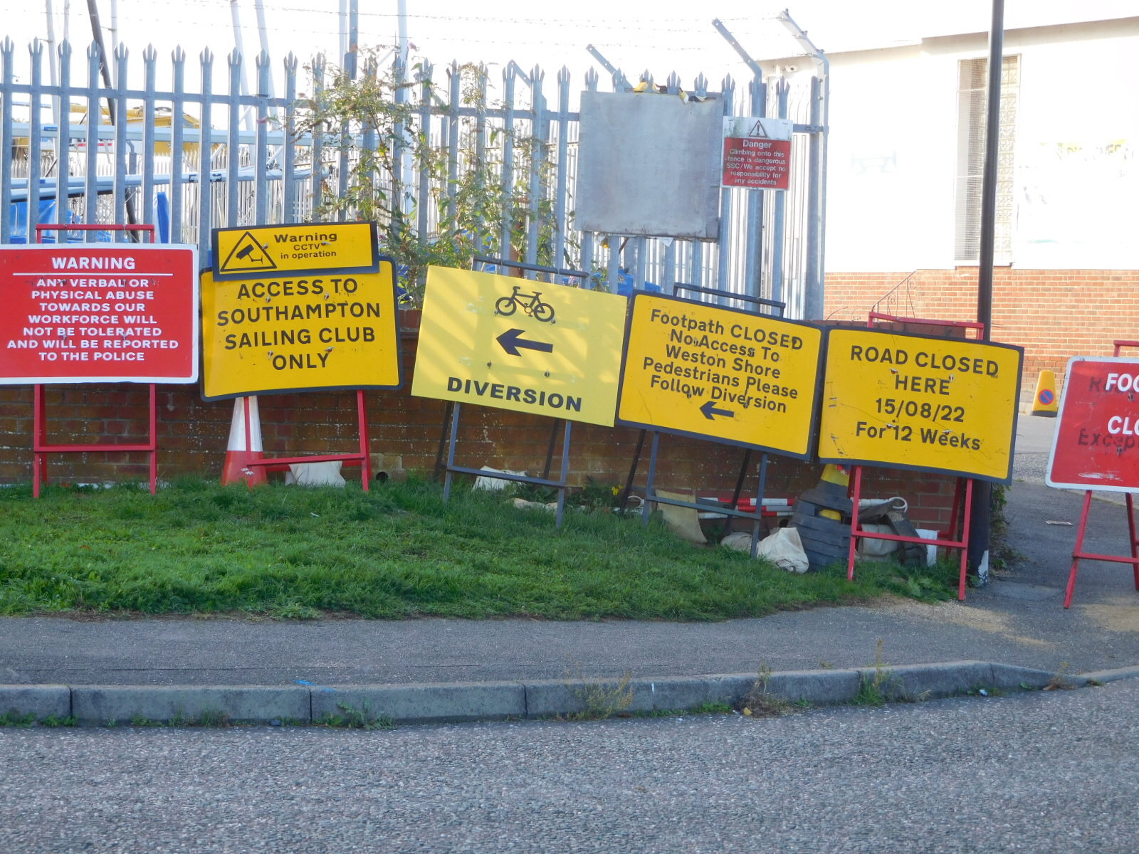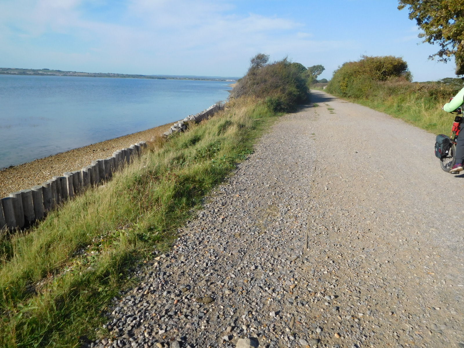 Not terrifying, but still not good for the blood pressure, was this barricade on the track. Although as recently as yesterday we have bragged about ignoring closures, this one was sufficiently convincing! The Diversion anyway was manageable, and we were soon back on track. And the track from here on was just swell. Sure, Sustrans could not resist dropping signs or making them ambiguous or confusing, but there were no meadows, bridle paths (much), swamps, or meadows. Instead there were quiet roads, some bikeways and lanes, and some glorious oceanside promenade.