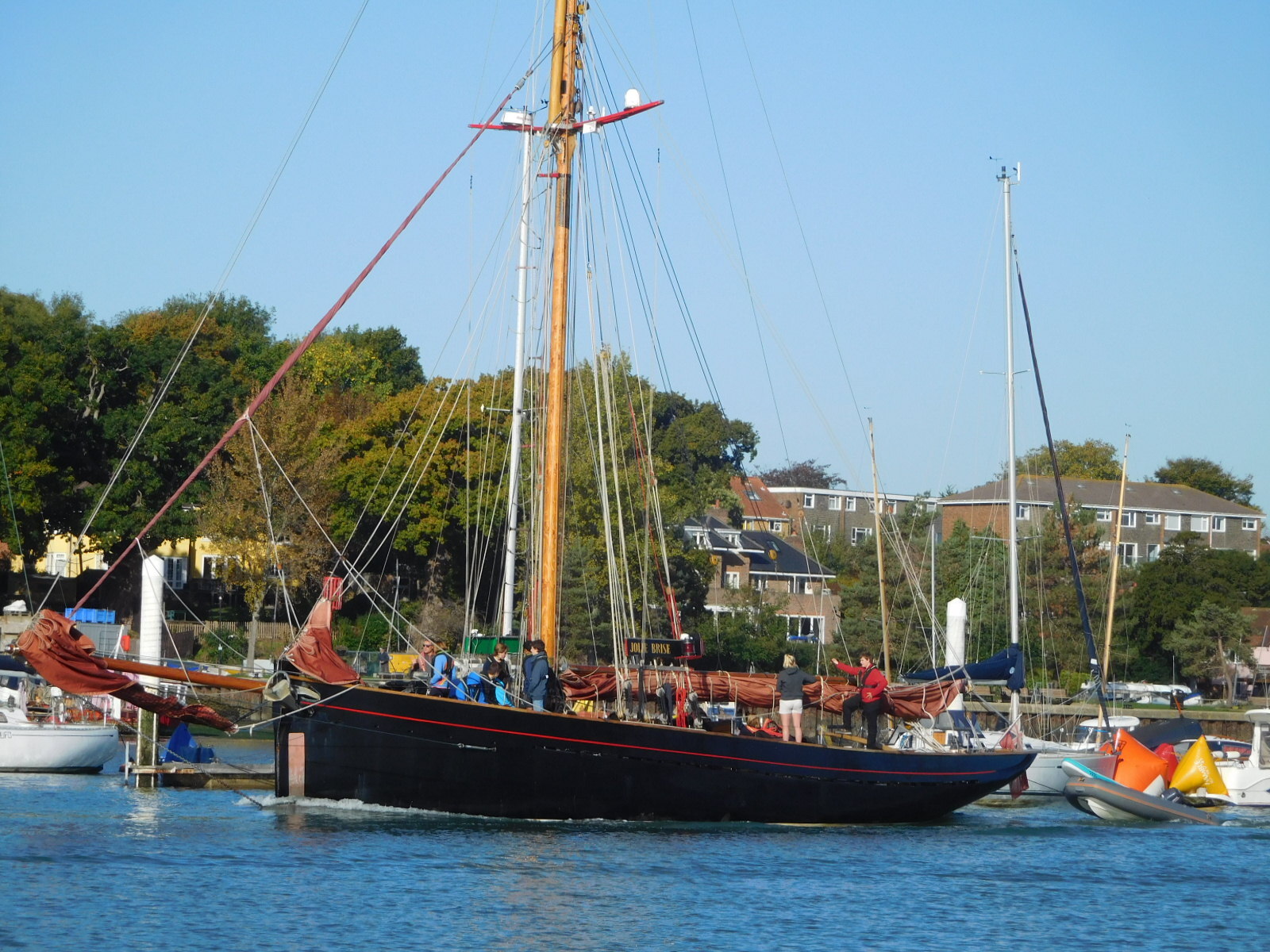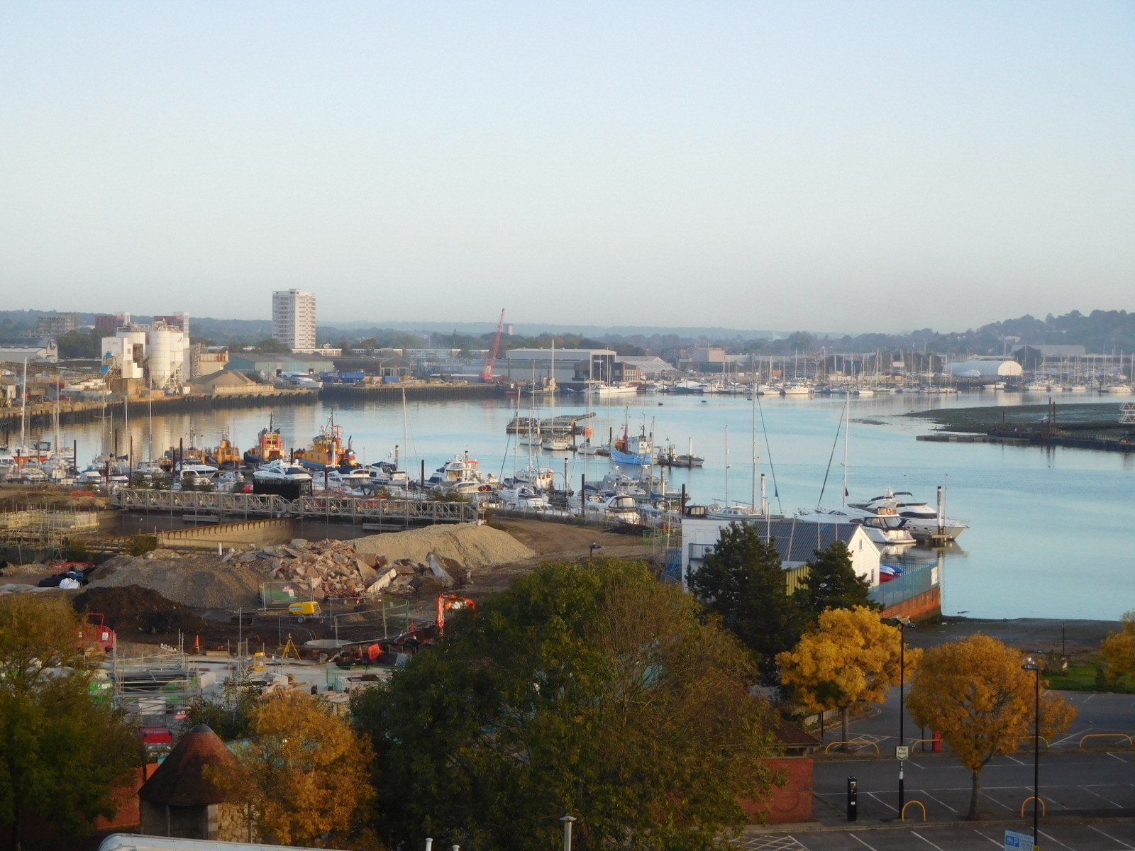 The stretch of water out here is known as the "Solent" which forms the straight between the mainland and the Isle of Wight. The Isle of Wight has several towns on it, but also notably Osborne House, which was a favourite retreat of Queen Victoria.