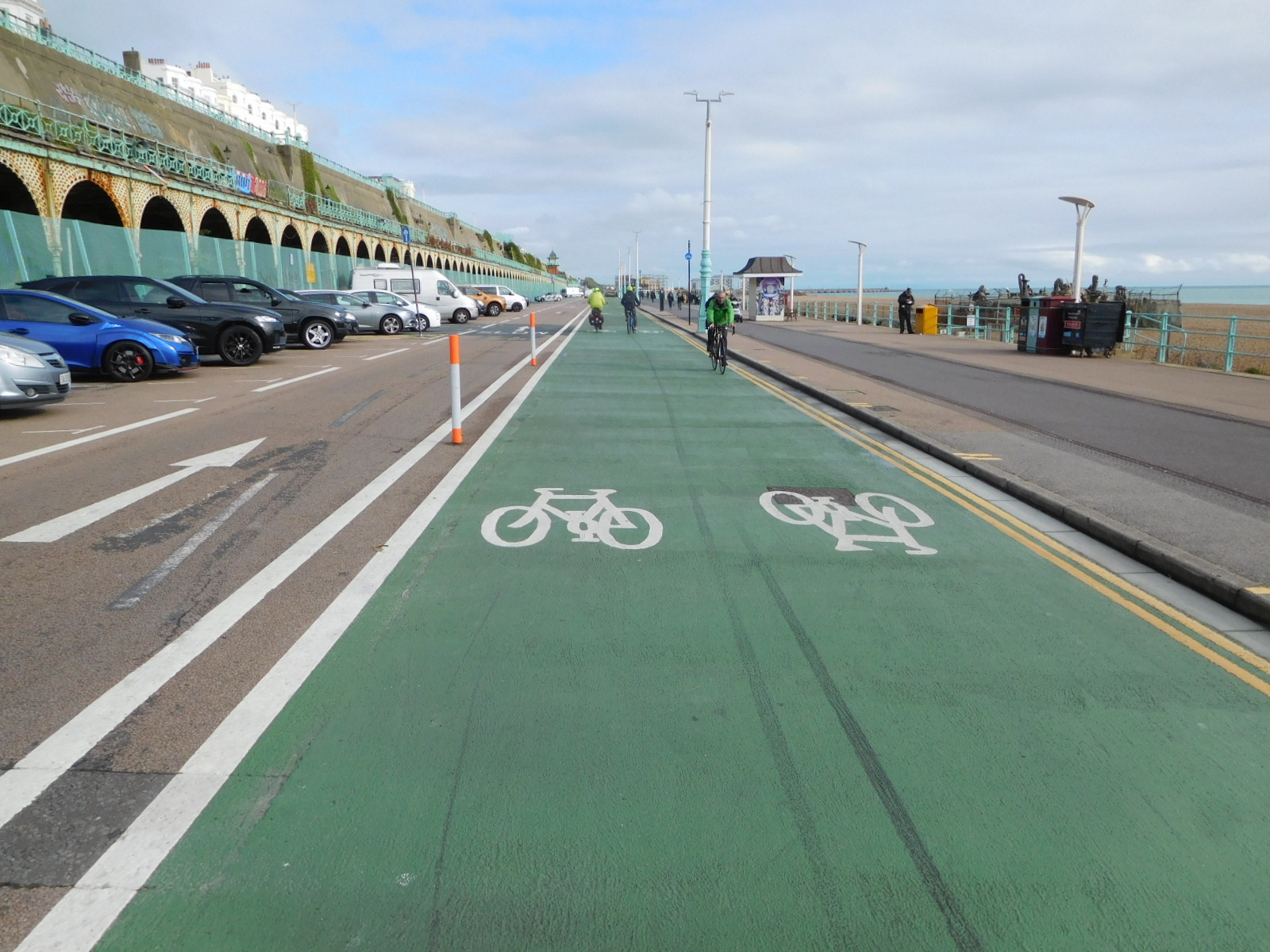 At the Brighton Pier we thought we would walk on and have a little look, but we were kicked out because of our bikes. Bikes were forbidden, even if walked. We took this as part of British anti-bike attitude. However, we had to admit that for some certain distance Brighton offered the nice bikeway shown below.