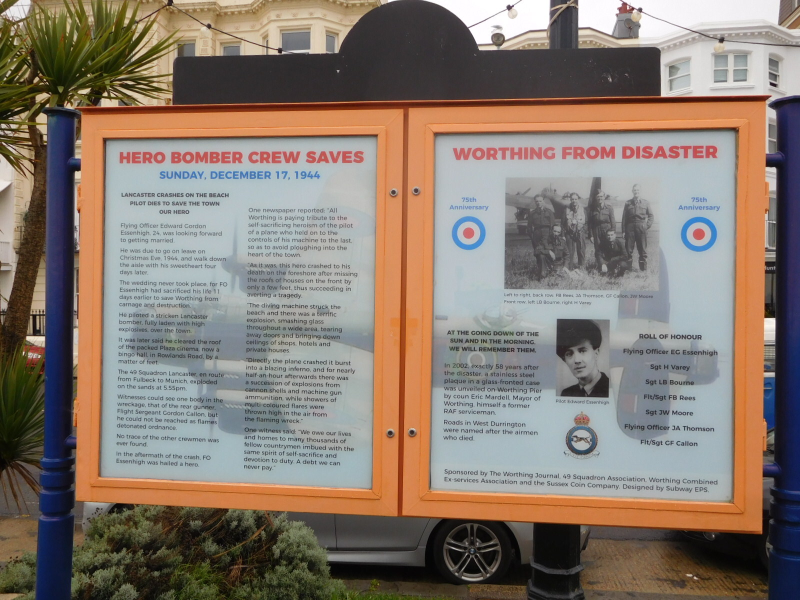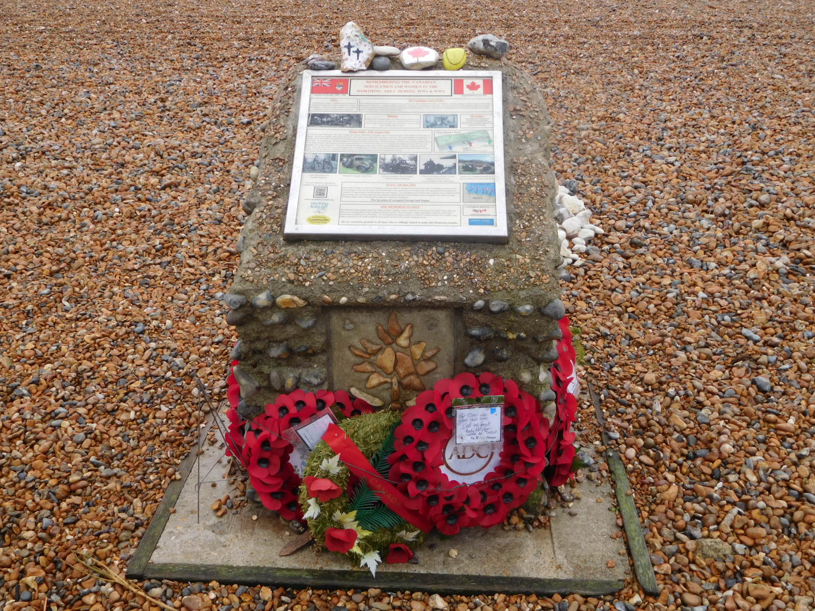 There are naturally other war time memorials along this critical coast. The one shown below was very touching, as it describes a young pilot who stayed with his failing plane and died crashing it into the beach, rather than hitting the town of Worthing.