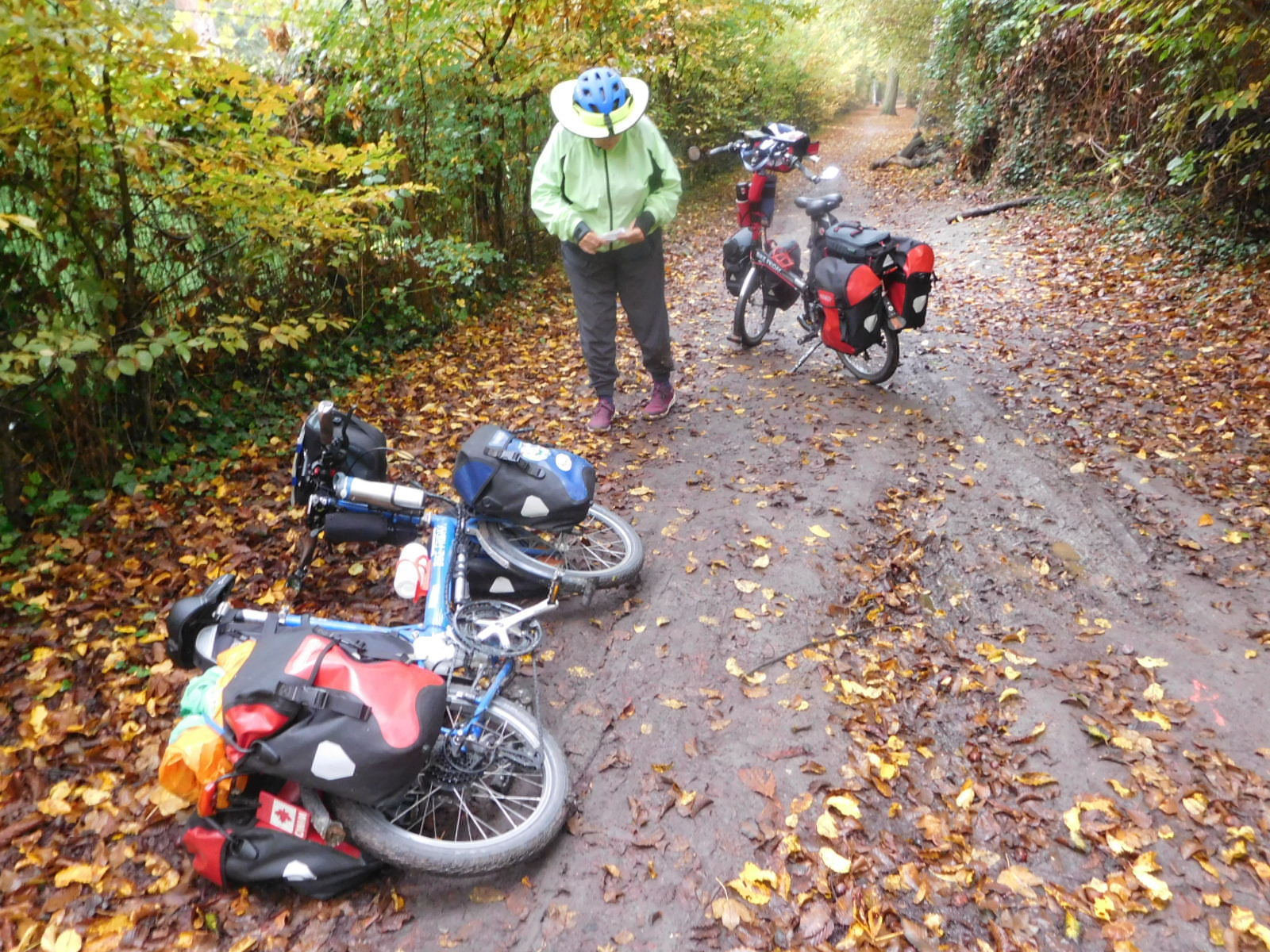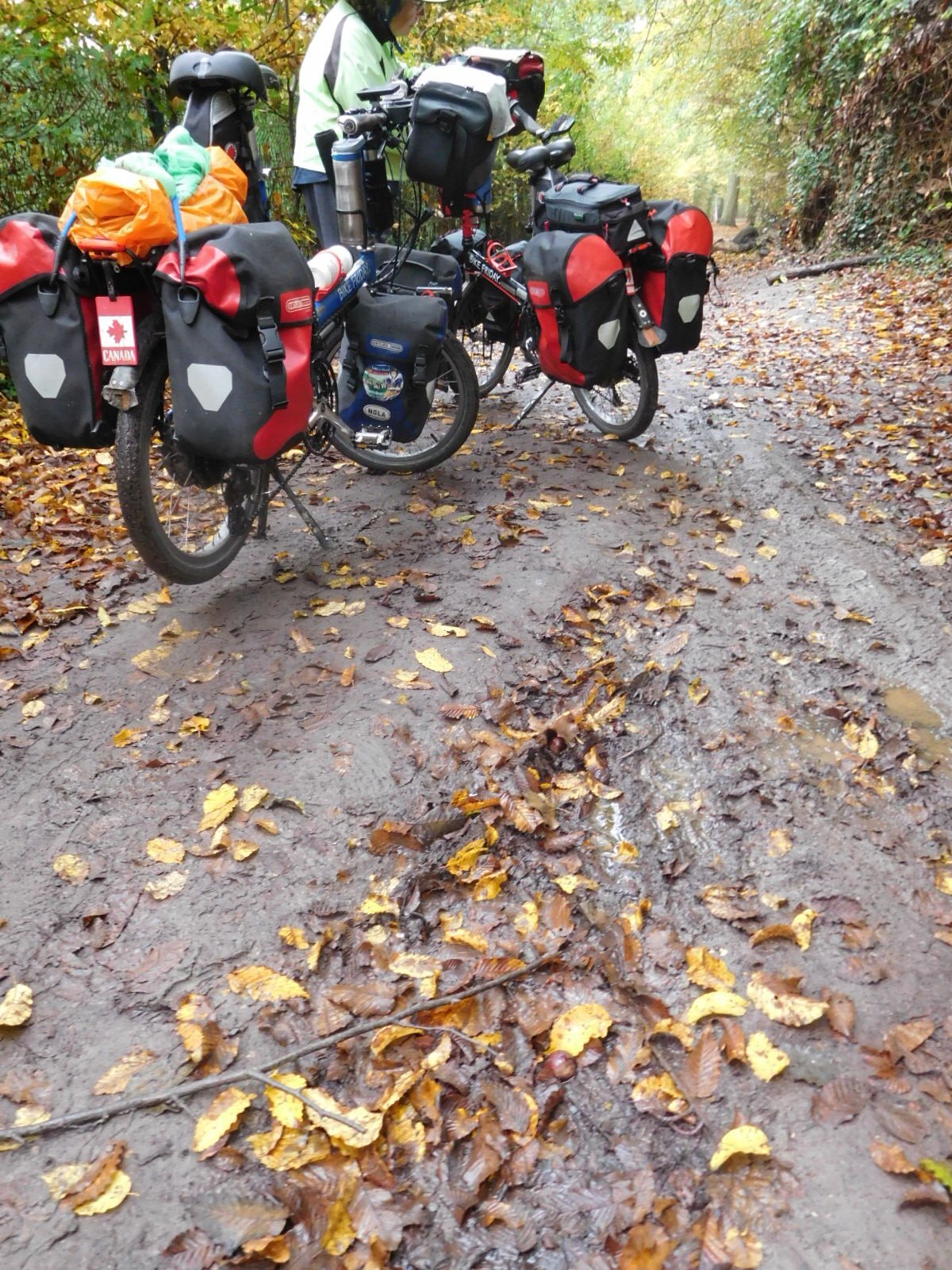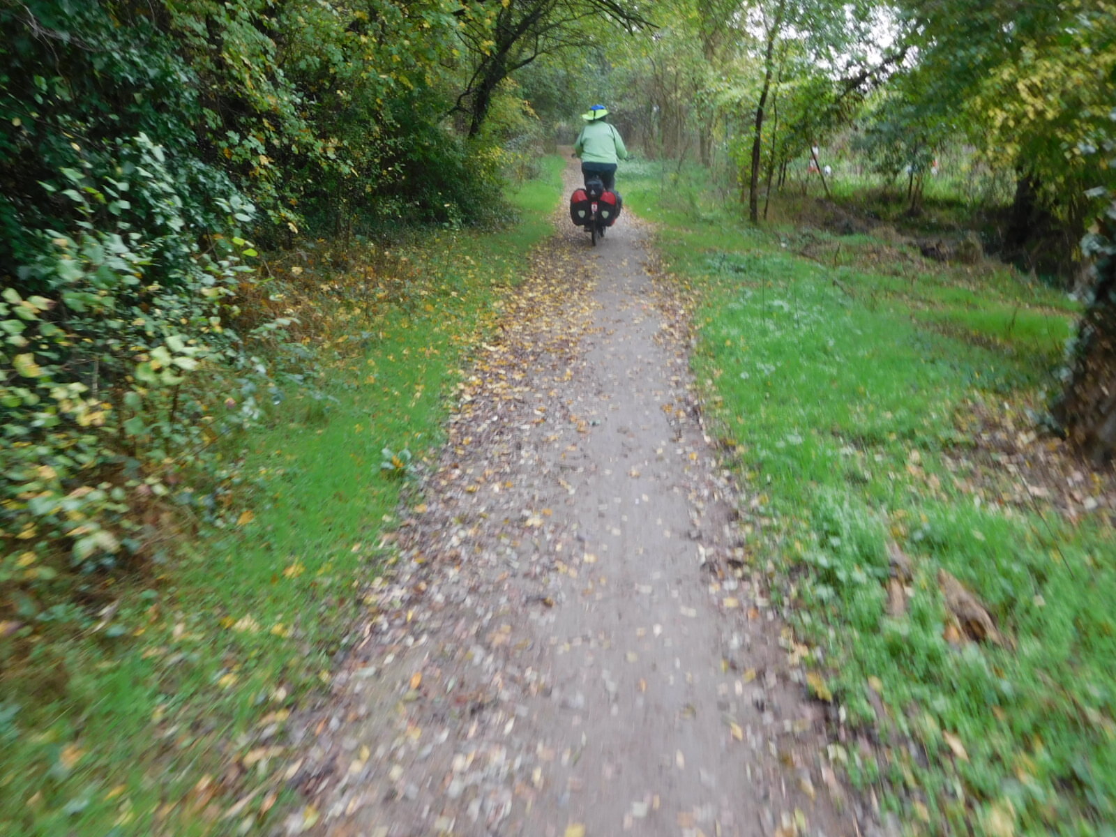 Approximately when we reached the Oise, the Avenue Verte began to break down a bit, with missing signs and also path surfaces that were less than ideal. In fact what might have been a pleasant cruise beside the river turned to tears, as the track was unpaved, narrow, and muddy.