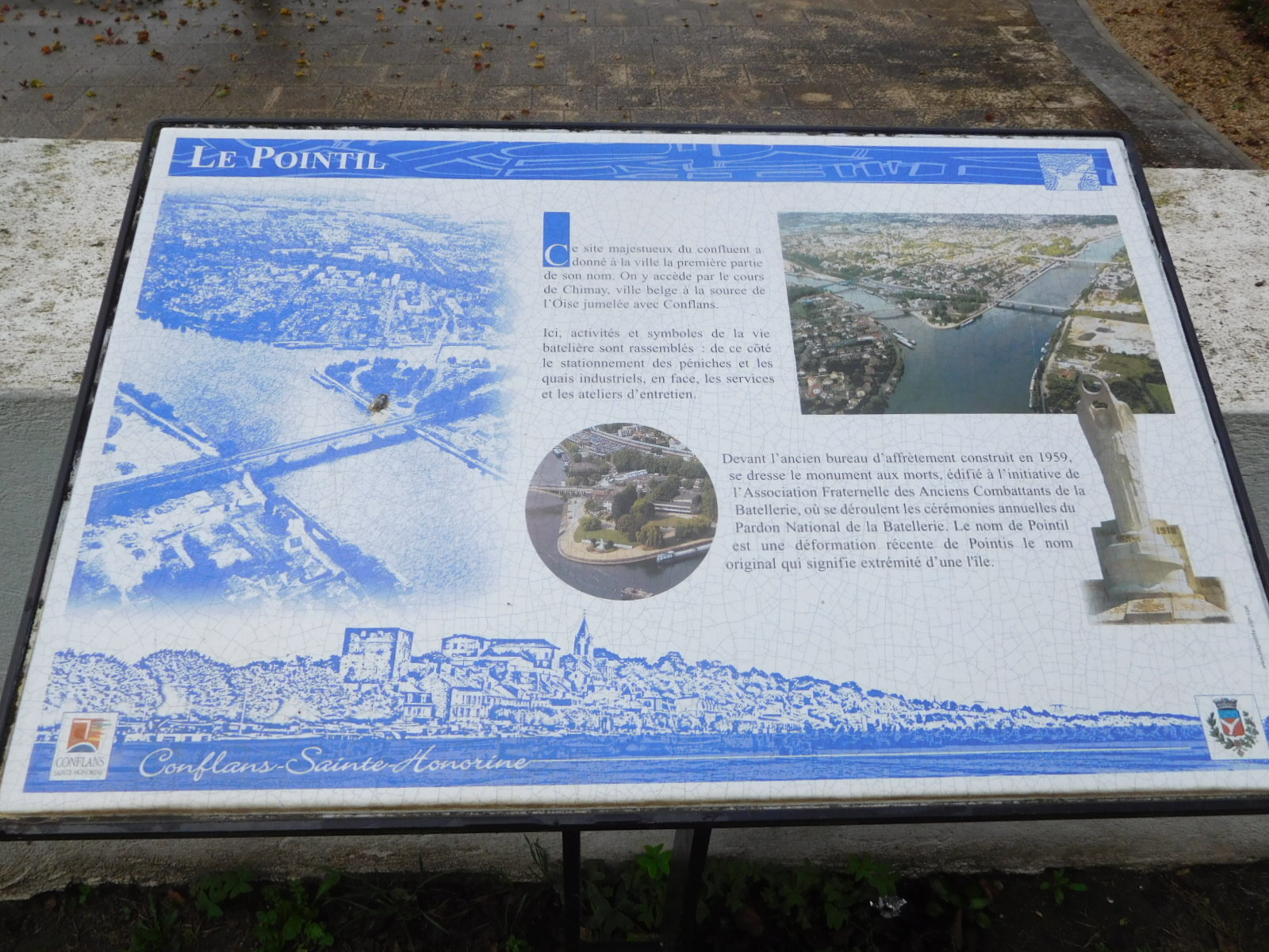 Following the Oise did of course eventually lead to the Seine, at a rather famous confluence, and the town of Conflans. Perhaps we could liken this confluence to the Deutsches Eck near Koblenz, minus the giant statue of William I. Or maybe not, but at least there was a sign board explaining the spot and featuring a photo of the nearby war memorial statue.