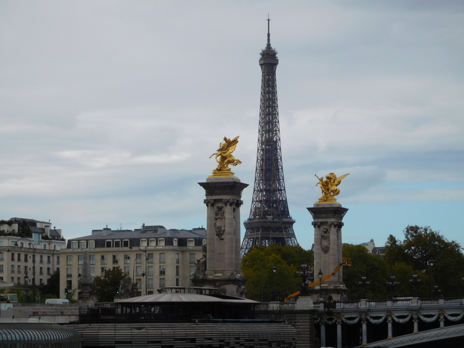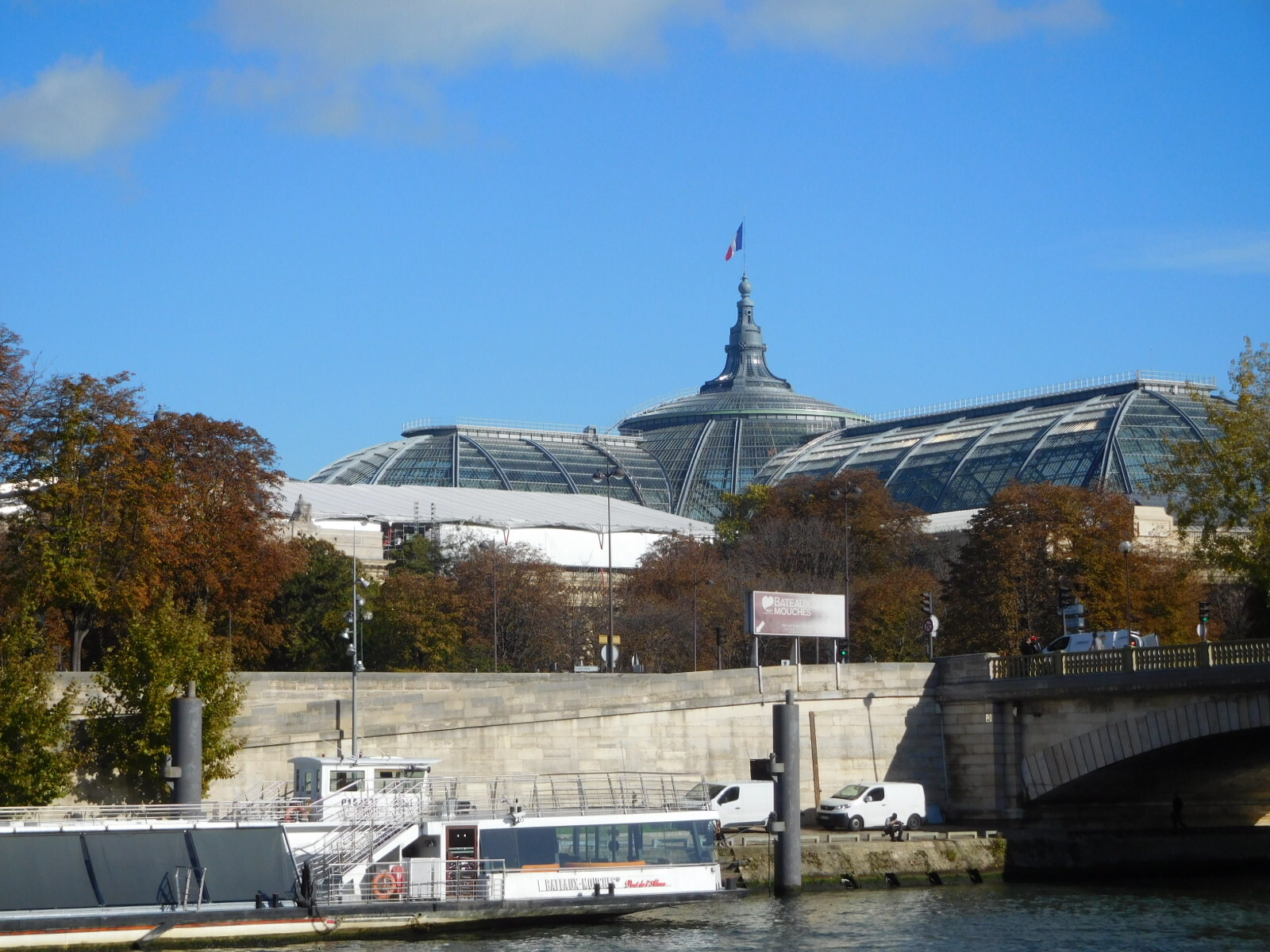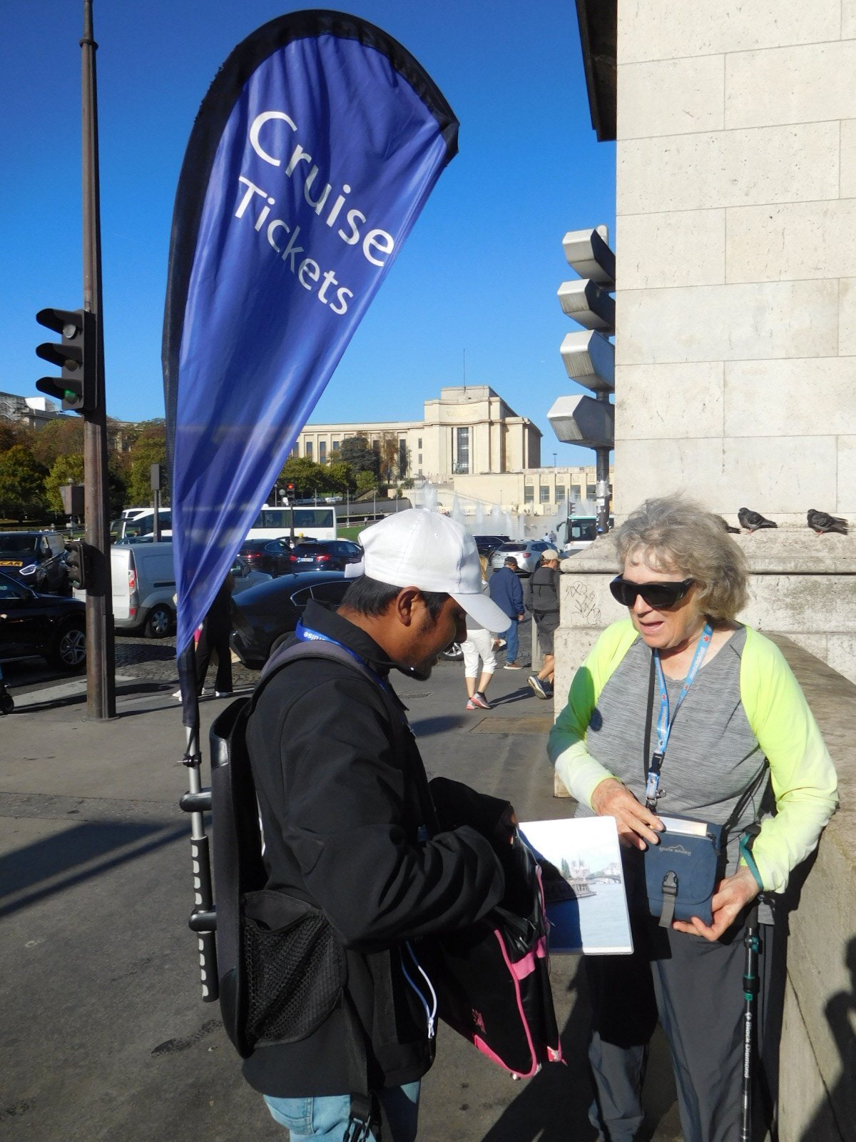 Yesterday near the Eiffel Tower we encountered a young man selling tickets for one of the boat rides that leave from under the Pont d'Iéna. We told him it sounded interesting, but that we would "be back". "Be backs" are a thing in the sales world, and very often they are never seen again. But here we were back, and the young man recognized us. The cost of the cruise is 18 euros per person, but he sold us the tickets for 15. Afterward we found him again and told him the cruise was great and tried to give him a tip, but he refused. He said he felt like he had sold the tickets to his own grandparents, and asked to be in a selfie with us. I must say this young man was perceptive, in that he sensed that he had somehow encountered the famous "Grampies".