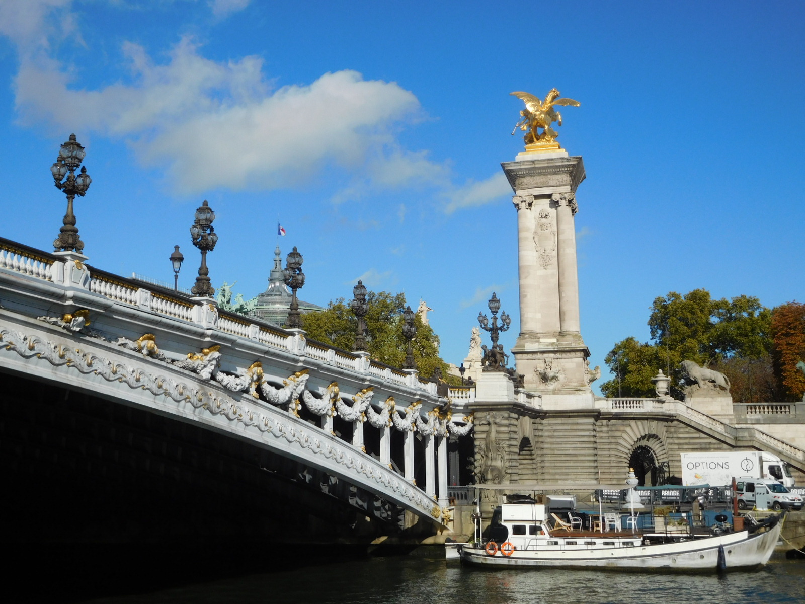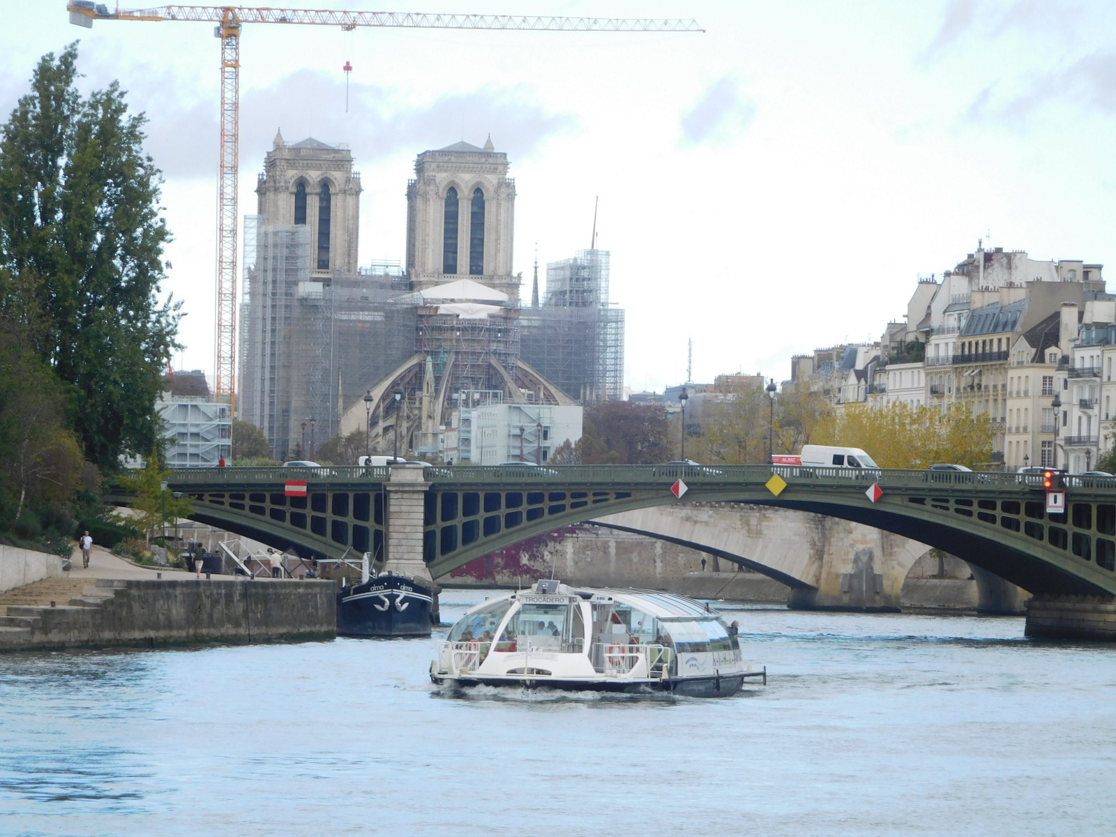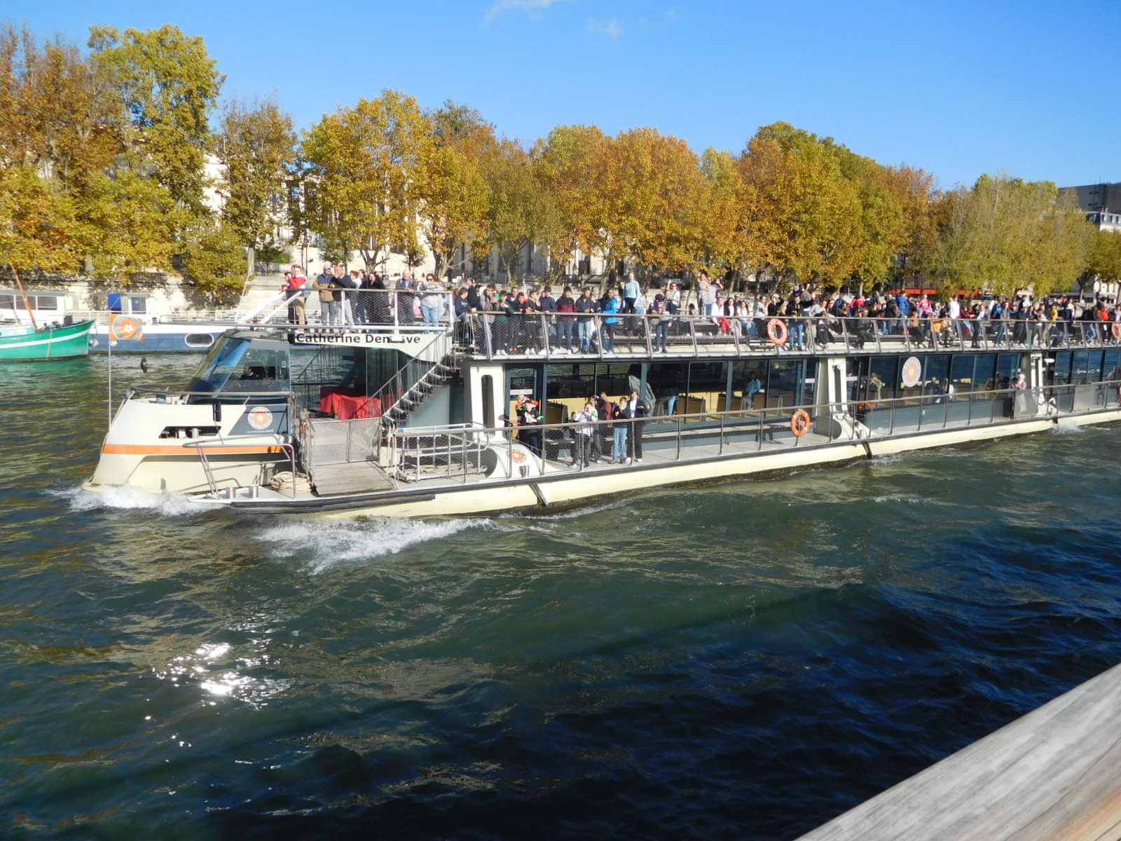 All this talk about the Opera torte is jumping the gun, because our first project in Paris today was to return to the Eiffel Tower and get on a boat that sails all the way up river to past Notre Dame cathedral before turning and coming back.
