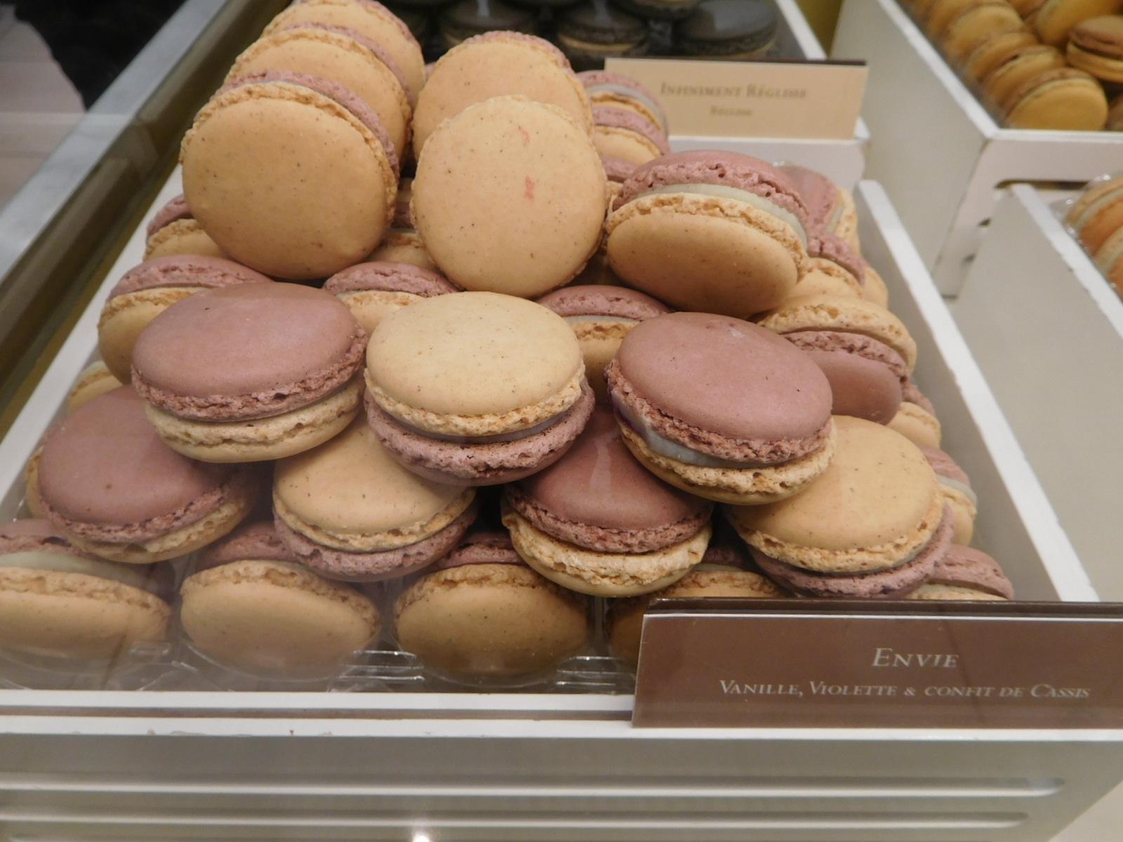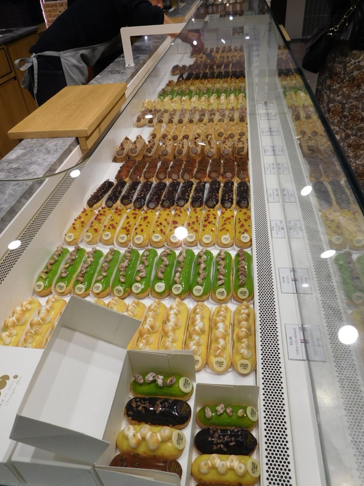 Inside Lafayette's pastry section, there is an immediate impression that every fantastical wonder of precision baking could be found here, and some items maybe only here. As with all Lafayette's retailing, the floor is really a series of independent shops, each one named for the genius or company behind it, and each one free to duplicate what others also have on offer. In that setup, if you are looking for eclairs they could be on many different counters, and could vary in price or quality.