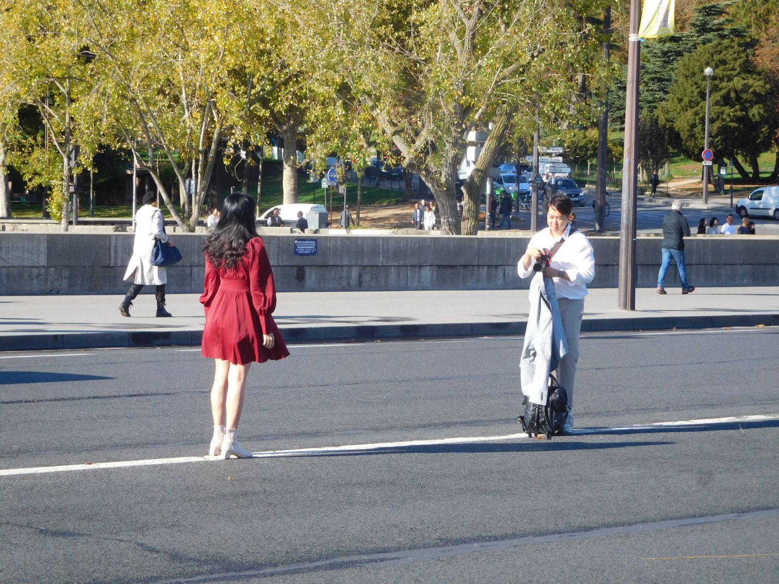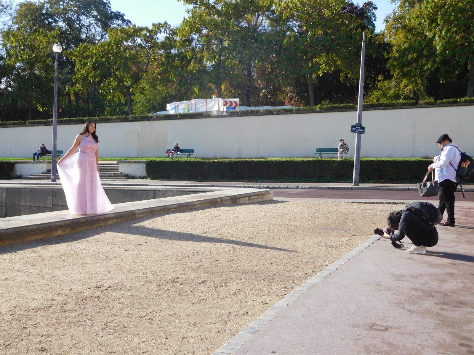 One big feature of the Tocadero is the Eiffel Tower in the background. This leads many people to get photos taken in the area. Some of the otherwise trinket sellers also earn money by snapping posed shots for tourists, using the tourists' phones and the great background.