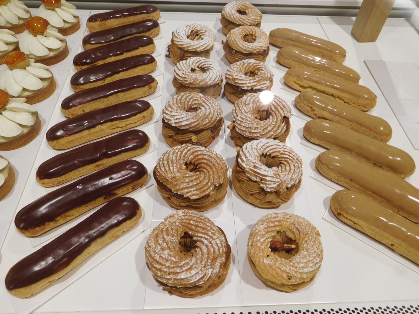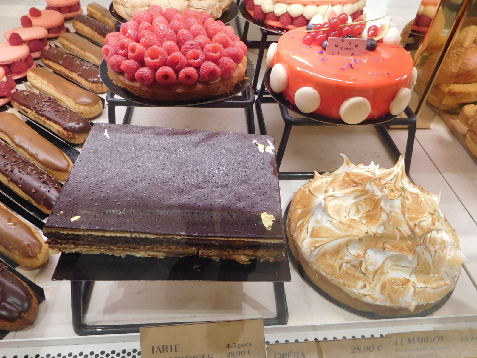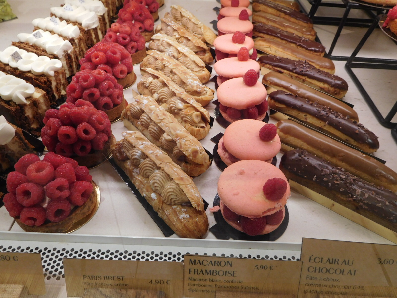 The overall impression of the pastries on offer is that they are jewel-like and very precisely made. The other impression is that these jewel-like articles have prices to match. A standard chocolate eclair might come in at 5 euros, and per piece pastries could reach 9 or maybe 10 euros each.