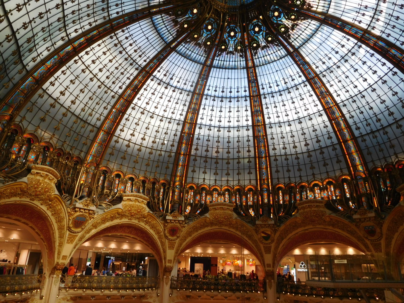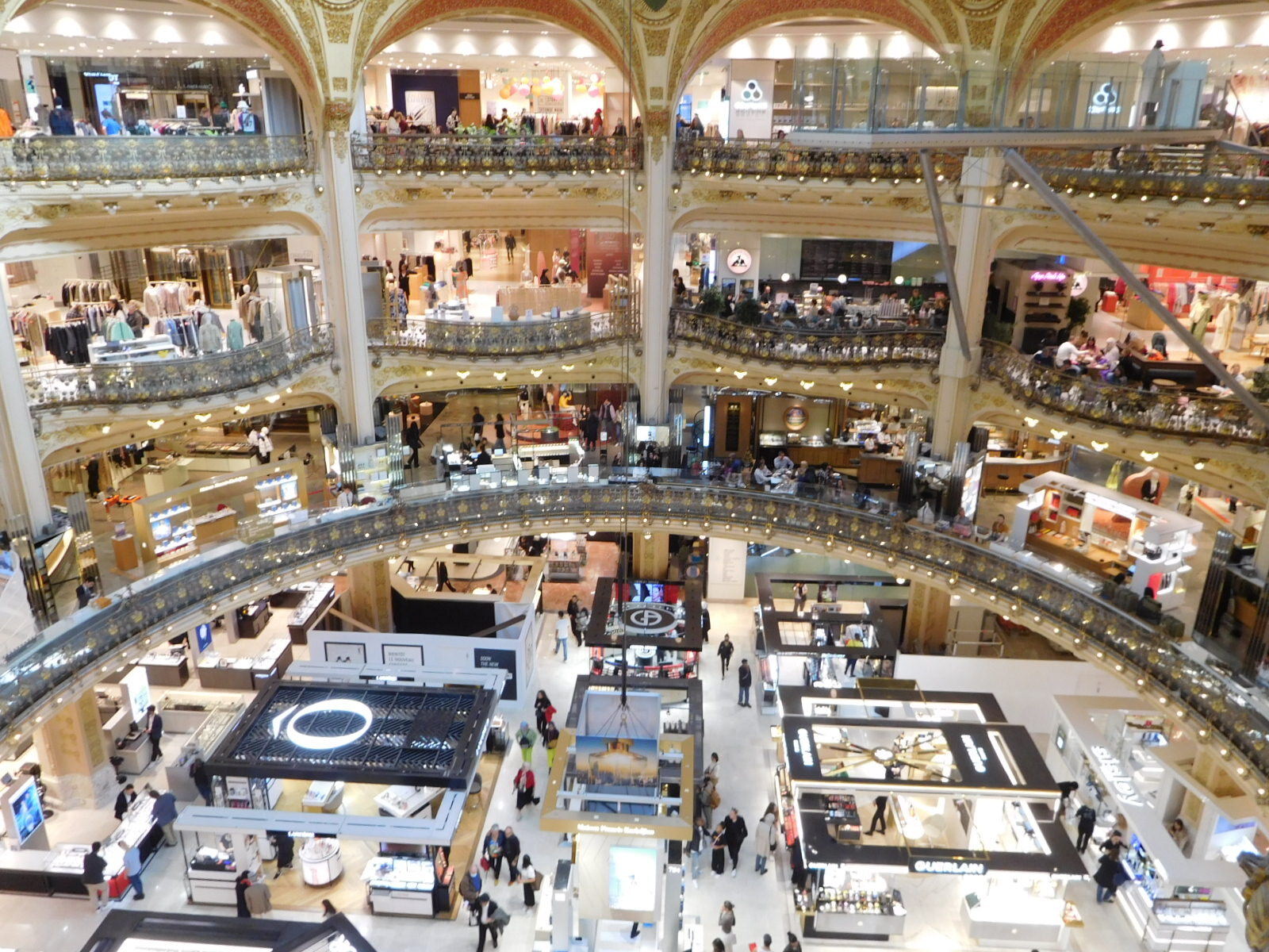 There are two main luxury department store chains in France, Printemps and Lafayette. Both have their flagship stores near Hausmann Street, Both try to be as glitsy as possible. Printemps has a really spectacular exterior, and Lafayette excels on the interior.