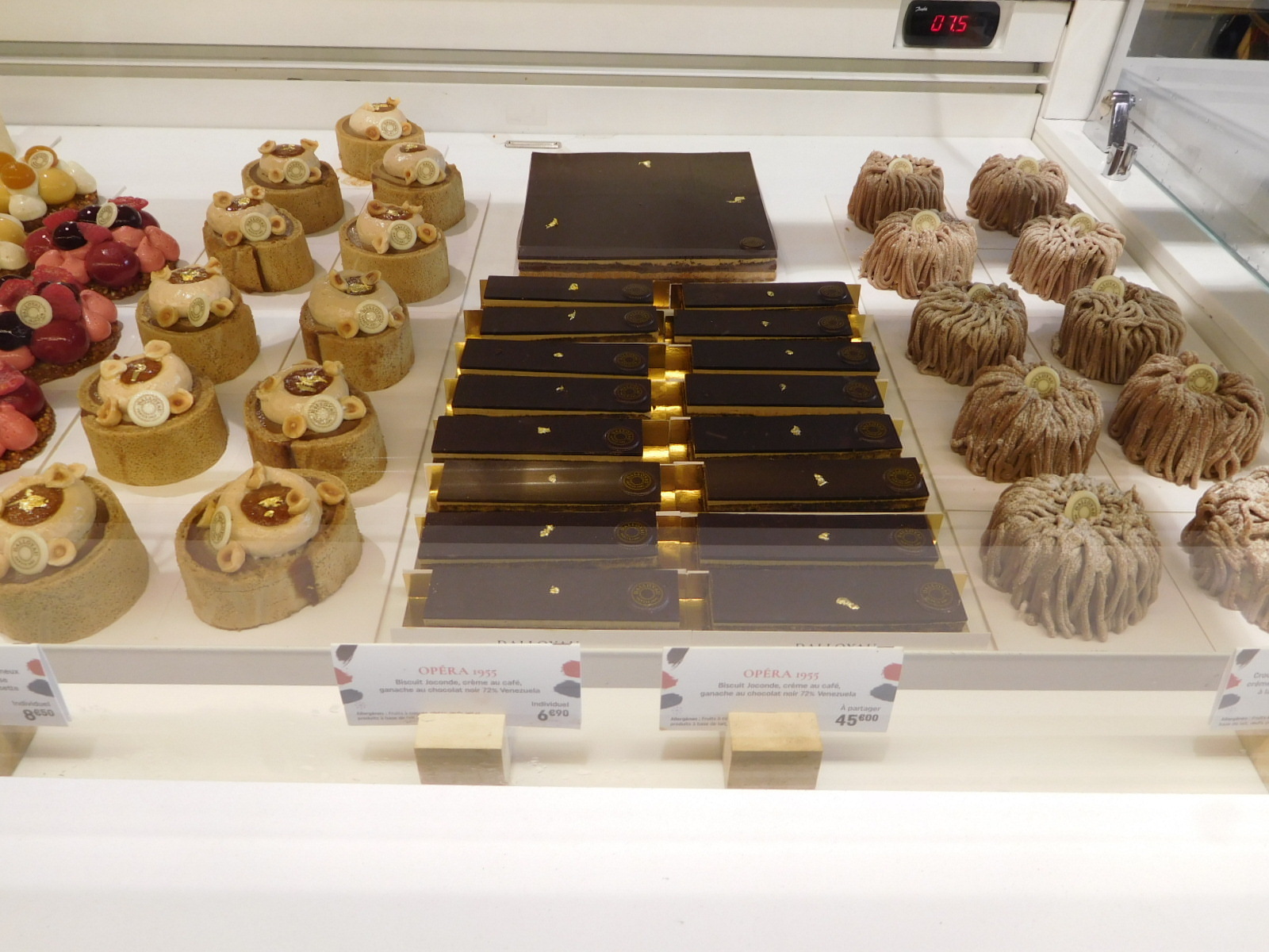 Opera, rather than Paris-Brest, is in our sights for today. But we are ignoring the Durand Opera, not to mention other versions seen at the Maisons-Laffitte shops, including the darn bakery just around the corner from where we are staying. No, our Opera quest involves going to the Opera the cake was named for (the Paris Opera - Opera Garnier), and checking out the version in the nearest shop, which is the pastry floor of luxury department store Galleries Lafayette.