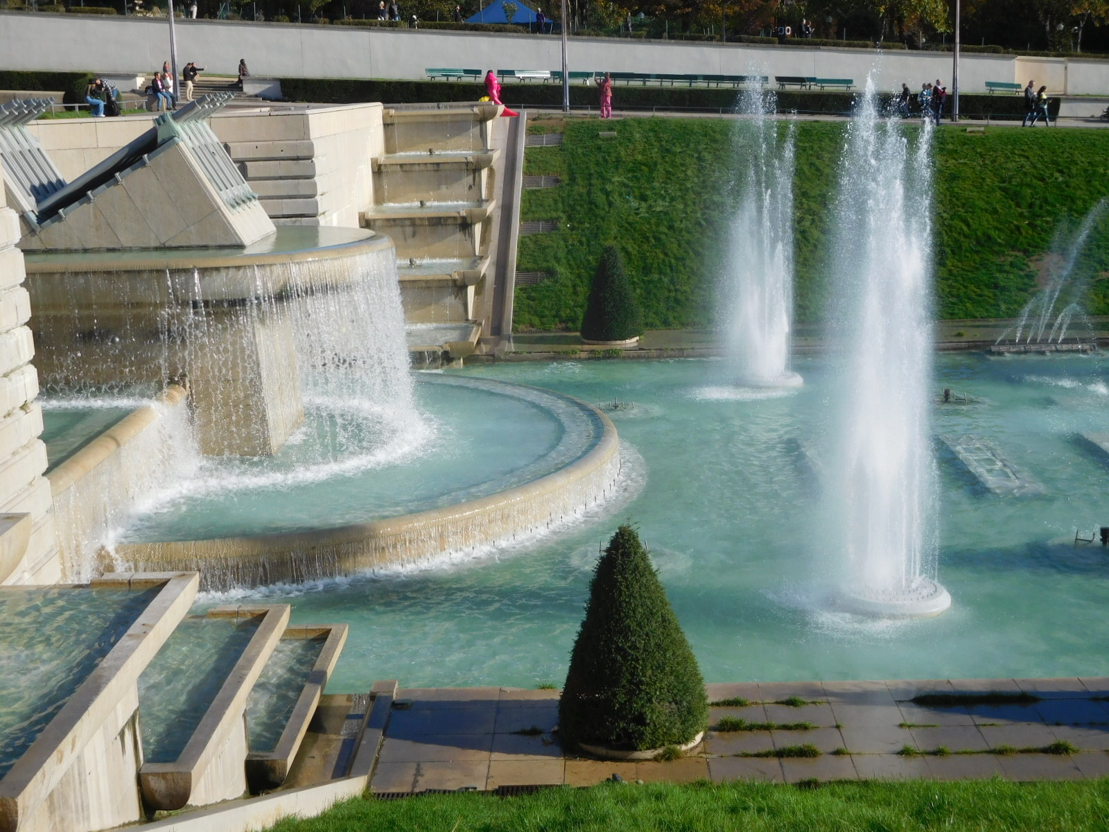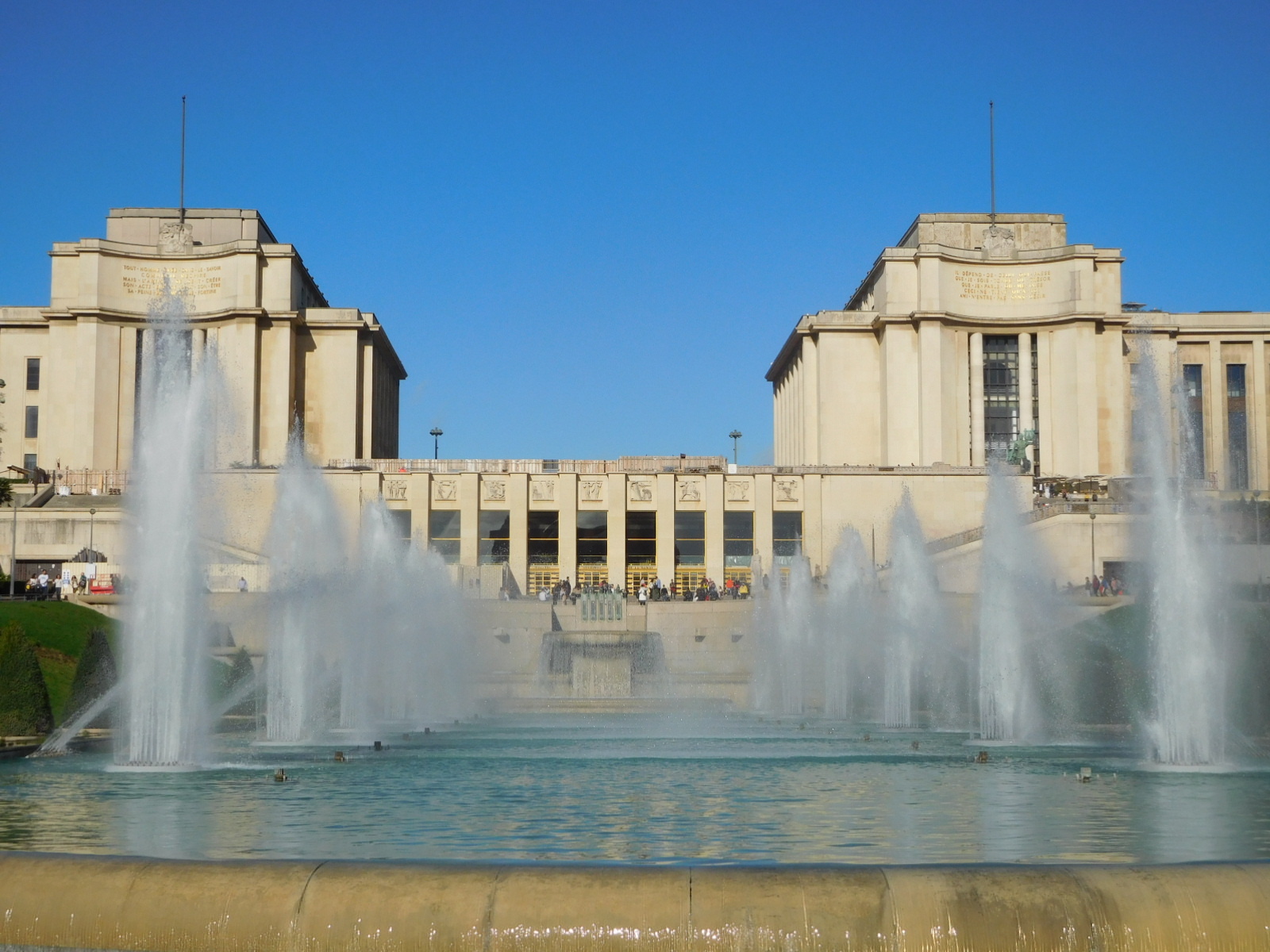 There are a lot sculptures and fountains surrounding the Trocadero. It is a very popular and beautiful place.