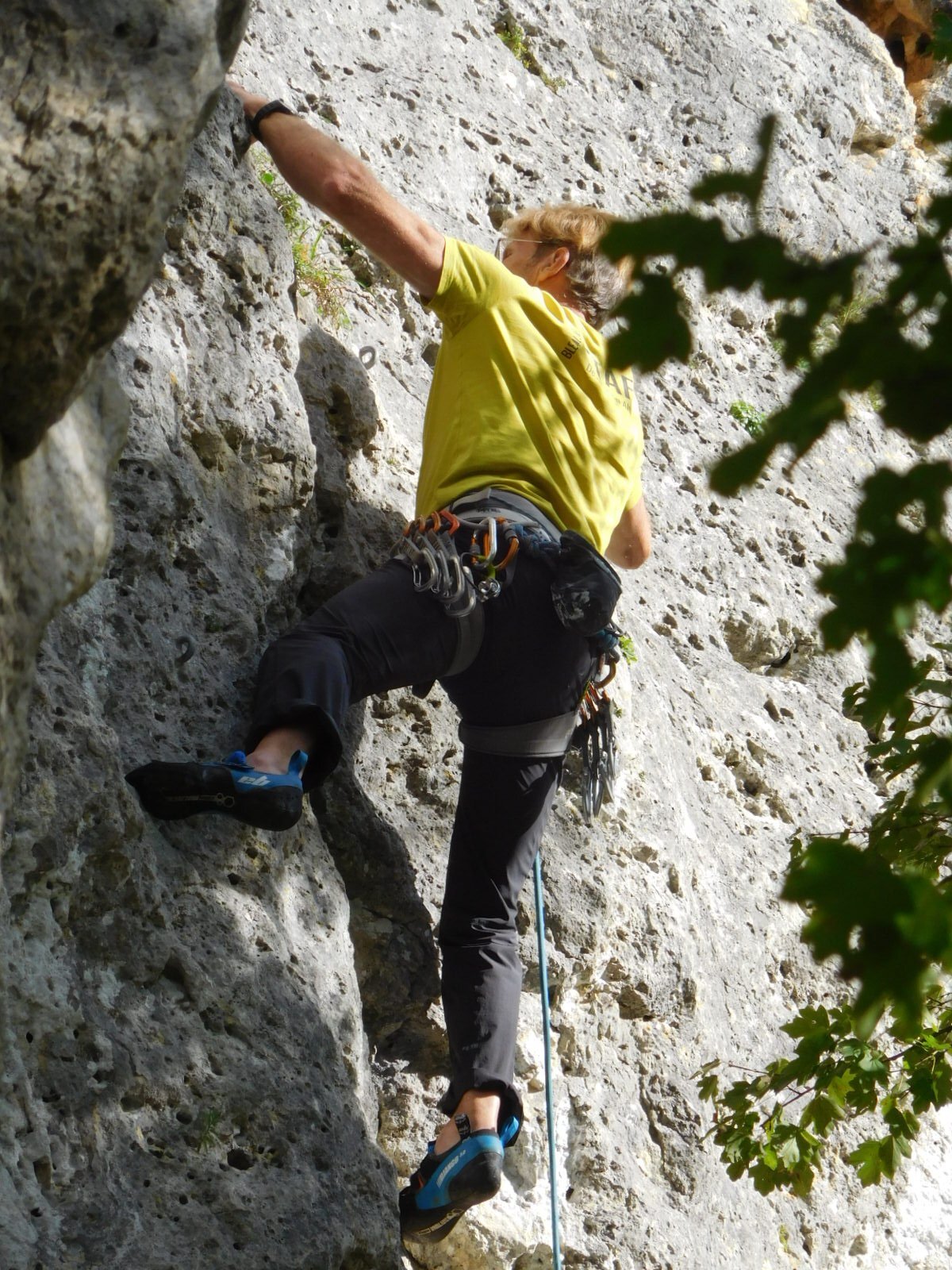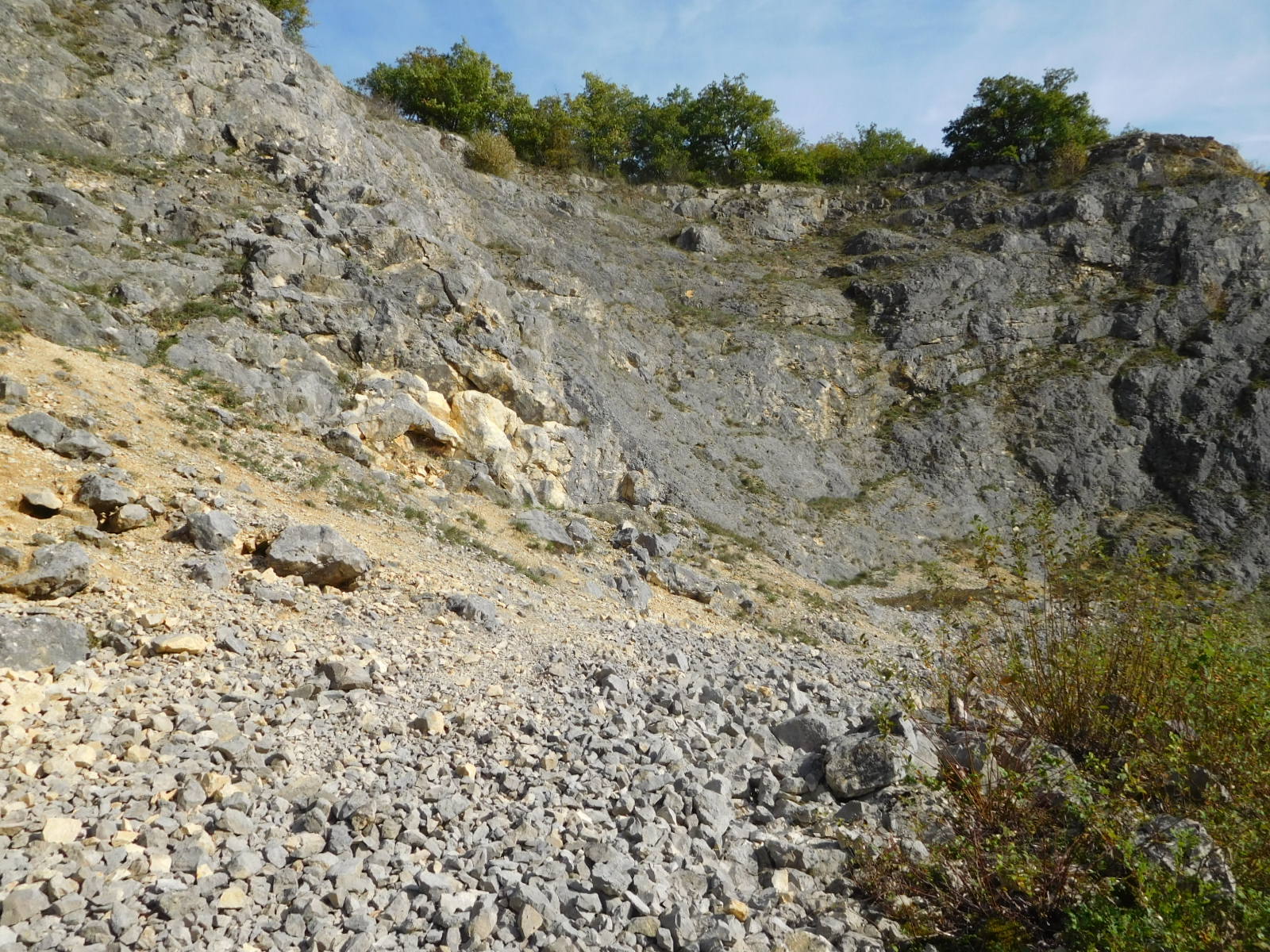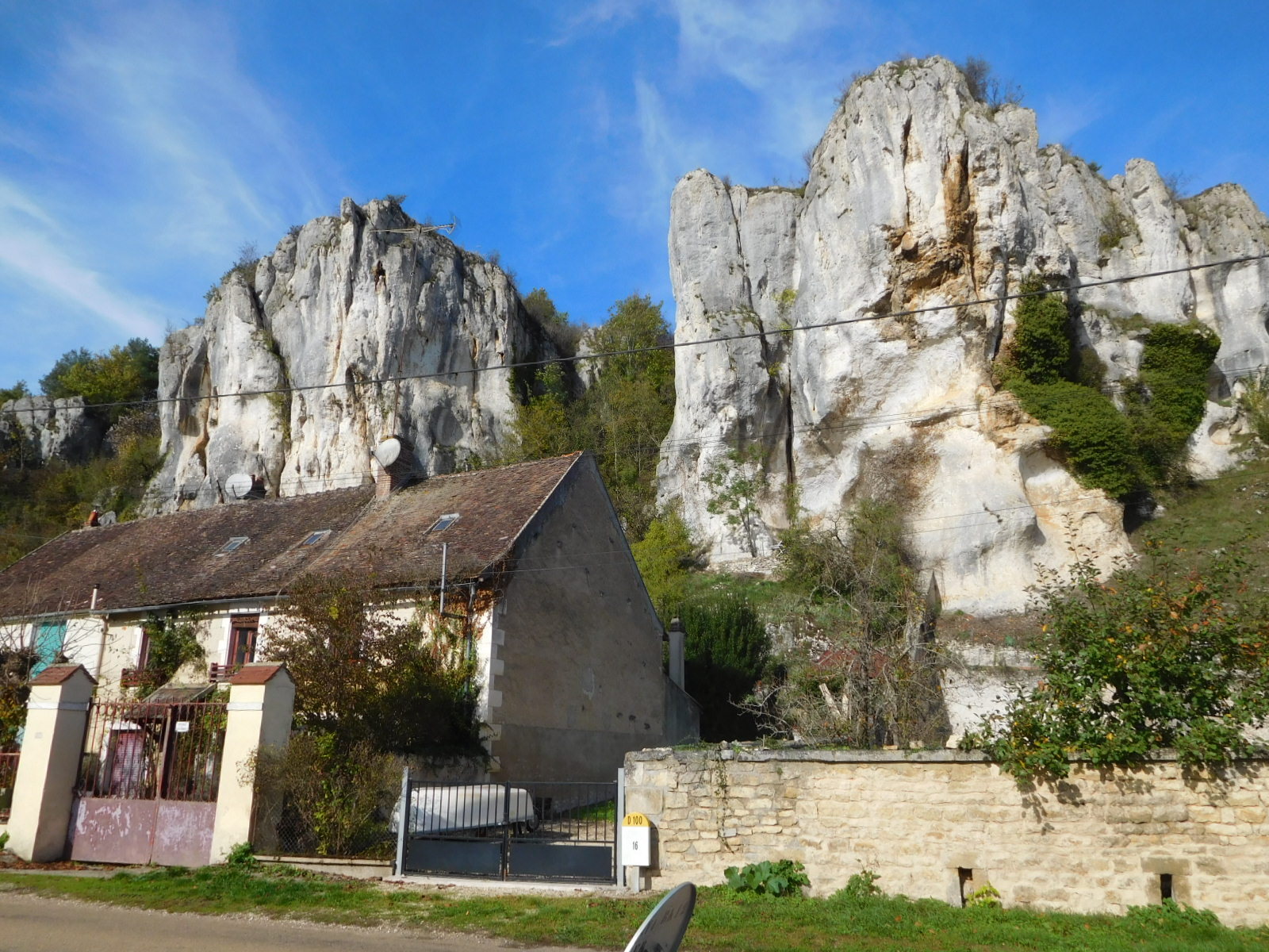 A really major departure from the routine happens near Merry sur Yonne, where we find the Rochers du Saussois, which are limestone cliffs beside the river. In parts of the cliffs, apparently a lot of fossils have been found, though among the various sign boards we did not find exactly what or when, or where these fossils are now. The cliffs are popular with rock climbers, and I went some feet off the path to watch one free climbing, which made me nervous. Returning to the path I tripped on a little piece of limestone and went flying. Yeah, I knew this was a dangerous activity!