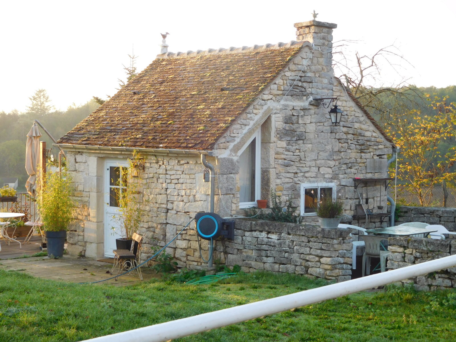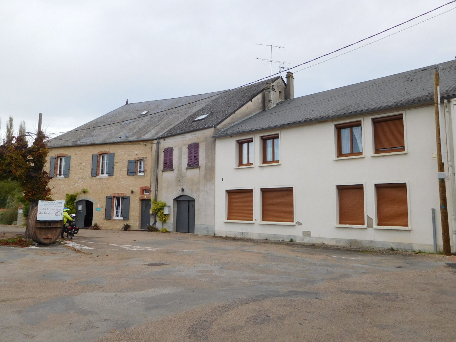 We have been going longer distances, thanks to this not being England, but by the end of the day we are getting tired of pedaling. So we were glad to finally arrive at our place: "Au Foudre du Bazois". They had put a sign out on the canal a couple of kms out, and we found that nicely encouraging. "Foudre" means lightening, but we found nothing exactly flashy about the place. However in light of minor issues we have had with places to stay, this one stood out as really good. The building, once again is old, beautiful, and well restored. I was greeted by the hostess, who knew very well that we were coming. She gave me a key that would open all doors, including the bike garage, and showed me three rooms to choose from in the hotel. When I said "Ooo, this room is good but the other one has a nice desk", she offered to move the desk. Then she showed the kitchen and said if we feel like eating or cooking anything tonight, the kitchen is here. Got that, Domaine des Carriers? The lady also put out a bowl of figs for us, from the property.