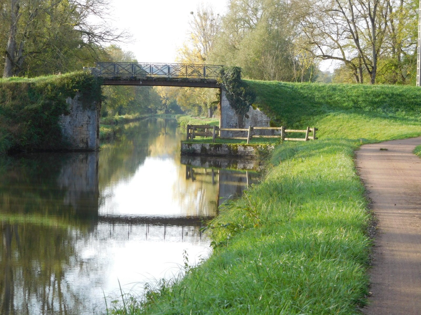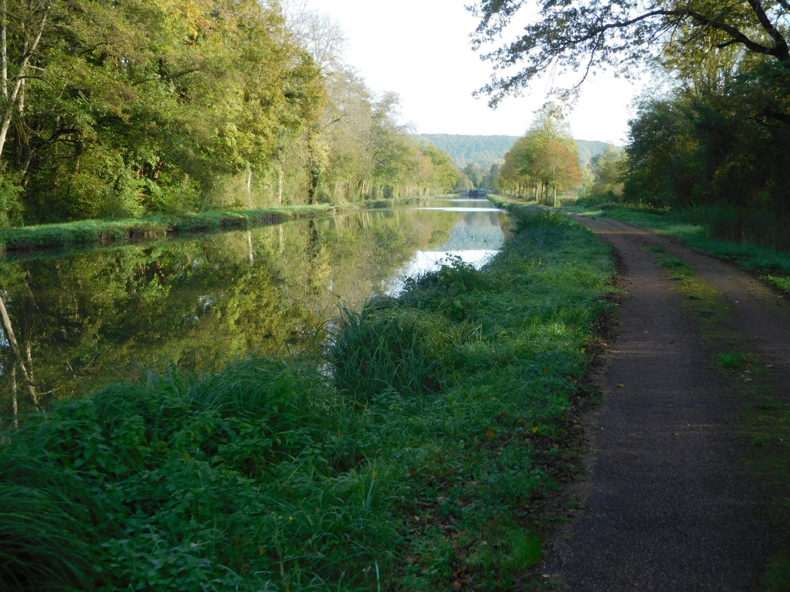 There are only 119 locks in total on the canal, but today it seemed like they were really one after another. Each lock involves a really short but sort of steep hill. It's not a big deal, but one does notice it. A little more noticeable is a well known area near Sardy, known as the ladder of sixteen locks. These are packed into 3.5 km, and handle a 40 m change in the water level. I seem to remember a ladder of locks somewhere where you could see them all lined up down a long slope, and that is what I expected here. So I kept telling Dodie that the locks we were passing must just be "warm up" locks for the big show. But no, it was just sixteen locks, spaced rather politely apart, and without even a signboard to explain that we are at this famous spot.
