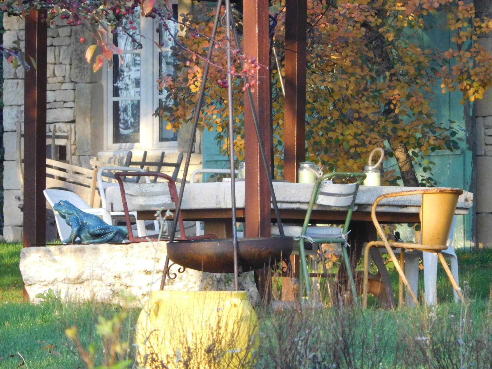 After all was said and done we really rather liked the Domaine des Carriers. The building was old and very well renovated, and the hostess, Madeleine, turned out to be very accommodating and personable. One of our beefs, which had been the relatively late 8:30 timing for breakfast was because the baker made his delivery normally at 8:20. However Madeleine got out all the other stuff at 8:00, and the baker actually did come at 8:15. He immediately became our favourite because his breads and viennoiseries were top notch. Some reviewers of the place criticized the fact that they were left alone at breakfast, and also asked to prepare some of their own stuff. But we loved that. We were on our own with the big pile of food, and I really enjoyed frying up eggs on the stove and making the coffee and hot chocolate. Madeleine had put out a large tray of artisan cheeses - the stinky ones, that Dodie won't eat, but there was also cream type cheese rolled in herbs - really nice.