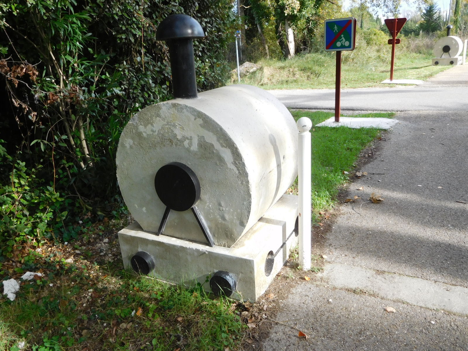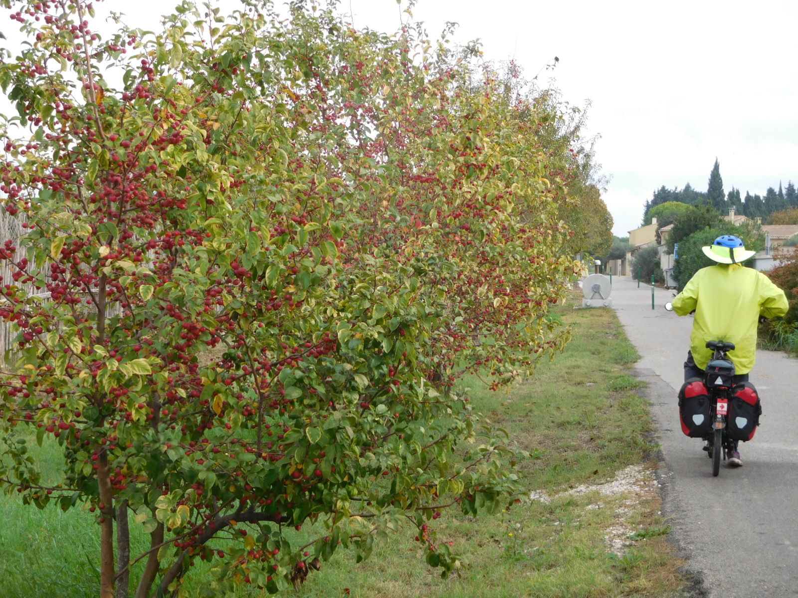 We carried on down the voie verte, enjoying the various sights. For example we again passed some crab apple trees. I sampled one apple and declared it good. But a nearby resident warned me that these were not edible and were just for decoration. I put him straight, explaining that they are good for jelly. This was news to him, but he thanked me for the information. So it seems I instructed a French person on a food topic. That's an achievement.