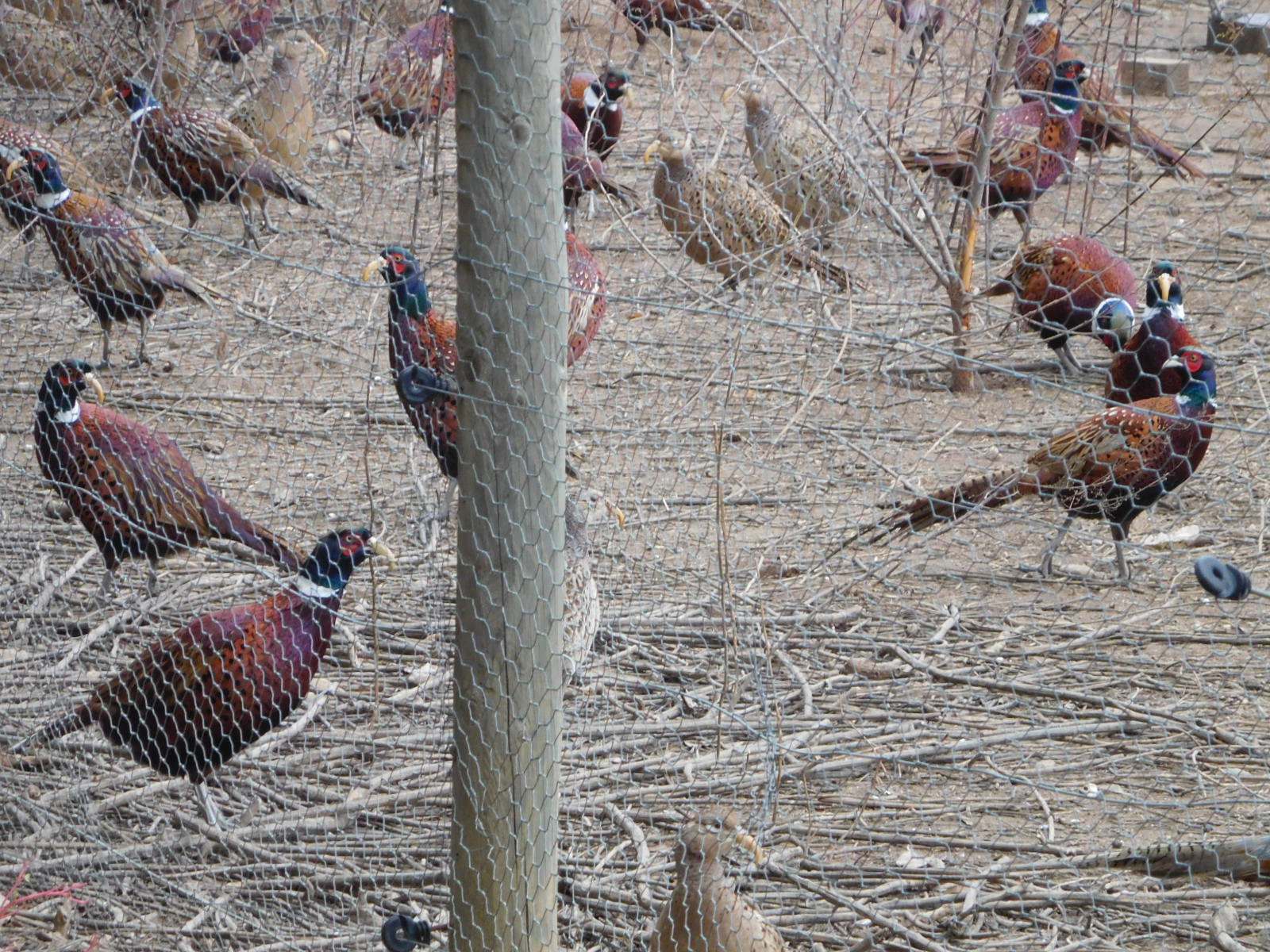 Near to the spot where the shot below was done, a guard dog was in a field with many sheep. He came and barked at us dutifully. Scott at this point photographed the sheep, but I have neither sheep nor dog to show. However I do have a few of what must have been thousands of pheasants.