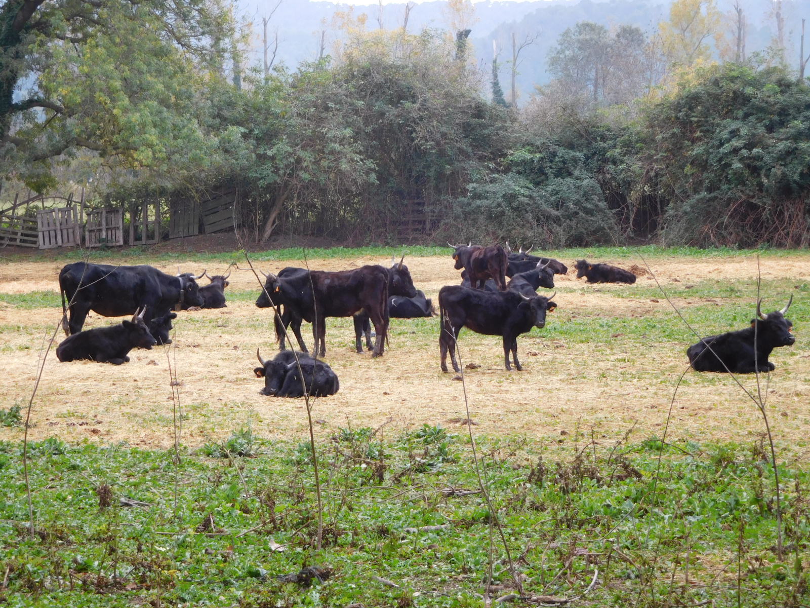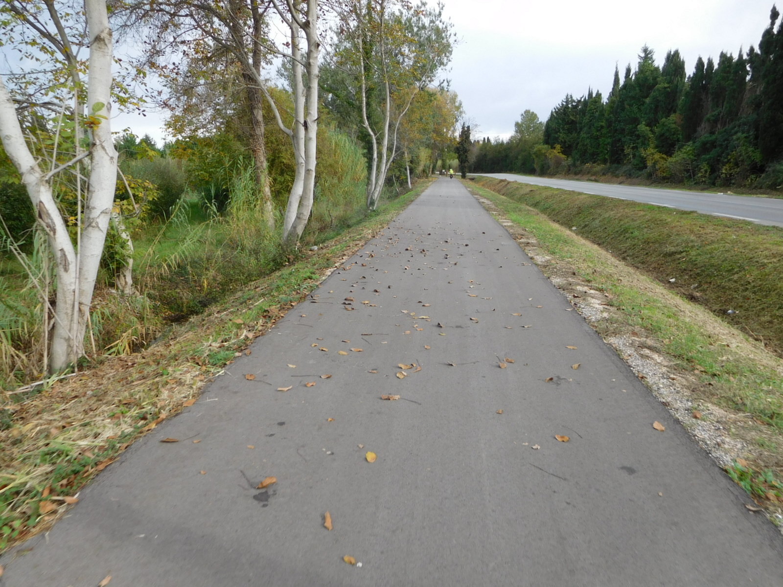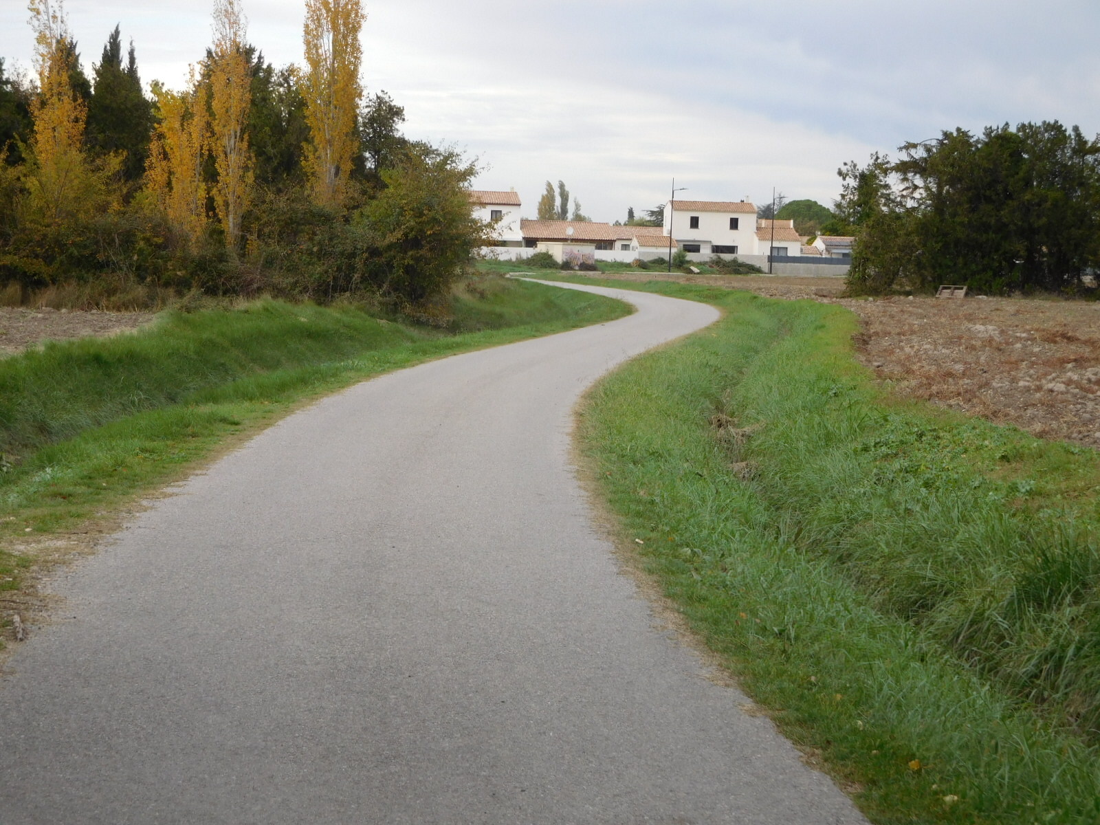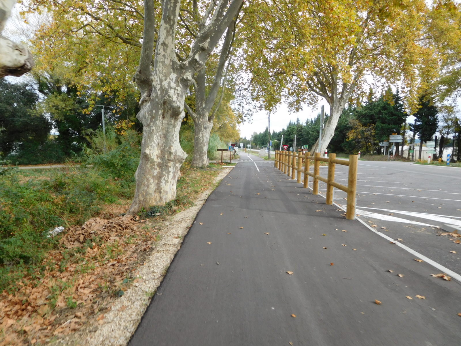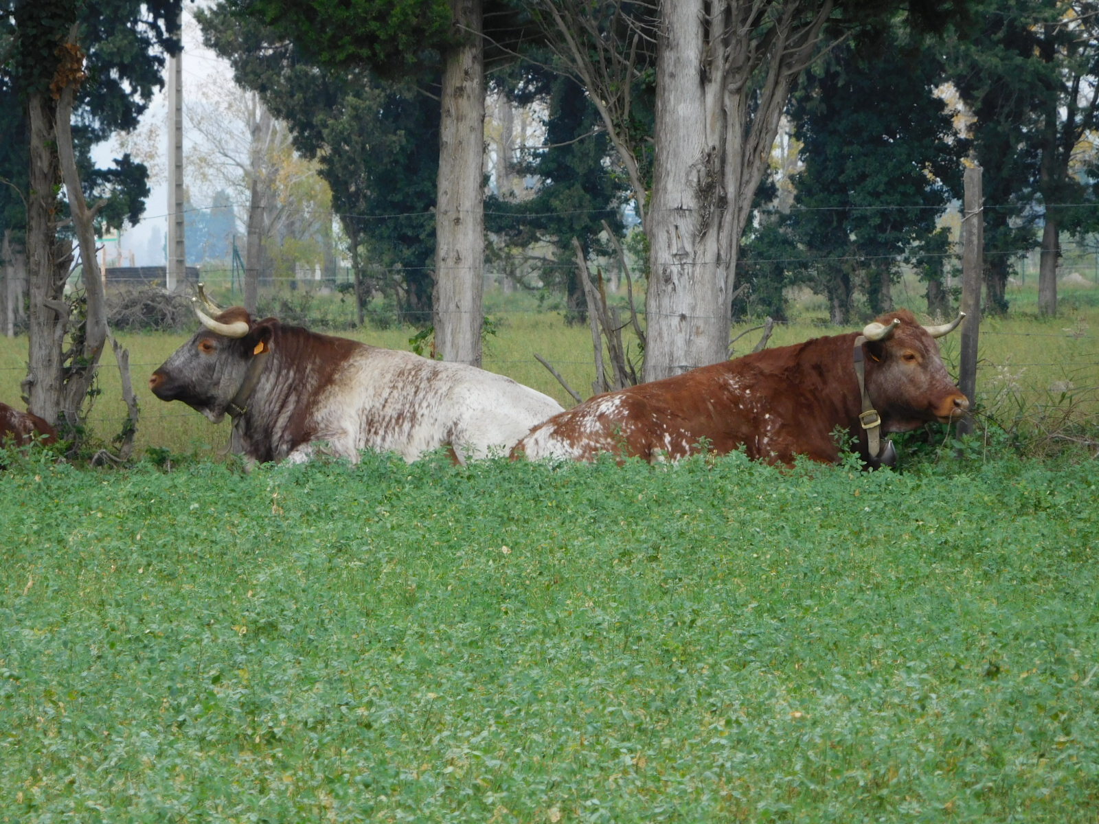 We had downloaded the track for Eurovelo 8, to take us to Saint Remy and then to Cavaillon, and later, beyond. We just grabbed a miscellaneous version, from the excellent website biroto.eu. But quickly out of Tarascon we found signs for a voie verte that seemed new, at least from the smoothness of the tar. The route was good, not least because it featured two kinds of cows. Scott also saw these cows, but neither of us know what variety they are.
