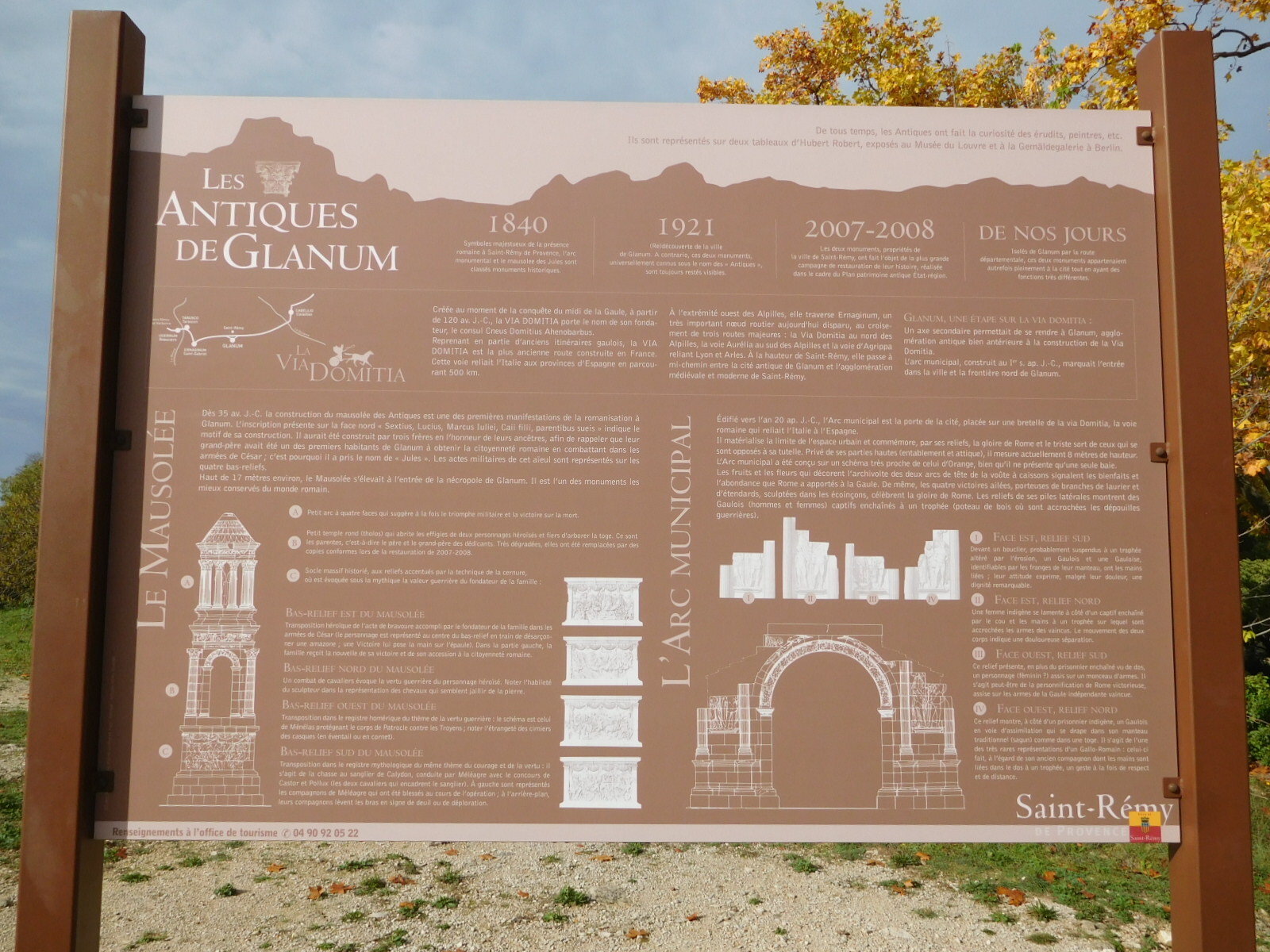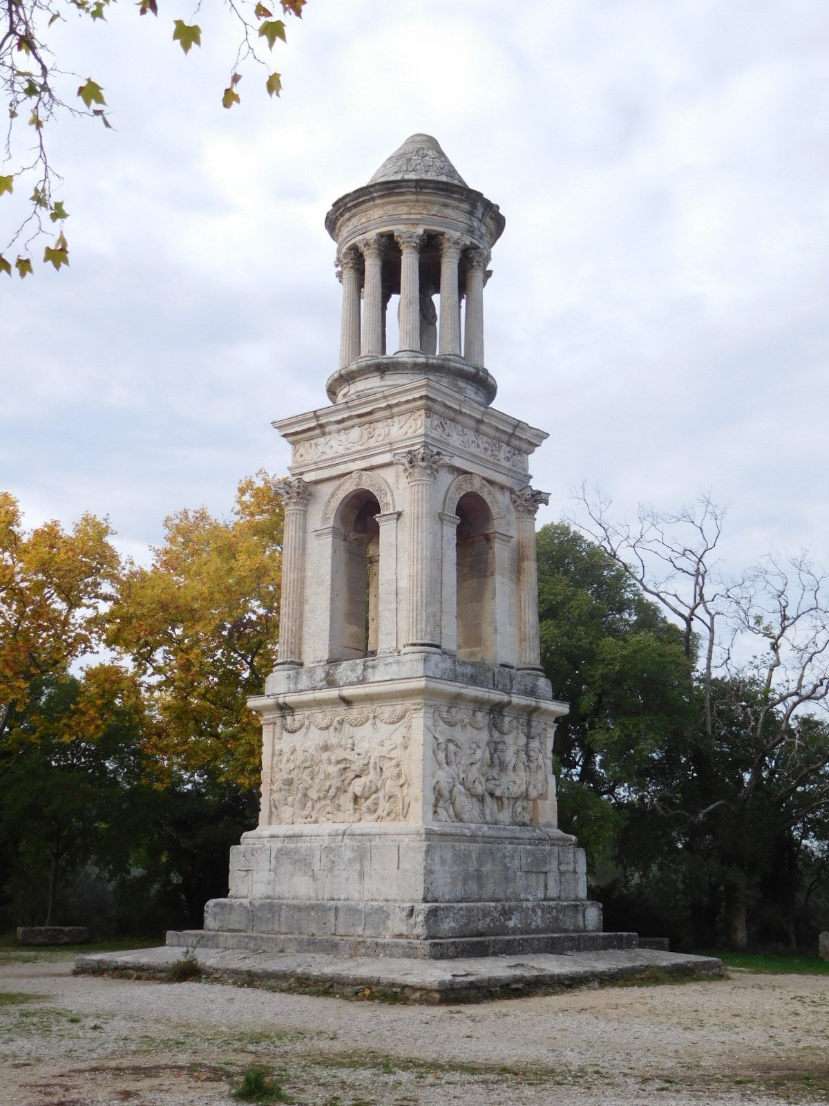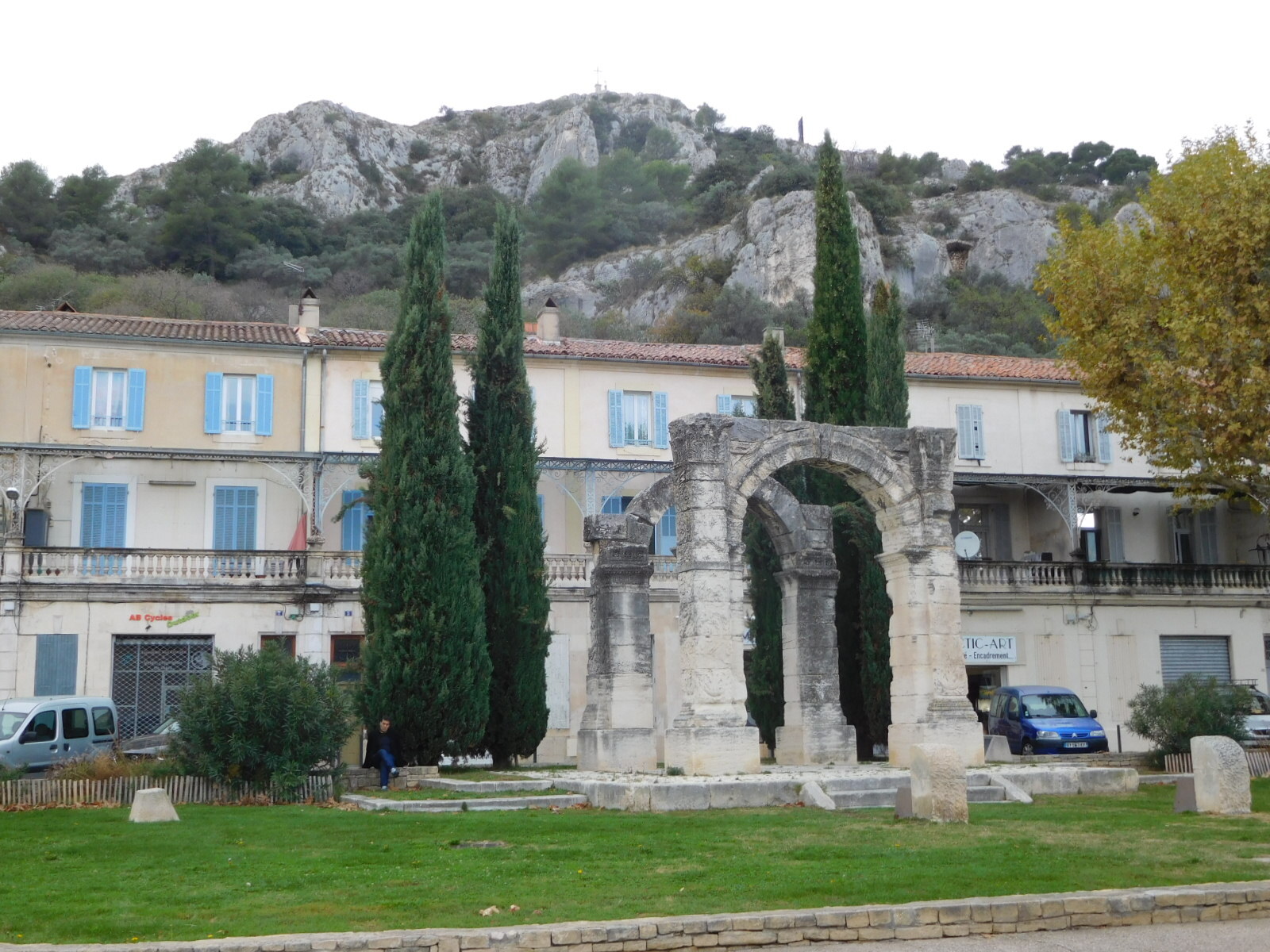 As we learned at St Etienne, we are on the Via Domitia, which was the main Roman route to Spain, around 120 BC. Here in Saint Remy there is a major archeological site with ruins from this time. Two of the major pieces are out by the road, with a large billboard explaining them. But the majority of the site is down a hill, with paid admission, and we have never explored it.