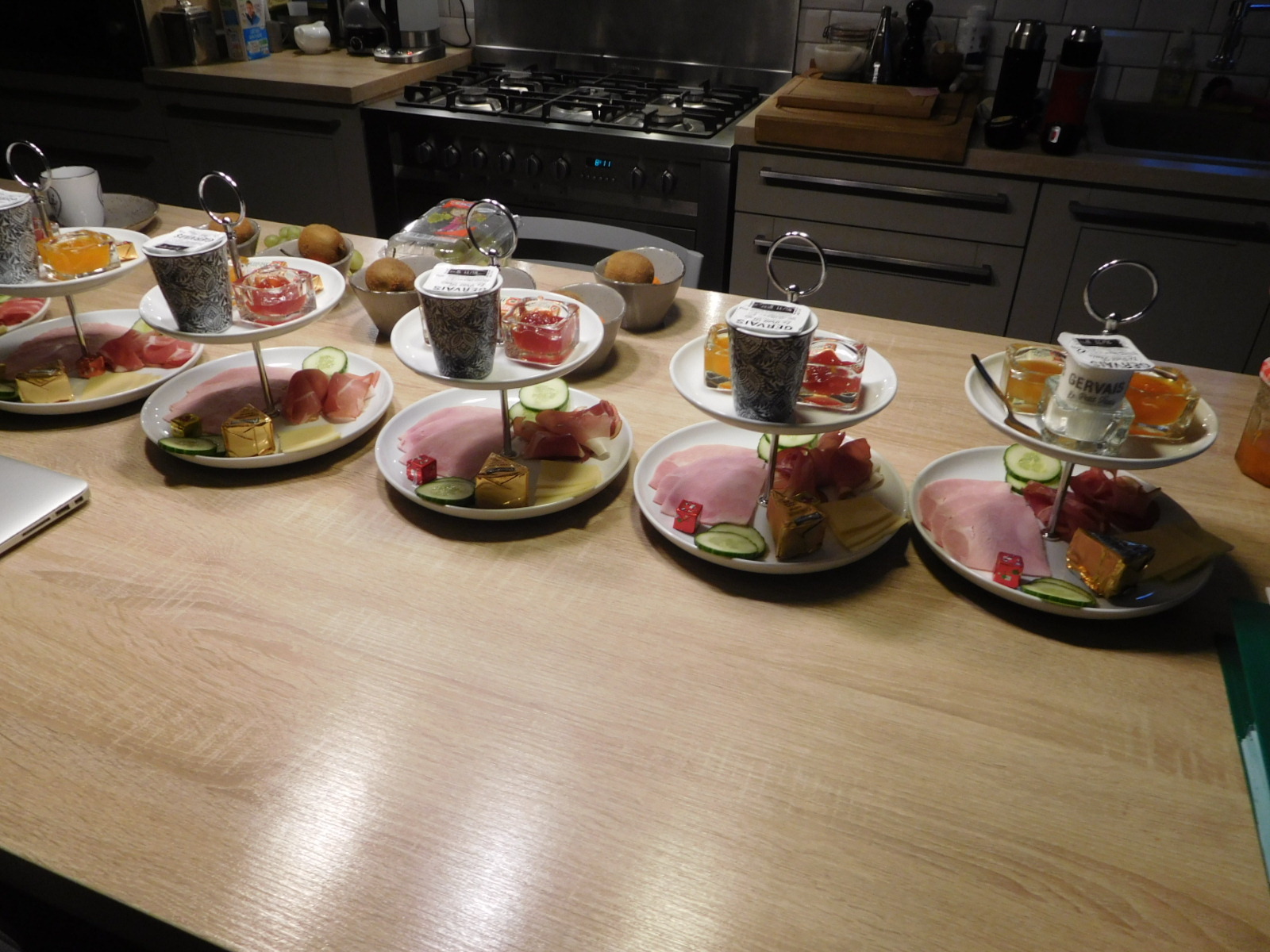 But when they asked if everything was 100%, I had to fib slightly. For example, the breakfast food looked great, but that was not one tower of food (see below) per person but rather one per couple. It was perverse, because for example there were three small slices of cheese per tower. Did the hosts intend the couple to draw lots for slice #3?