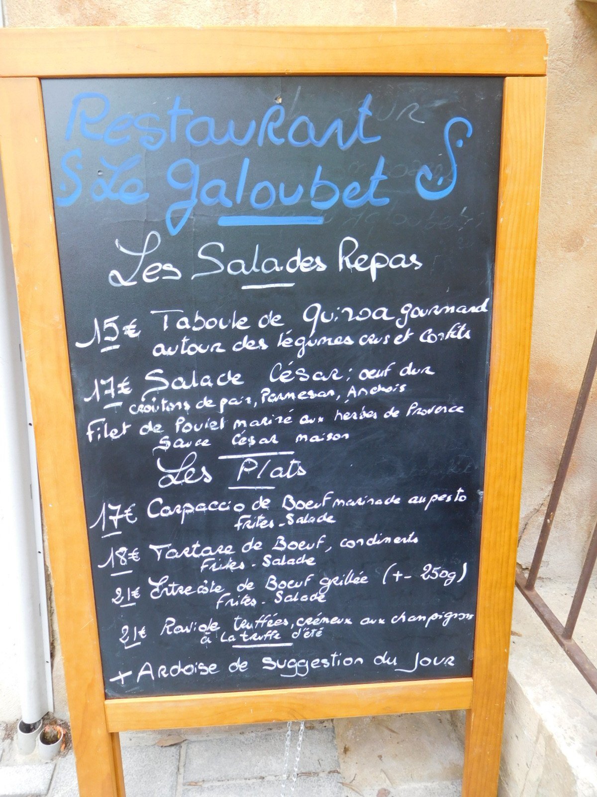 The road up to the small central square of Menerbes is a long switchback, that is not really a challenge to go up. At the top, it seems the only thing I recorded of the square is this restaurant menu board. I was not so much interested in this in what was on offer, but in the possibility that this might be Peter Mayle's restaurant, the one he wrote of so evocatively. Poor hapless Steve. He did not remember that on visiting here in 2018 he made quite an effort to track down that restaurant, learning among other things that the restaurant was not even in this town, but in Lacoste!