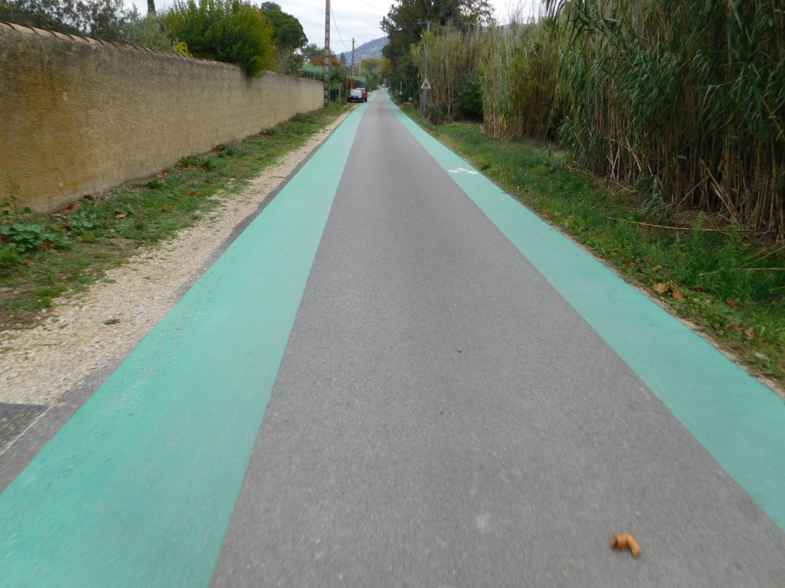 The final really nice thing about Cavaillon (for now) was the ease of getting out of it. A cycle route begins at the train station, and eventually links to an amazing network of routes, running throughout the region. Right now, we are concerned with the Tour du Luberon, which runs from Cavaillon out east along the foot of the Luberon massif, picking up the famous hanging villages like Menerbes, Lacoste, and Bonnieux, and the Veloroute du Calavon, which is the same as Eurovelo 8, and runs up the flat valley of the Luberon (of the Calavon river), to Apt and beyond. One can also easily jump between these tracks, for example, from Menerbes to Les Beaumettes.