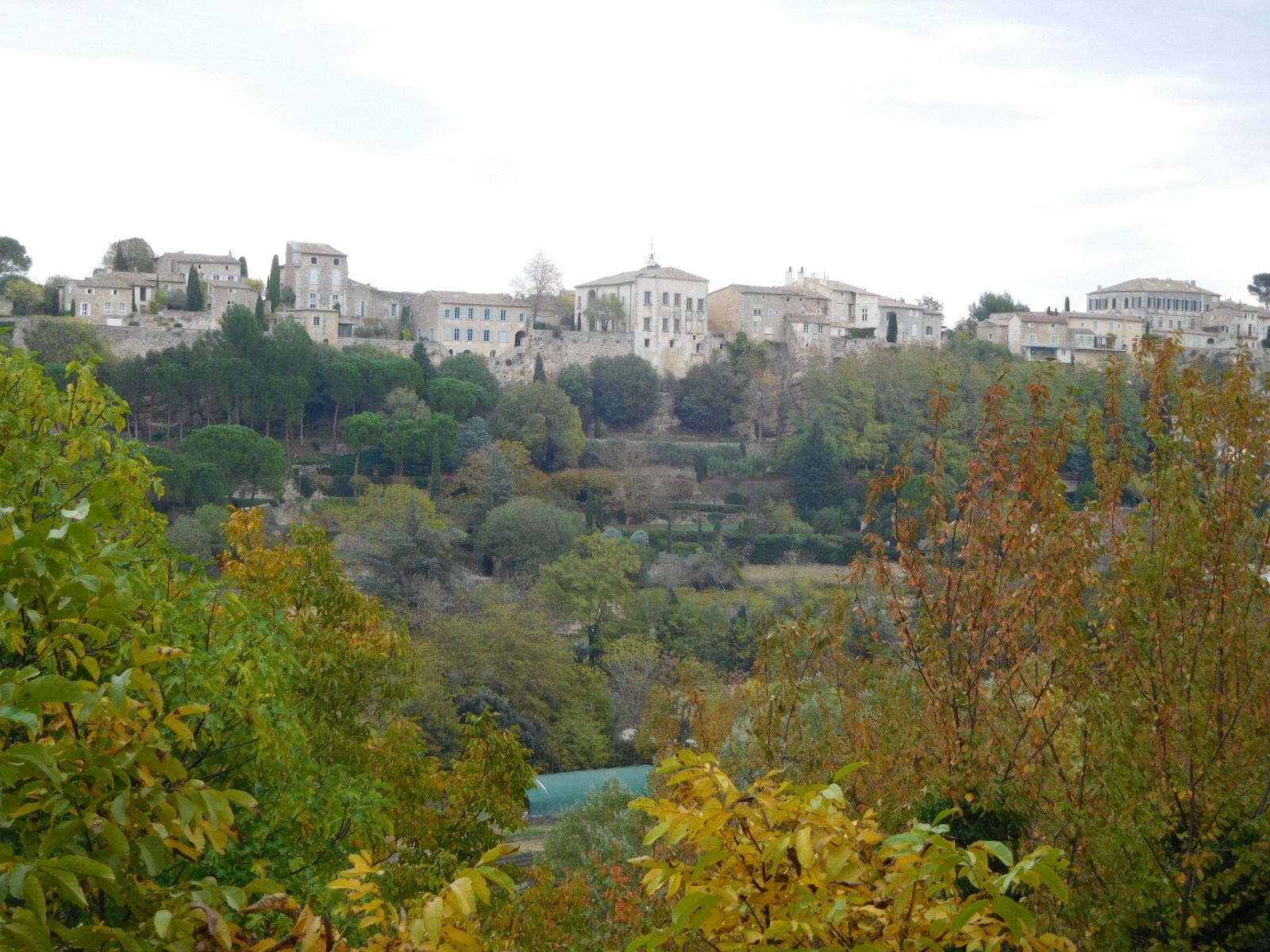 We arrived below Menerbes, and found it a dramatic sight, with the trees and terraces that mount its hill. Villas here , not even ones higher up, are tremendously attractive.