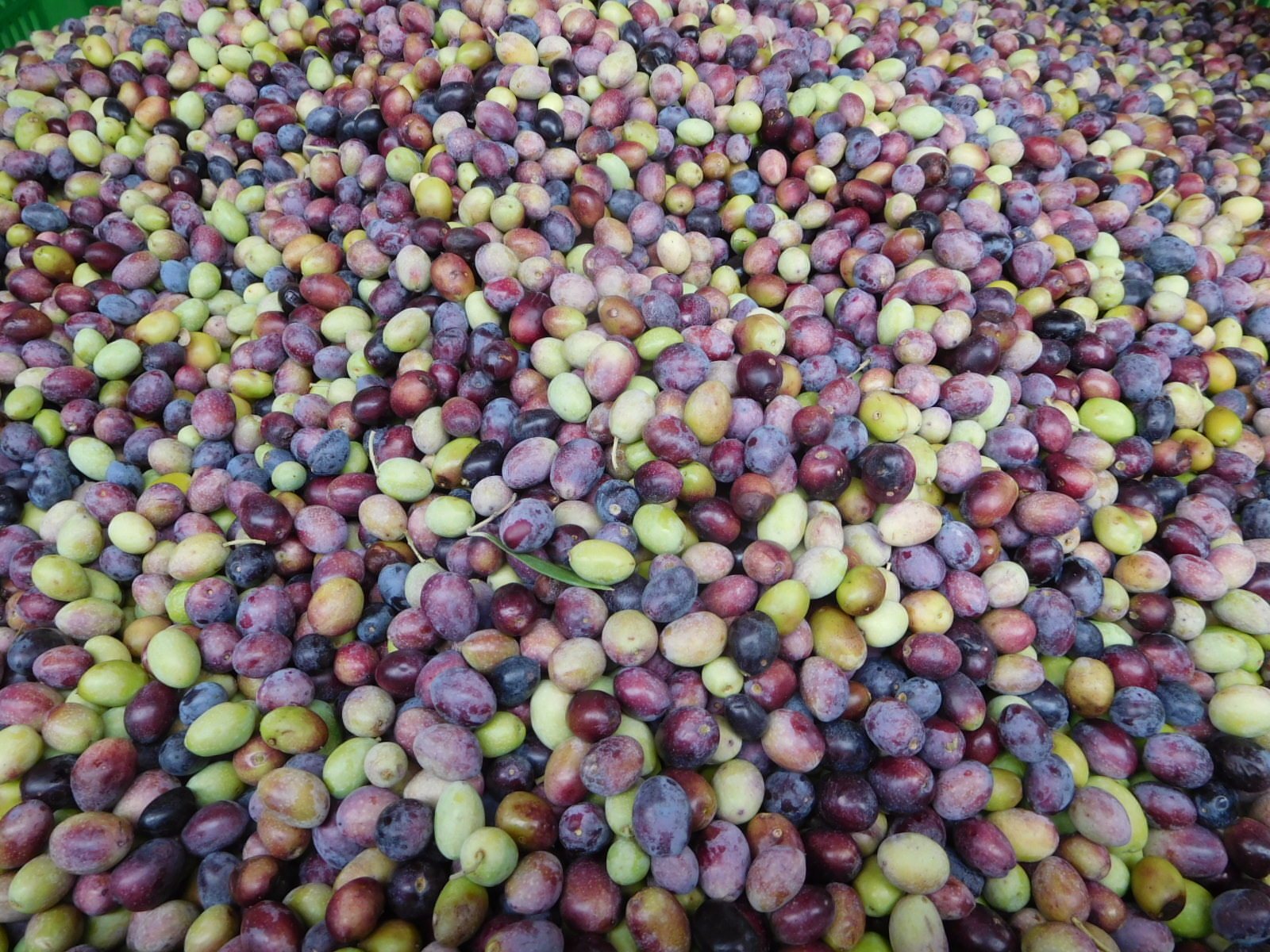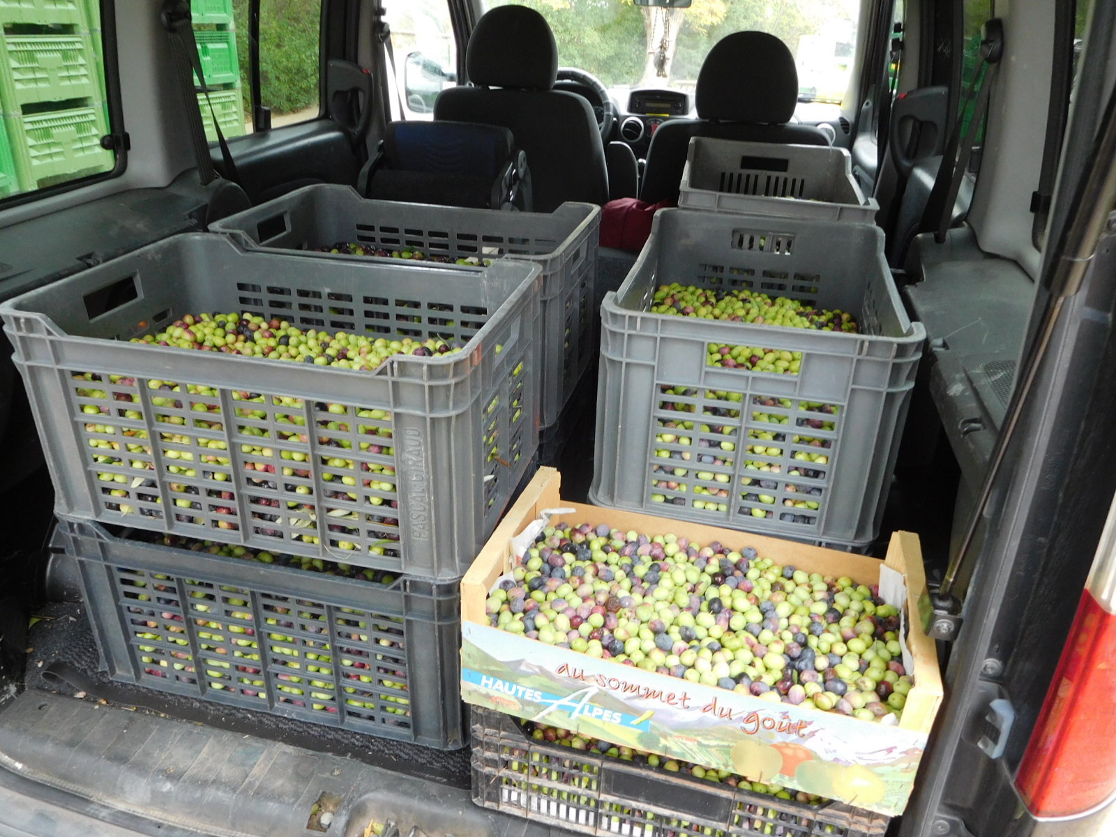 Two ladies were waiting for the press to open again after lunch, and had the back of their car filled with olives. They told us that they comb them out of the trees. It took them three days to collect these olives.