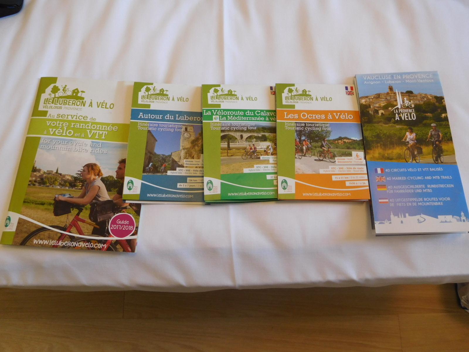 Back at our room, we are benefitting from a rare time f having stuck at the same place for more than one night. We have been refining our ideas on how to spend our remaining time in Provence. We are helped in this by the remarkable set of maps that have been put out by an outfit called Velo Loisir Provence. These maps complement the signage that is out on the actual routes.