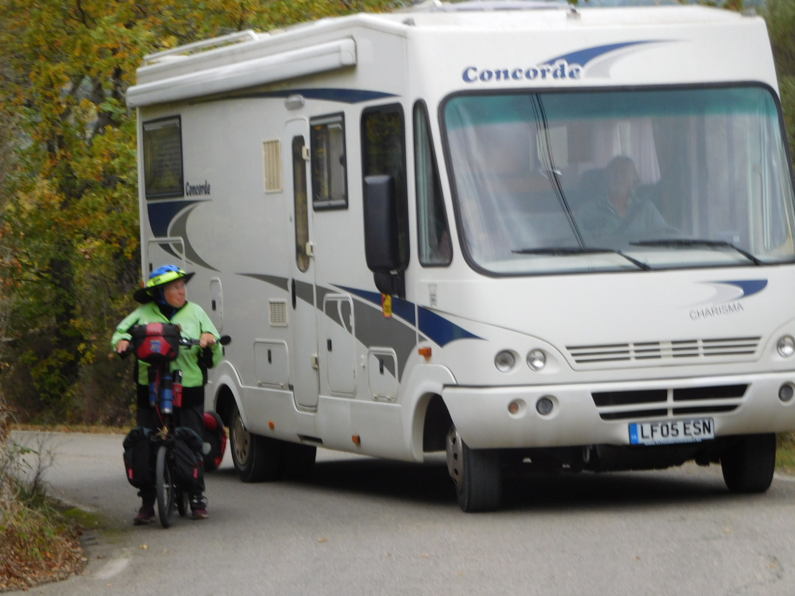 We carried on down the Calavon, spotting a couple pruning grapes in an immense field. Dodie called out, "Good Work" and they replied amicably. "How long will it take you to do the field?" "One month". We wished them good luck!