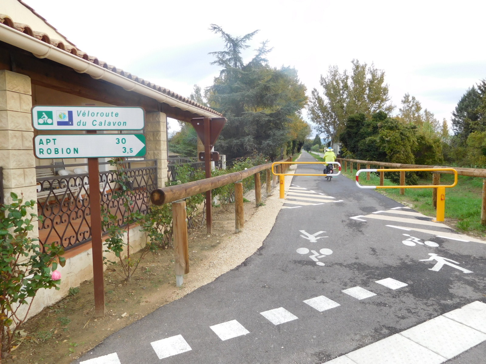 Today we picked up "Autour de l'Isle sur la Sorgue", which describes four routes around the town, ranging from 21 to 35 km. And to get there from Cavaillon? Of course, there is the Via Venaissia (Robion to l'Isle to Pernes les Fontaines), which we can tap in to from the Calavon a Velo. How cool is all this!