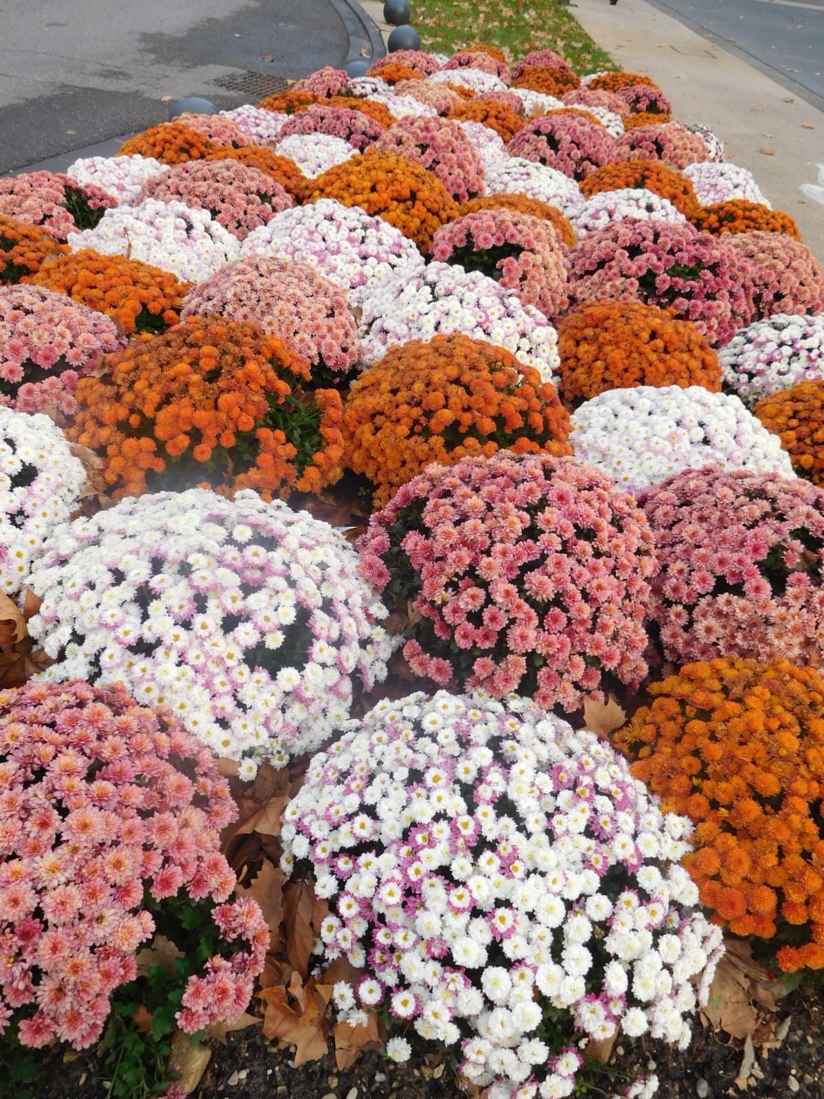 The one plus from our stop at the station was that I realized that my photo of a raised bed of chrysanthemums there yesterday was only part of the story. The town actually has these all over the place.