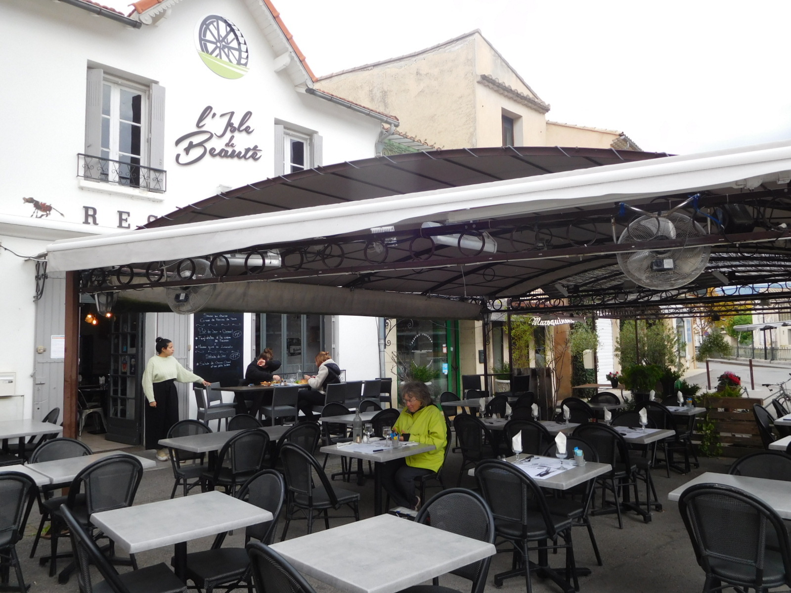 We rolled then into l'Isle, which we had saved for last in our circuit around area. We wanted to arrive at lunch time, because we understood that the main thing to do in l'Isle was to eat out at a restaurant fronting on the river. Because we arrived from the northwest, it took a certain amount of noodling to arrive at restaurant central, in the southeast of the town.