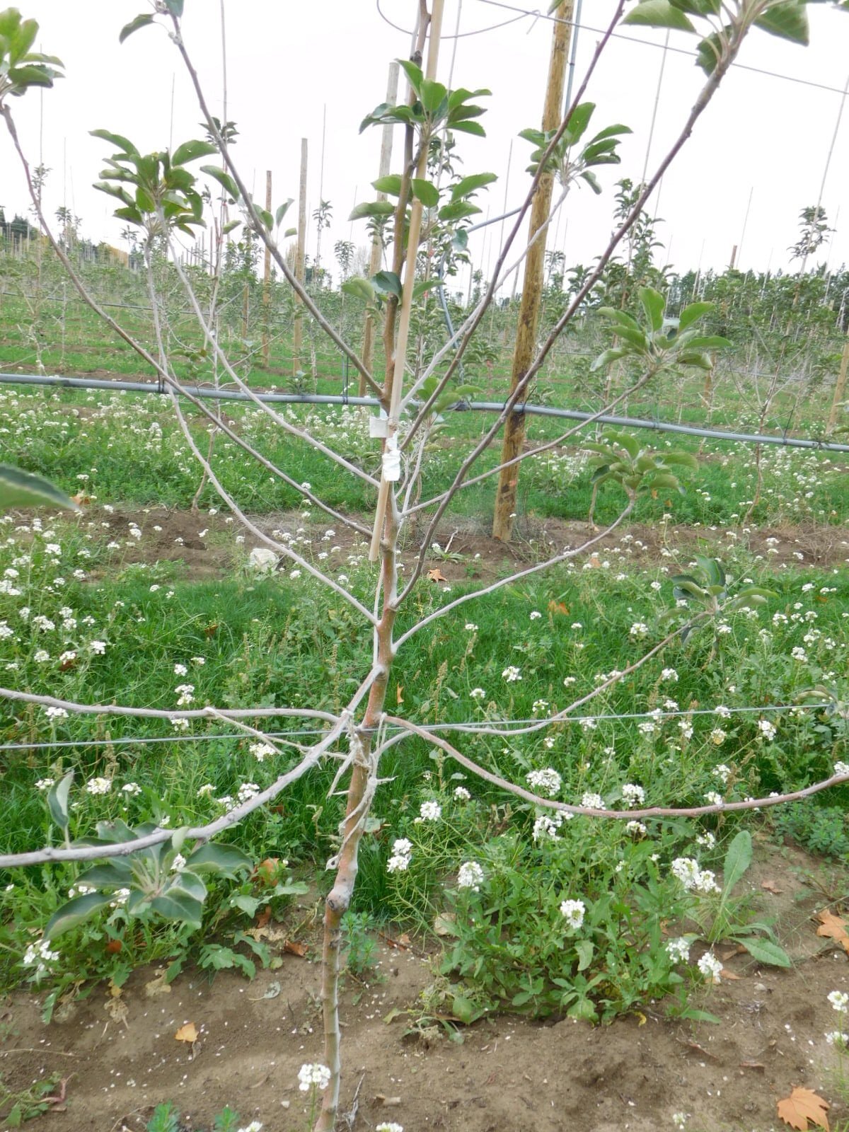 The trees are apple, and in this planting are two years old.