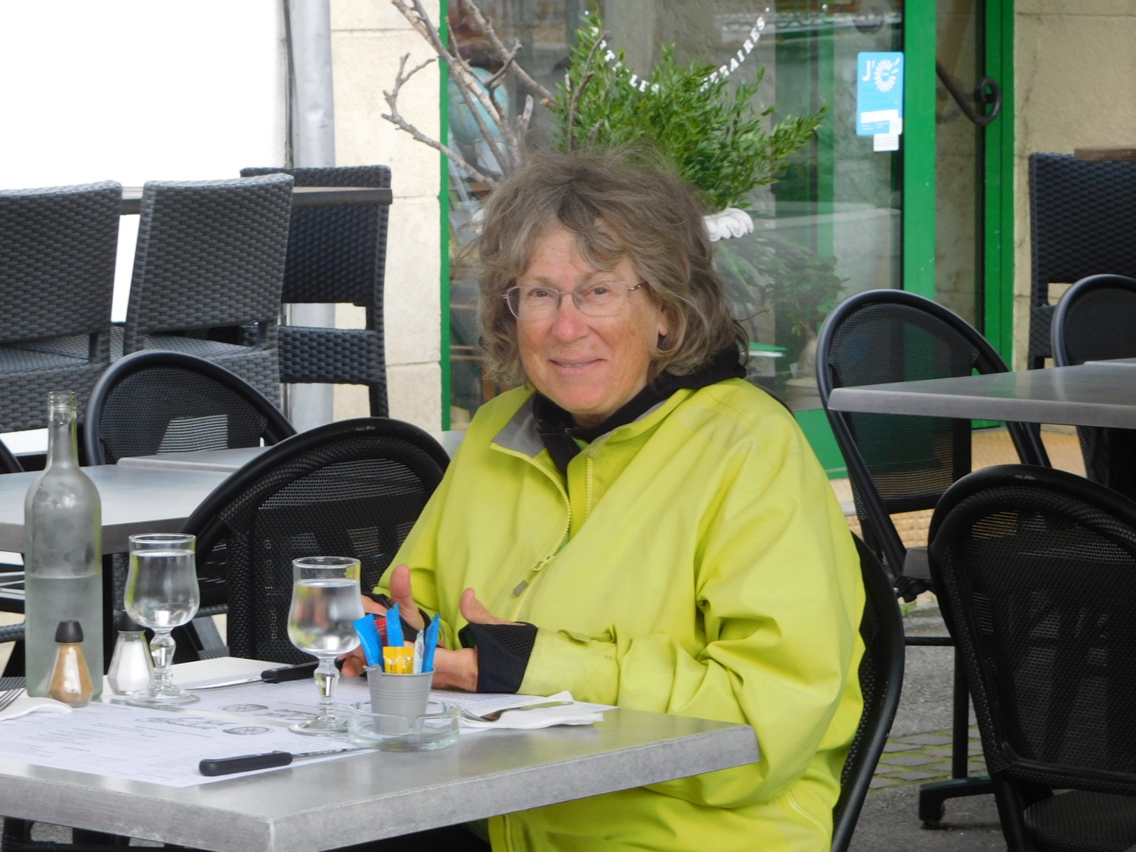 Back at our hotel, we had a chat with the young man who is part of the couple managing the place. We learned that the lady's parents had bought it, but did not want to run it at some point. Our couple declined to take over, preferring to pursue some other careers. But they agreed to manage during a one year transition period. So they too were having a "Year in Provence". The man pointed out that Peter Mayle's version was sugar coated, and that in a few months here one would become aware of lots of underlying problems, like racism and unemployment. Fortunately, we are only here for a short time, and we will mostly stick with the fantasy, thank you!