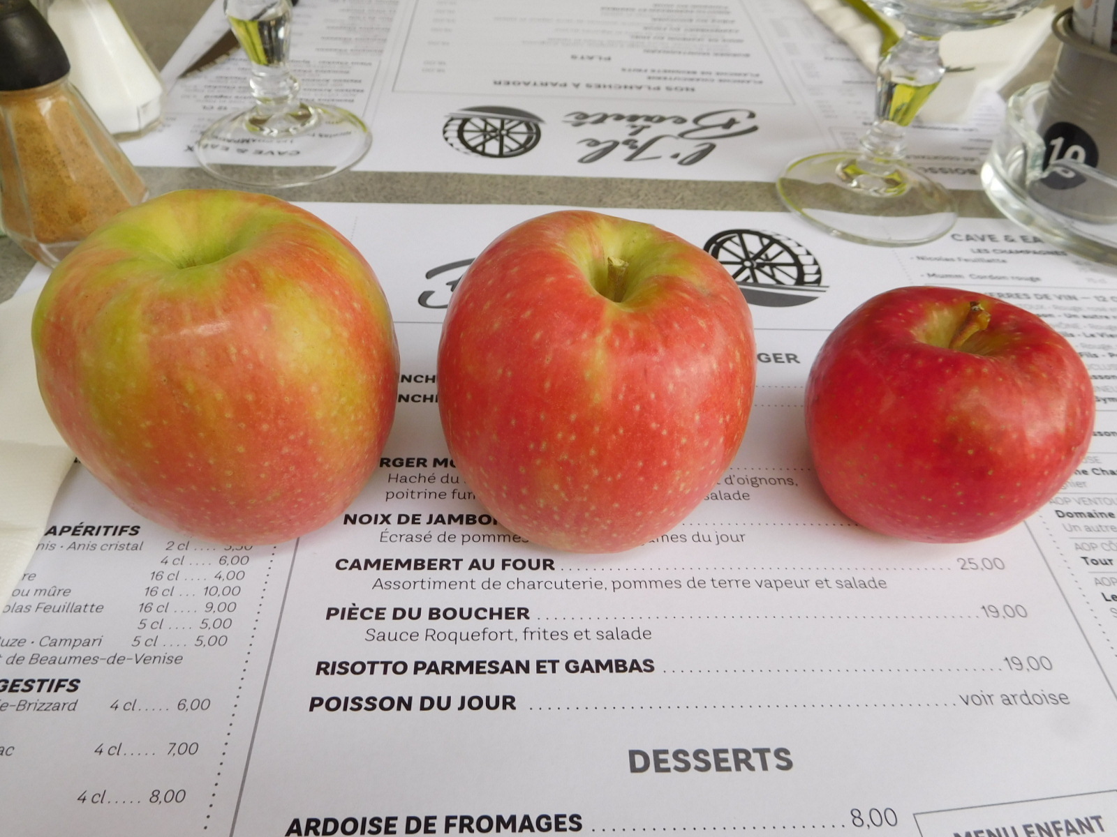 After a bit we came to another orchard, not yet picked. But we now surmised they must be Pink Lady. I jumped off my bike to check this. The apples were bigger, but essentially the same shade. We had become Pink Lady collectors.