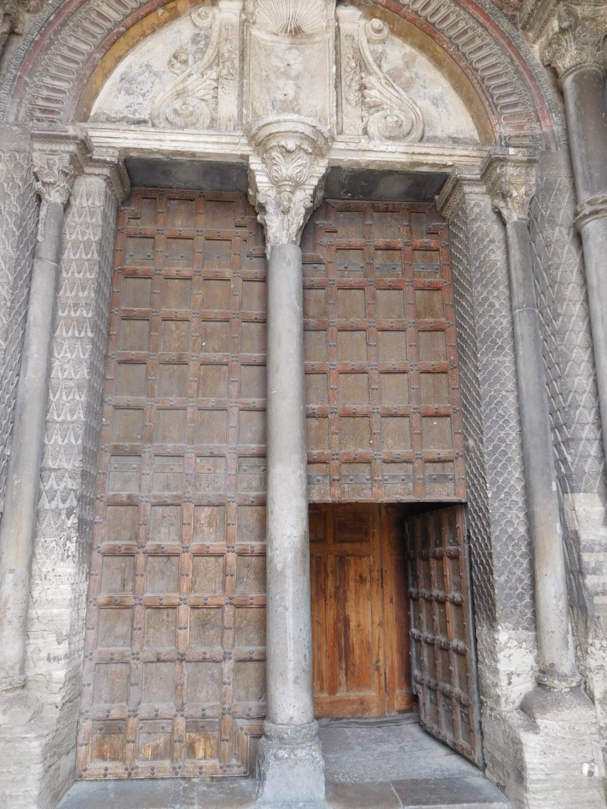 There was a sign-in funeral book in front of the church, for a 96 year old lady that had passed away. The funeral was over, so I was able to take a peek inside. It looked medieval, all right.