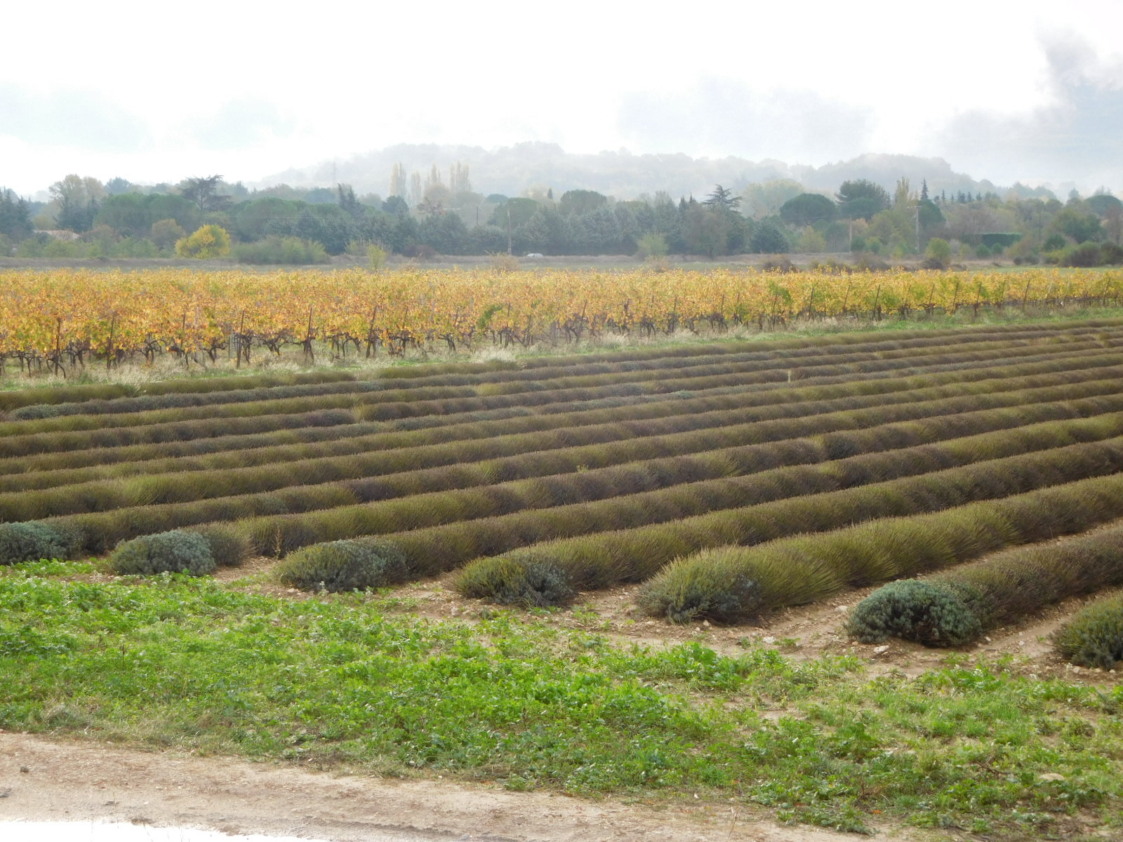 Ok, so what is new about a beautiful vineyard, with the vines turned yellow for the season? It's the nicely trimmed green grass between the rows, very pretty, and so different from the rocks of Chateauneuf du Pape.