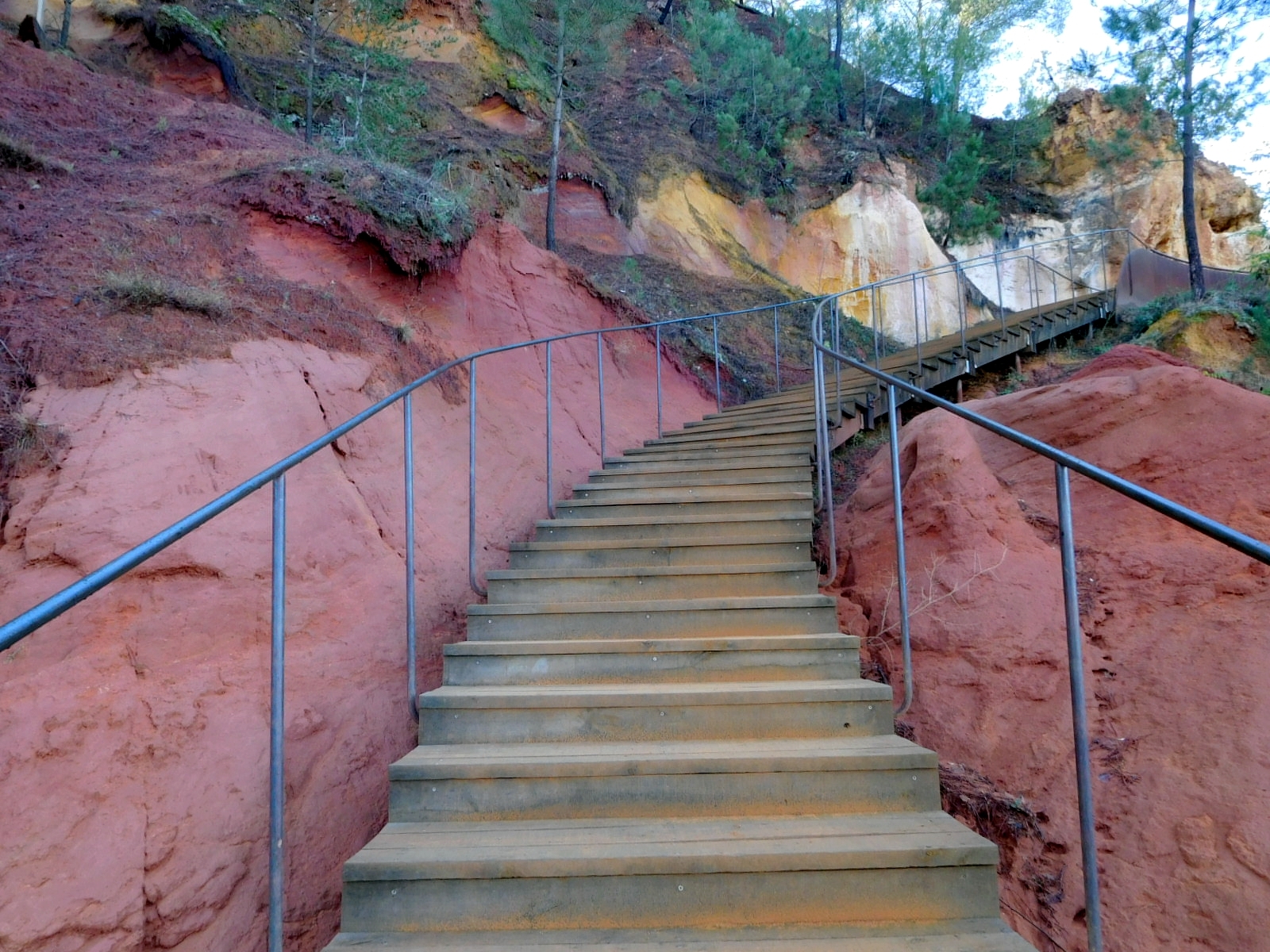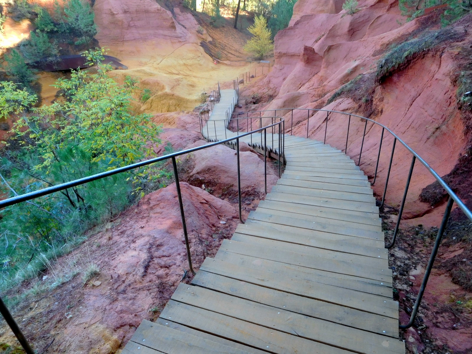The ochre can be seen from just by the town, but the most stunning views come along the so called Ochre trail, which is a short walk either on a pleasant boardwalk or on the multicoloured sands themselves.