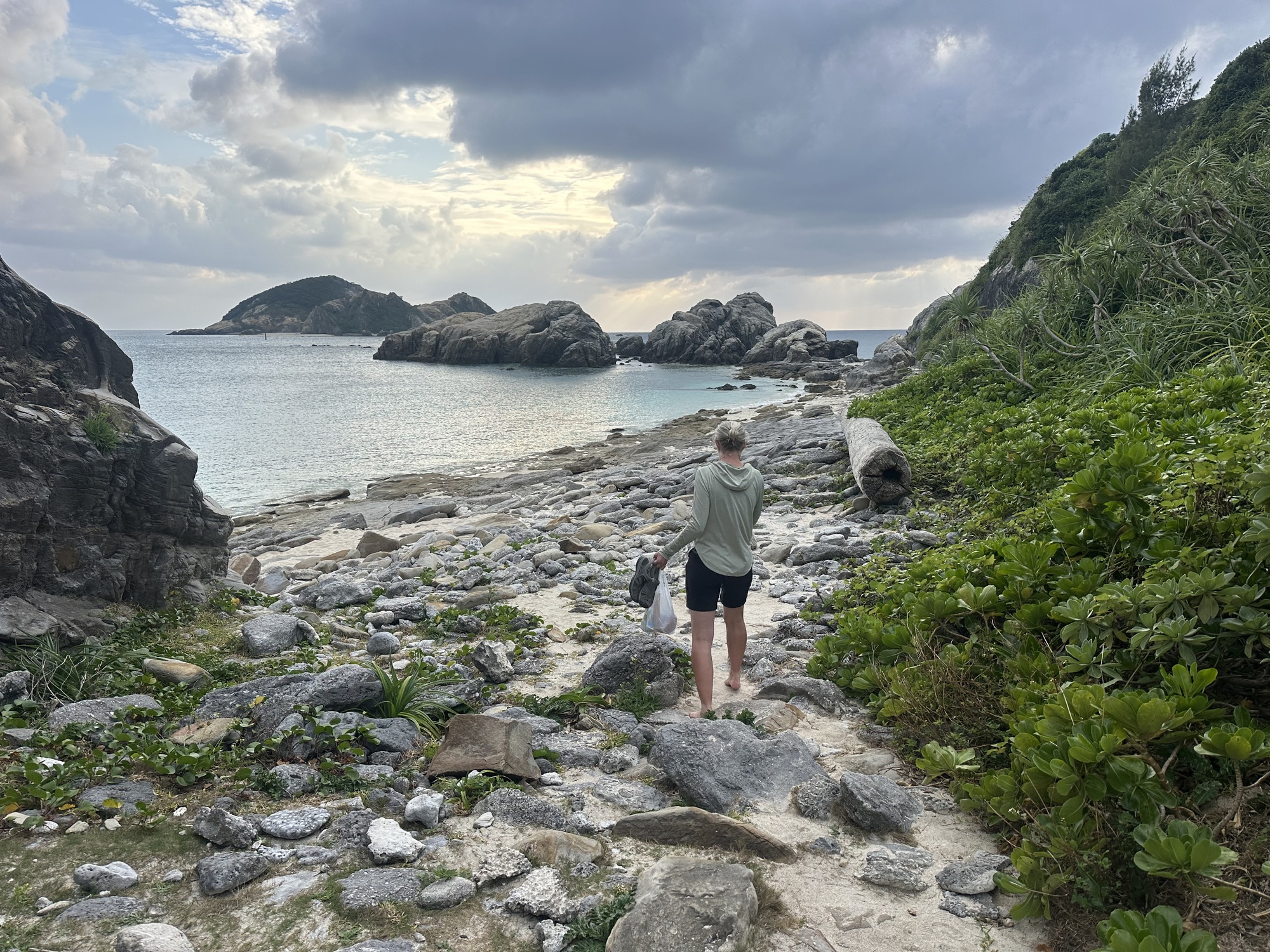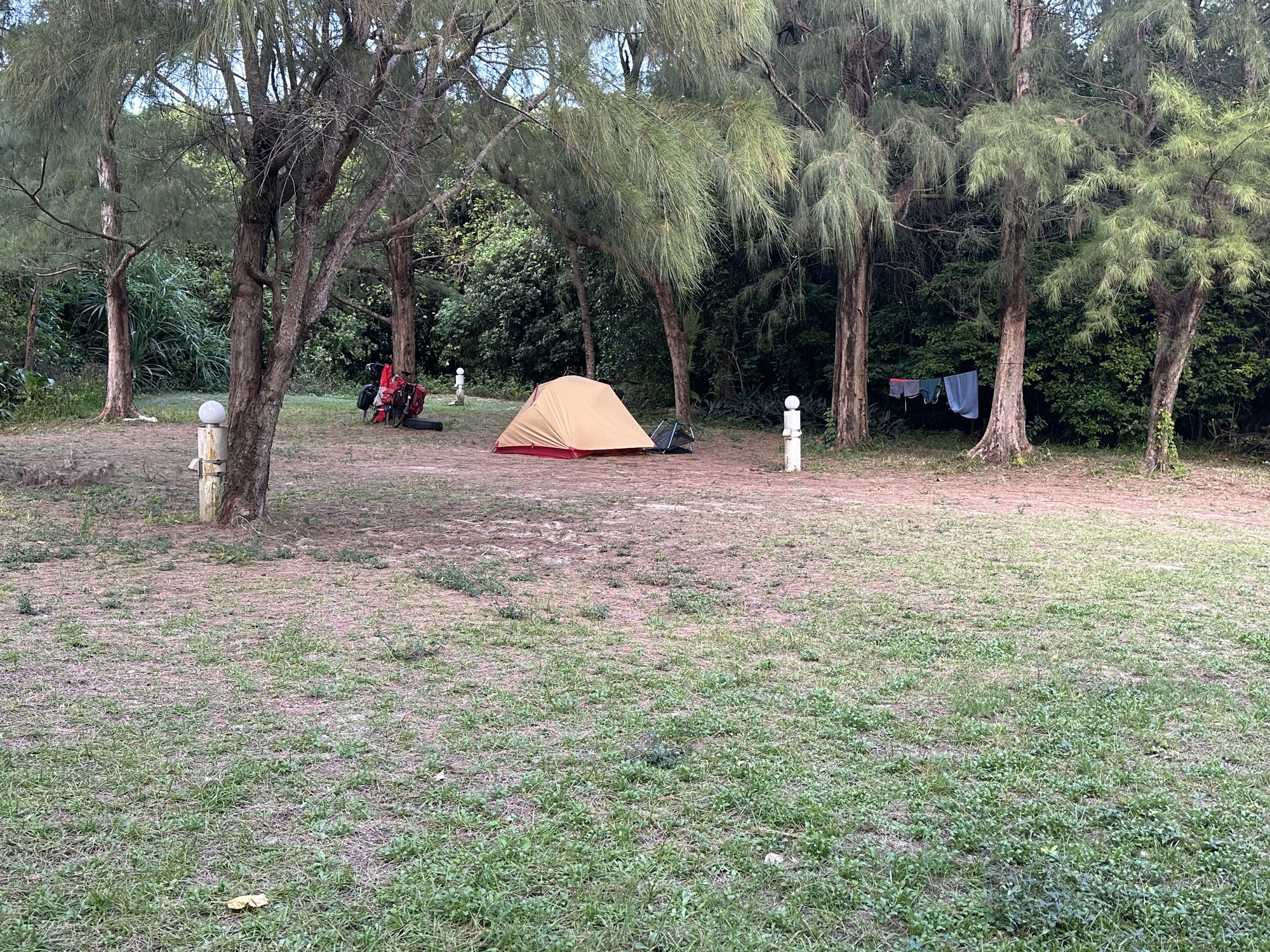 Tokashiki island is part of a group of islands that form Keramashoto National Park. There is little industry or development on the island. Tourism seems limited to whatever comes over on the daily ferry. There are a few guesthouses and one campground at Aheren Beach, 6 km down island from the port, which is where we were headed.