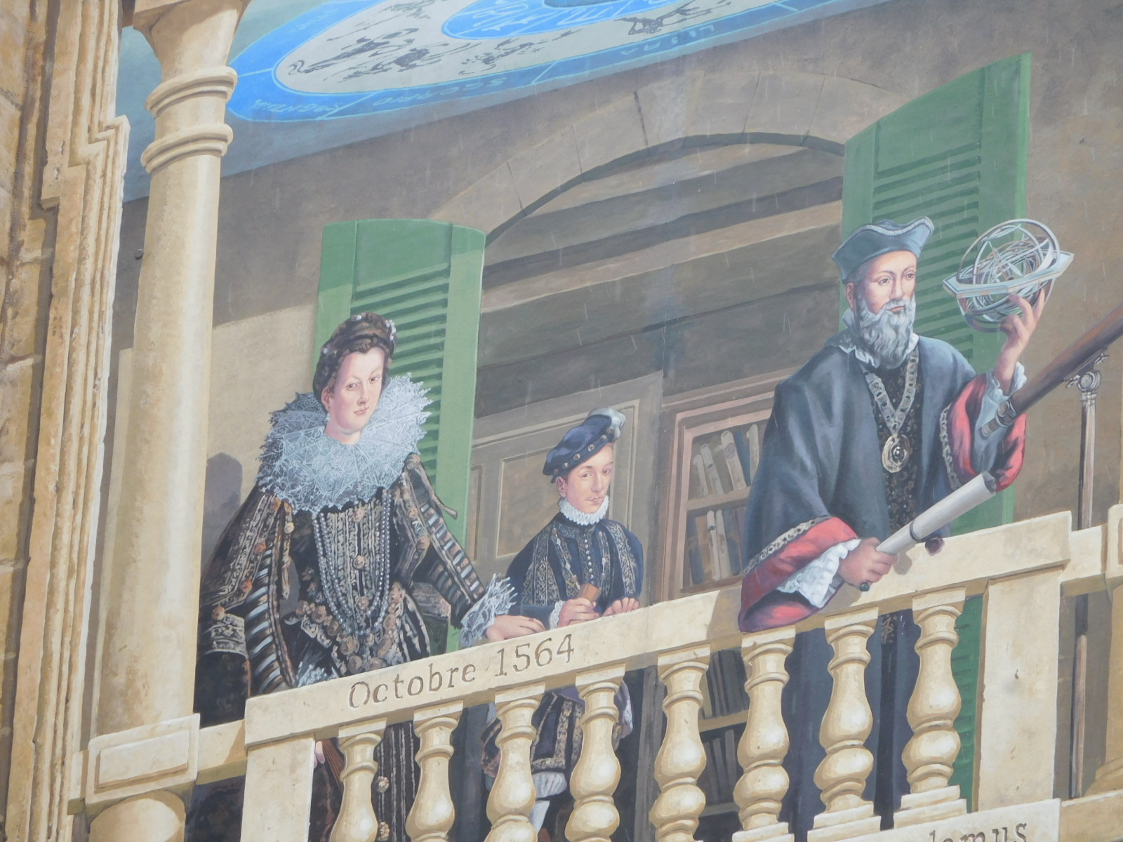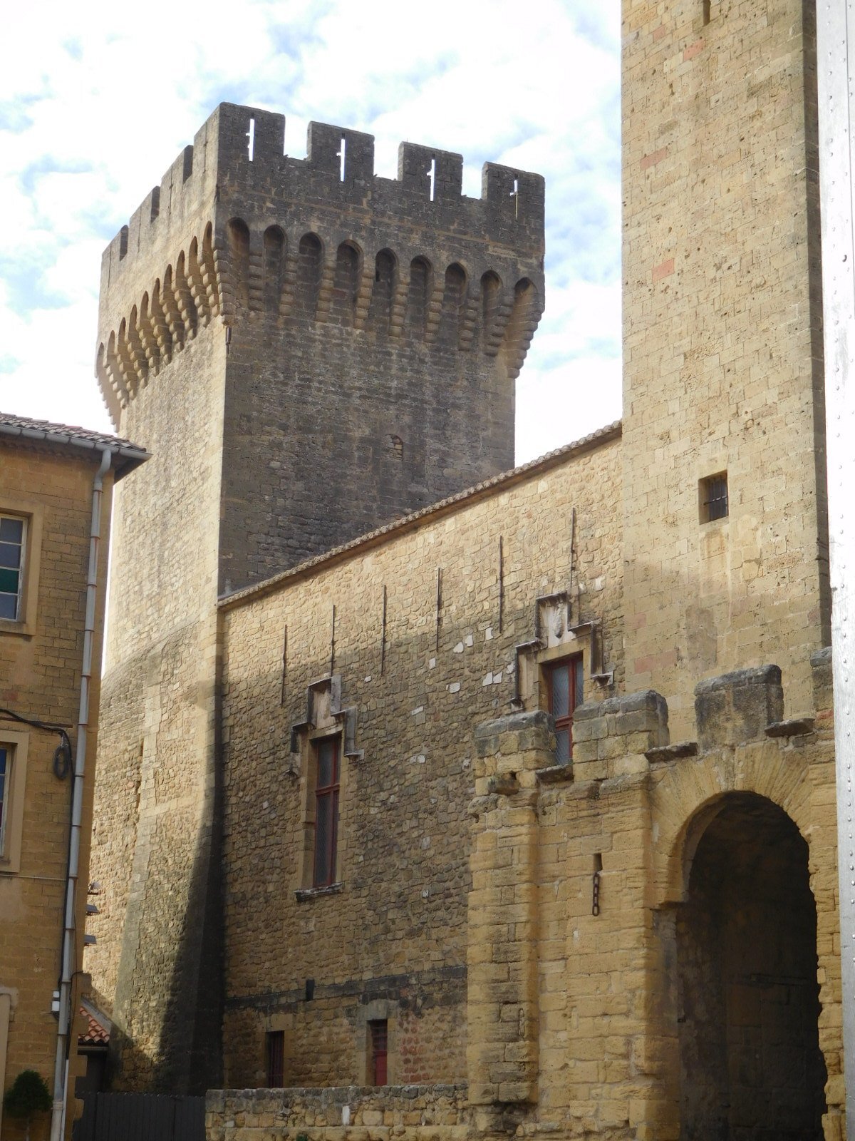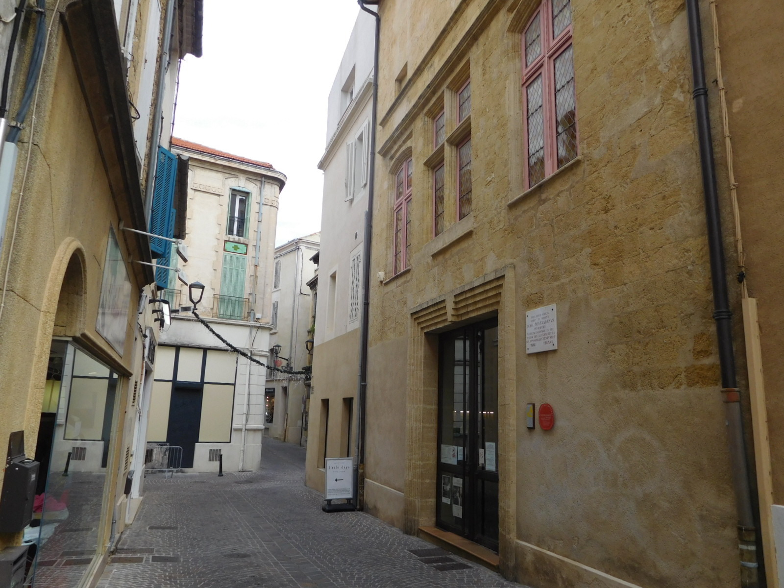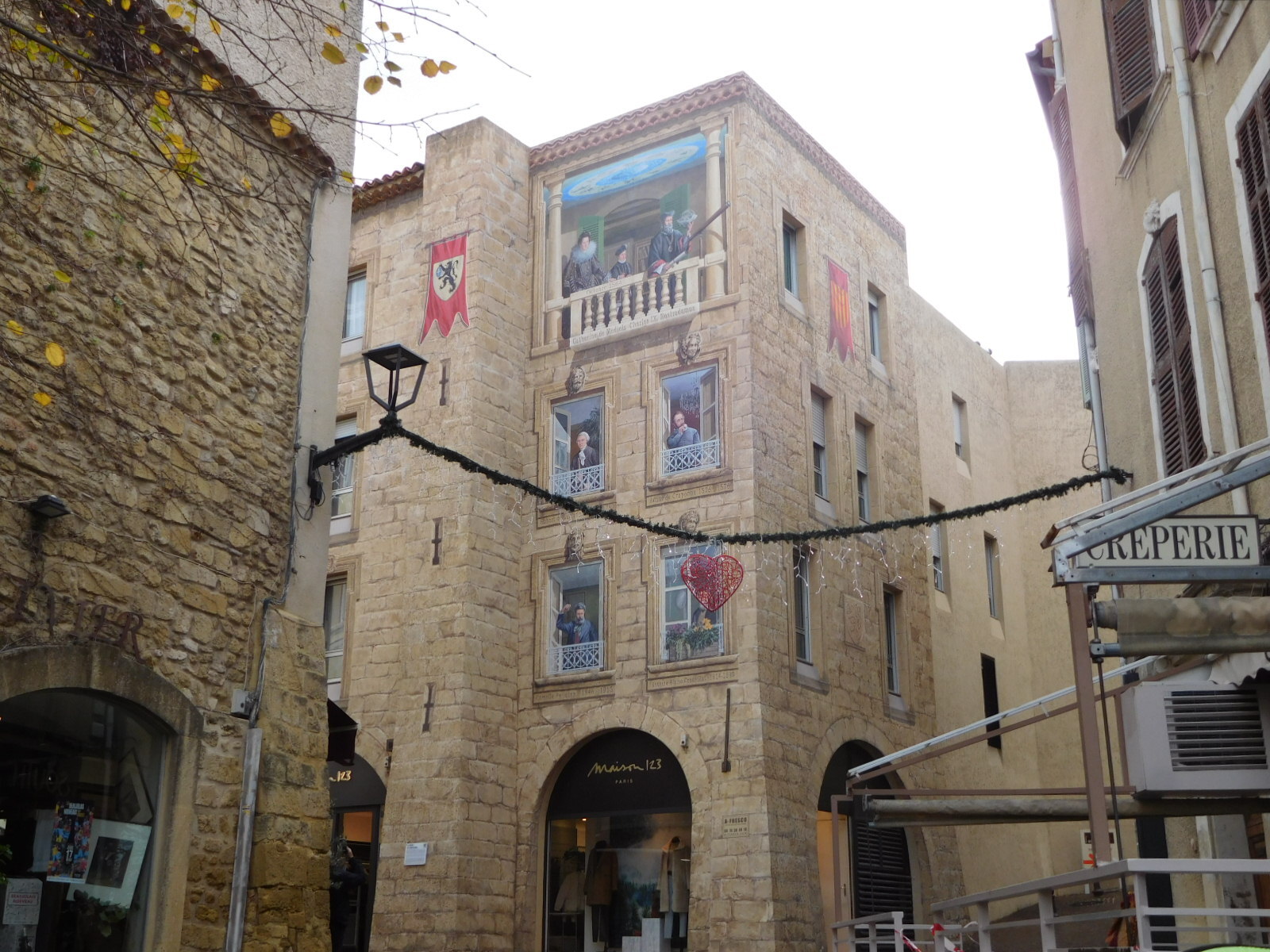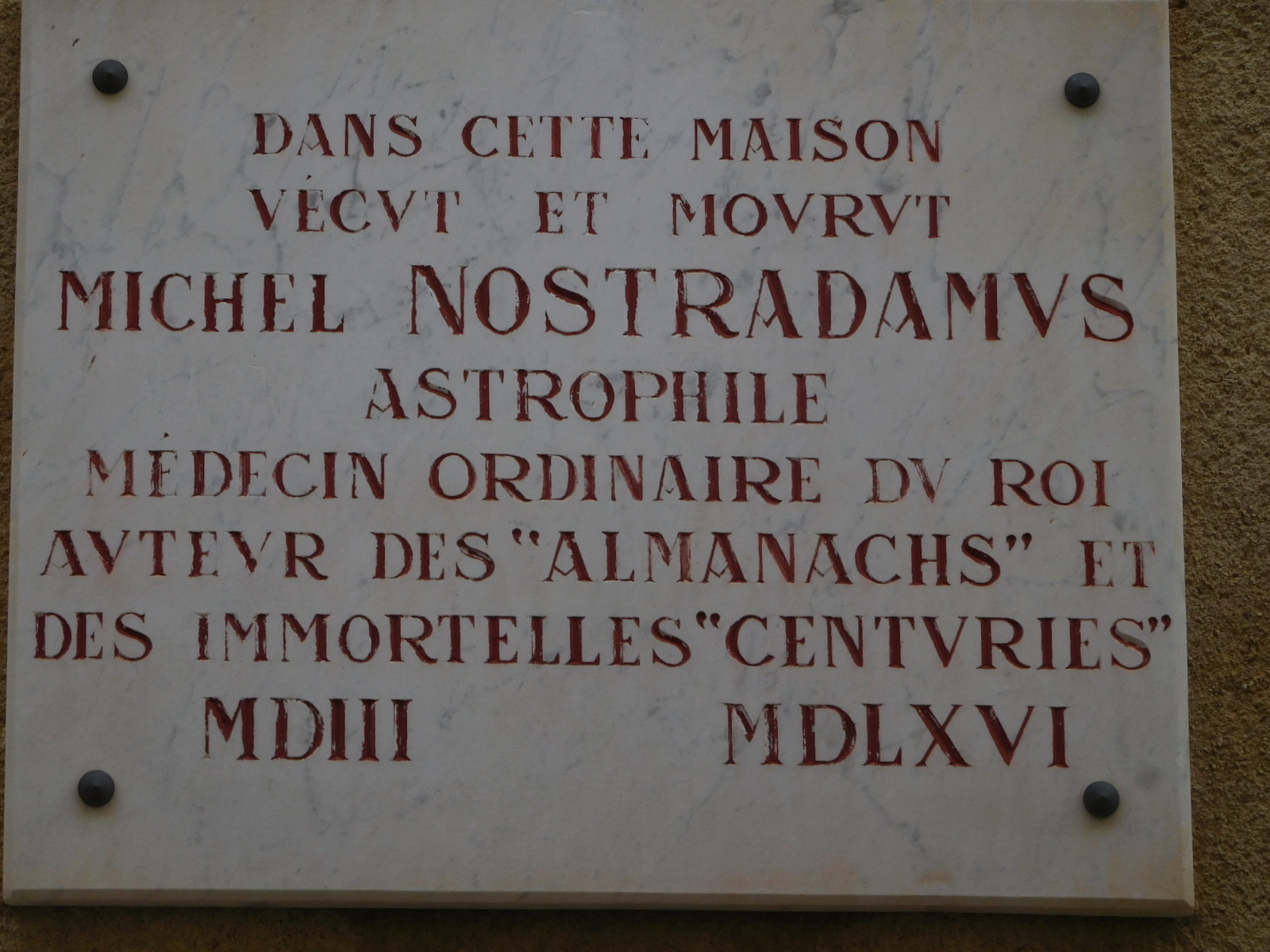 We were able to ditch our stuff in the room and head out for a look at the town. Nostradamus lived and died here, so he has a prominent place in store names, and also in having his house and his tomb here. Fountains are also big here, so we saw a few, and there is a Chateau on the hill at the centre of town, now serving as a French military museum. These things would form some of the main points in a tourist brochure, but what we mainly noticed was that this is a Provencal town somewhat like Saint Remy. That is, the buildings are attractive, almost all with shutters, and the shops are one step up in quality, often offering quality local products. There we also an unusual number of "glaciers" - ice cream shops - though most we closed. One we did try was very high quality. I got marrons, and Dodie salted caramel!