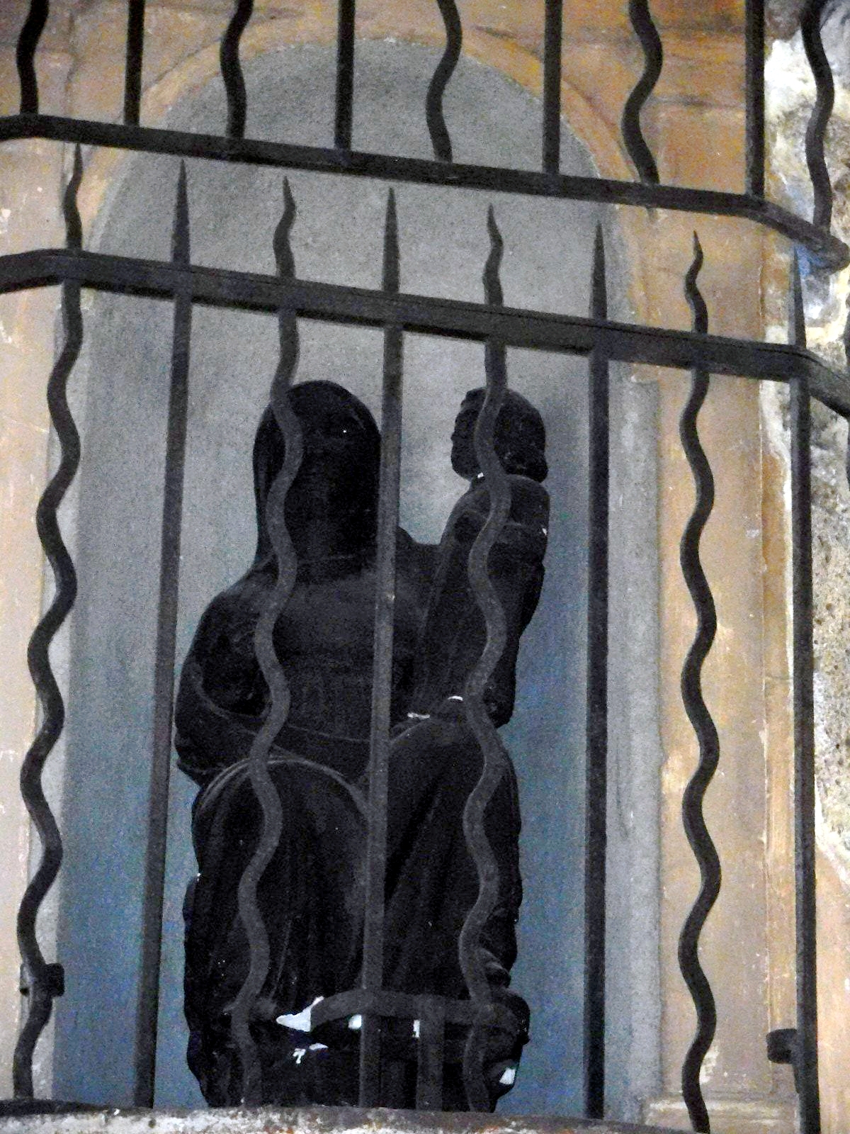Inside the Bourg Neuf tower was a niche that contained a much venerated Black Virgin. "Black Madonnas come in different forms, and the speculations behind the reason for the dark hue of each individual icon or statue vary greatly and are not without controversy. Though some Madonnas were originally black or brown when they were made, others have simply turned darker due to factors like aging or candle smoke. Jungian scholar Ean Begg has conducted a study into the potential pagan origins of the cult of the black Madonna and child. Another speculated cause for the dark-skinned depiction is due to pre-Christian deities being re-envisioned as the Madonna and child. "