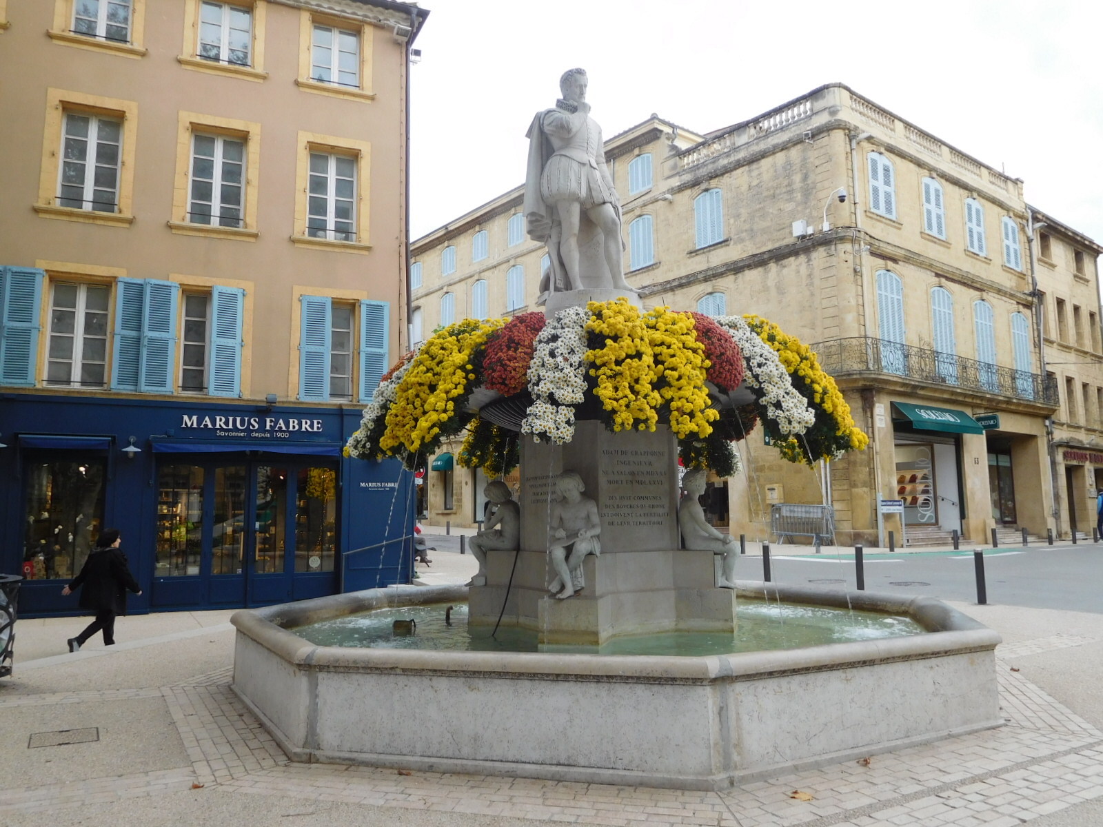 Here is one more fountain, from 1854, replacing one from 1760. It represents the engineer who designed the irrigation system for many of the towns in this area. His name was Adam Crapponne, a name that still applies to his canal. Crappone lived from 1526-76.