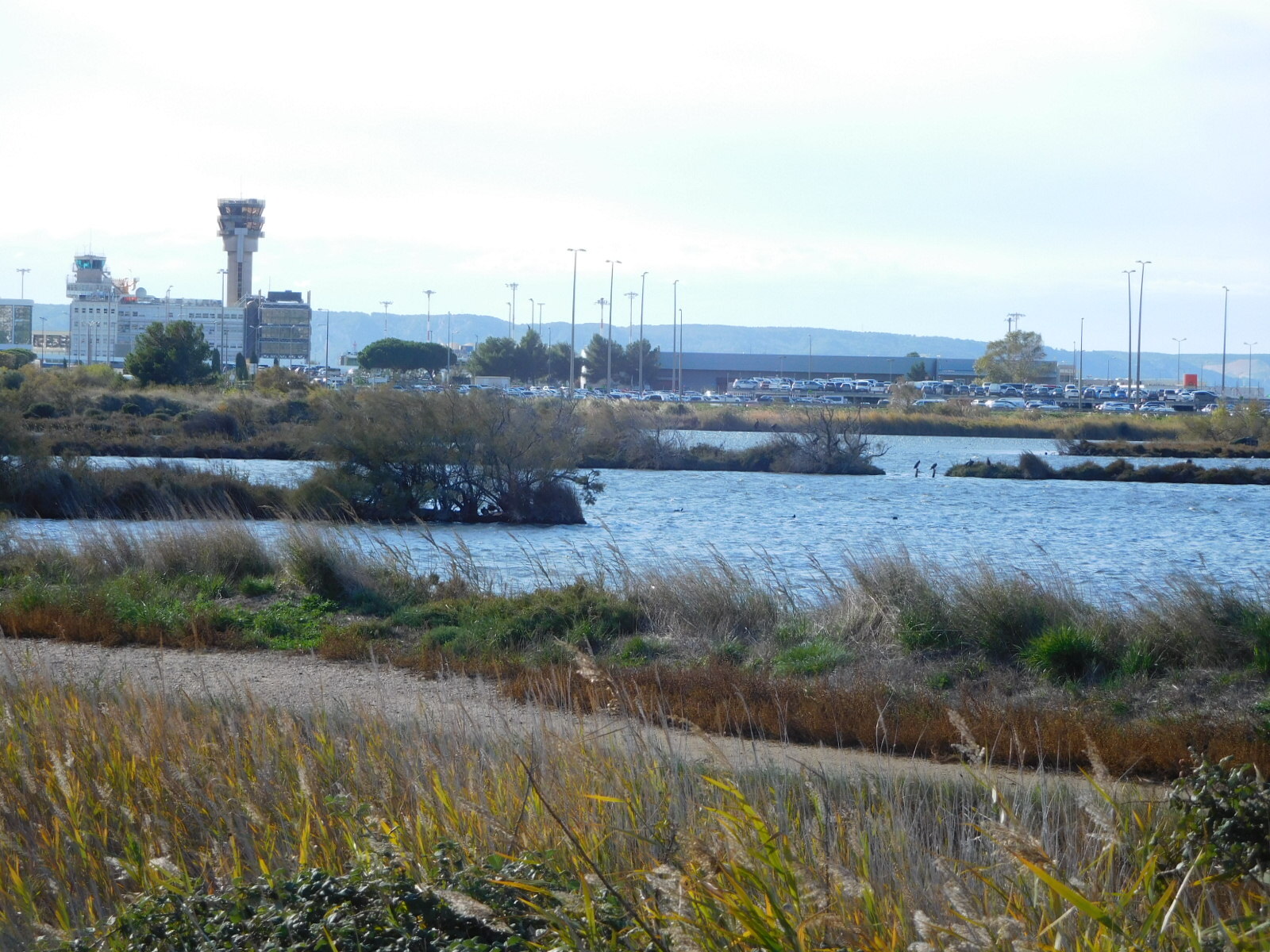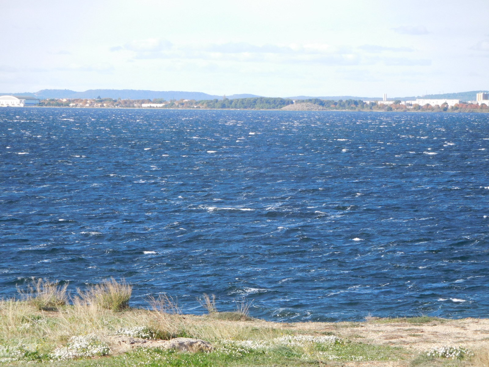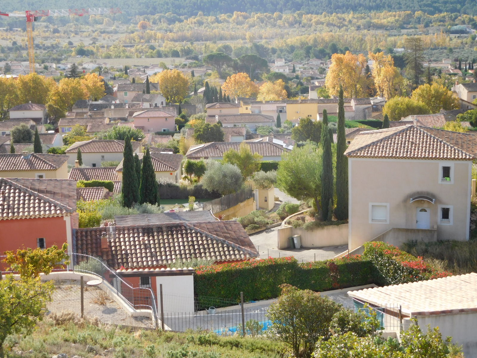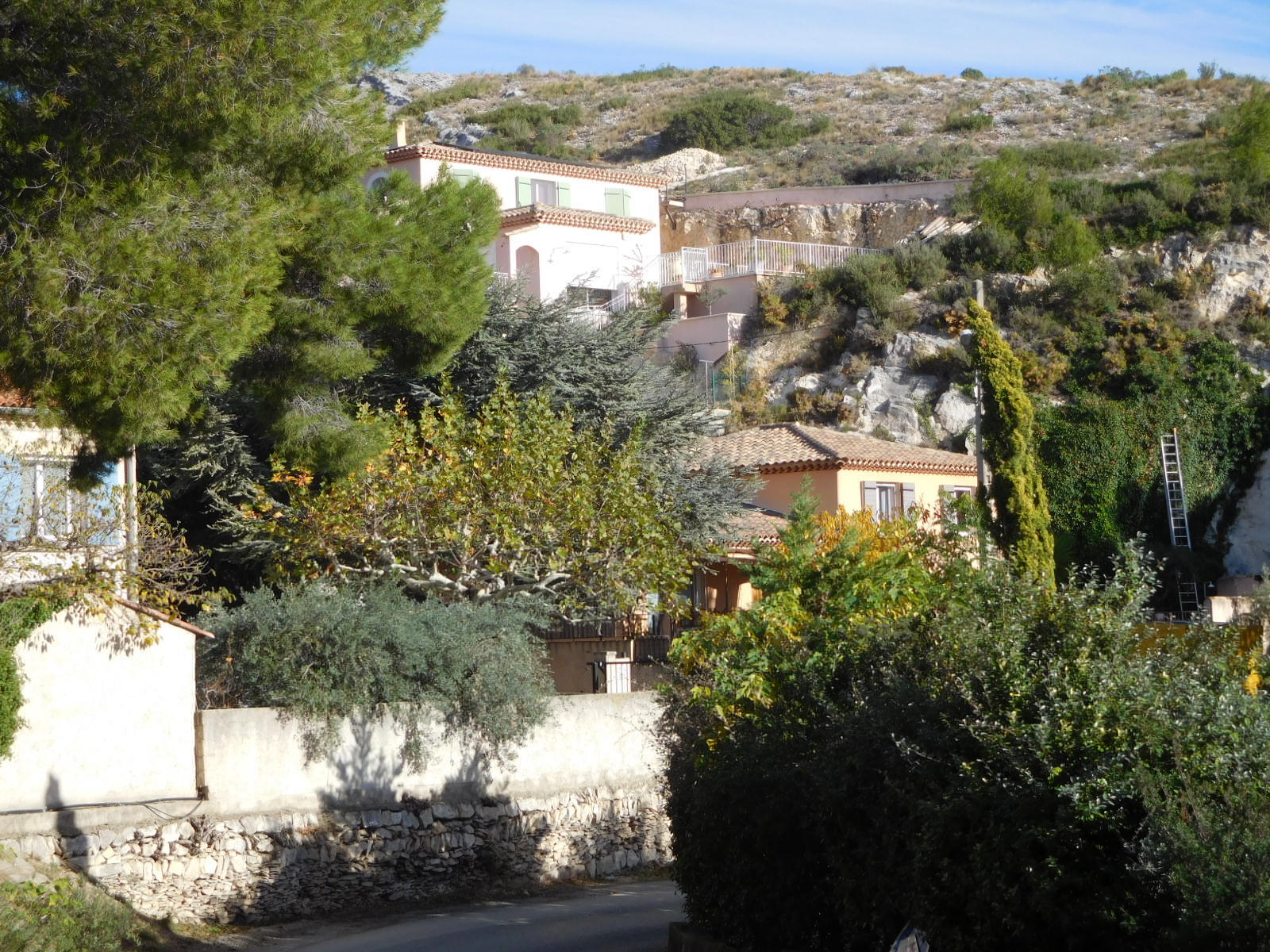 We knew the road had been climbing, of course, but were still surprised to come to an overlook where we could look down on a village and actually over to the sea. (Ok, fine, our geography stickler department points put this was nothing but the Berre Etang, 10 km from the actual sea.).